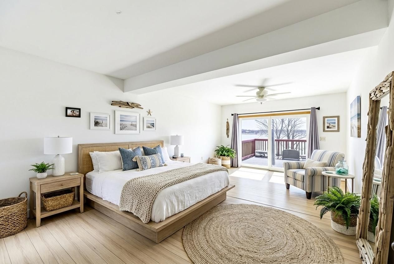 • Bright open-concept kitchen perfect for family gatherings and river views.