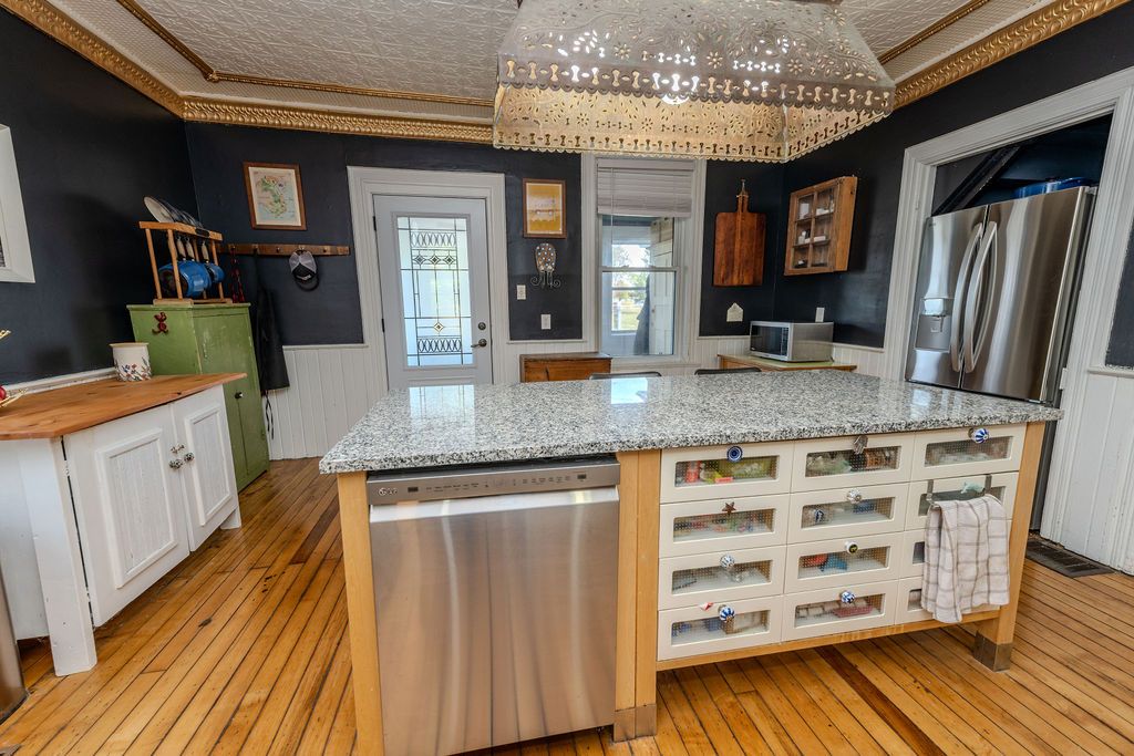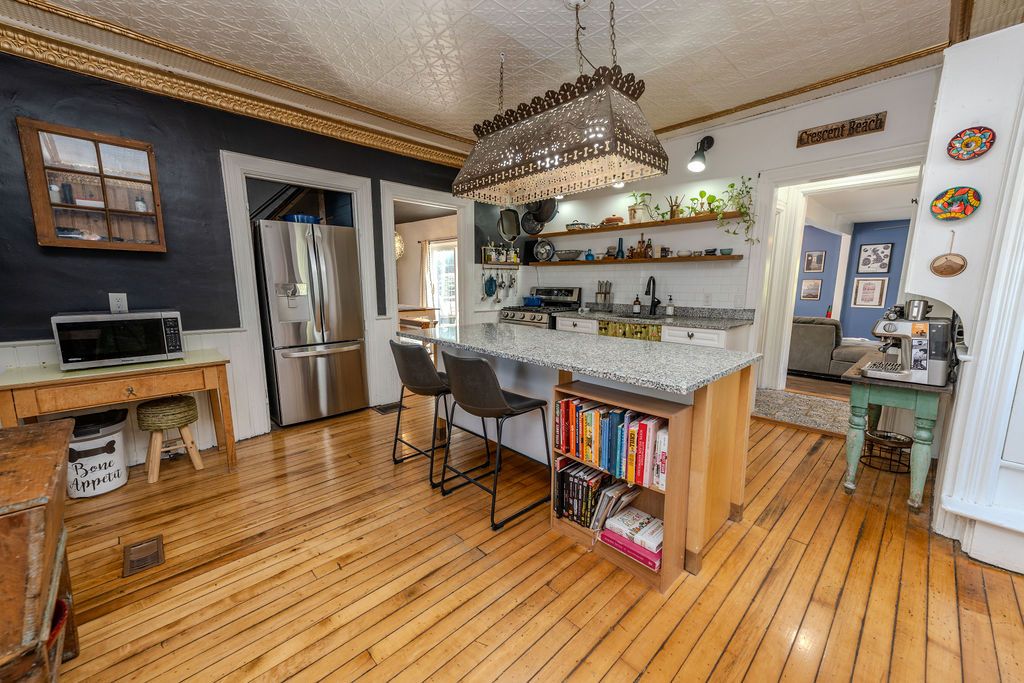 • Updated kitchen combines old-world charm with modern appliances.