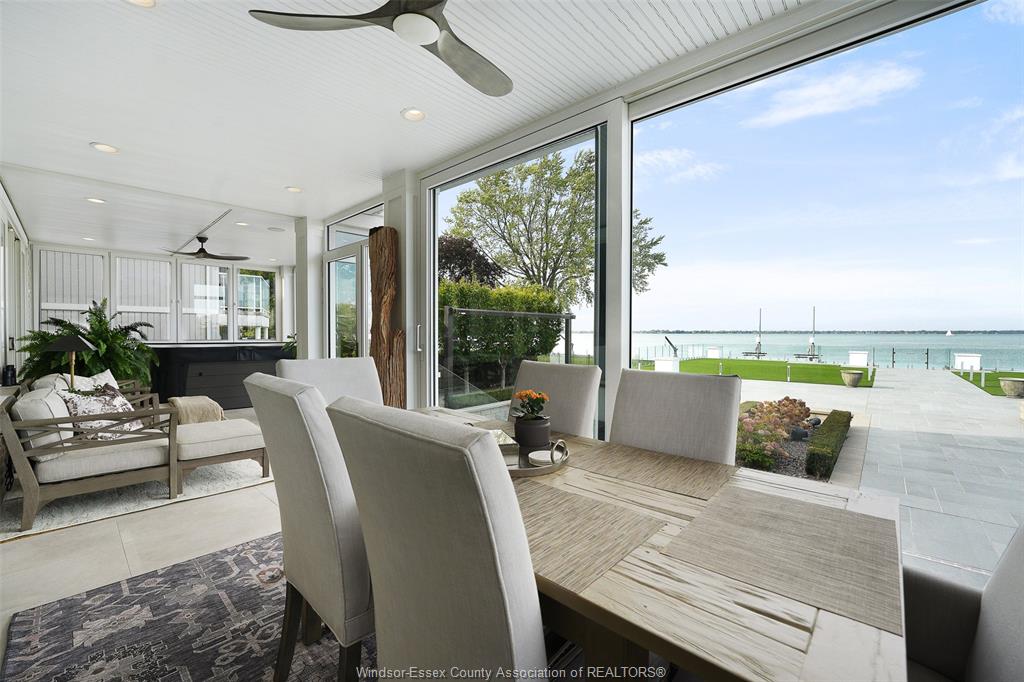 11770 riverside dr arrive home to a private waterfront sanctuary on approx 1 acre - where timeless elegance meets refined windsor luxury. This two-storey home offers 3 bedrooms and 4 bathrooms with approx. 5,000 sq. Ft. Of finished living space, plus a 1,480 sq. Ft. Resort-style pool house. Designed for effortless entertaining and relaxed lakeside living, the property features thoughtfully curated interiors, seamless indoor-outdoor flow with its nano door system, elevator for access to all 3 levels & premium finishes throughout. A rare opportunity to enjoy resort-inspired waterfront living in the heart of windsor. Contact listing agent for all the fine details