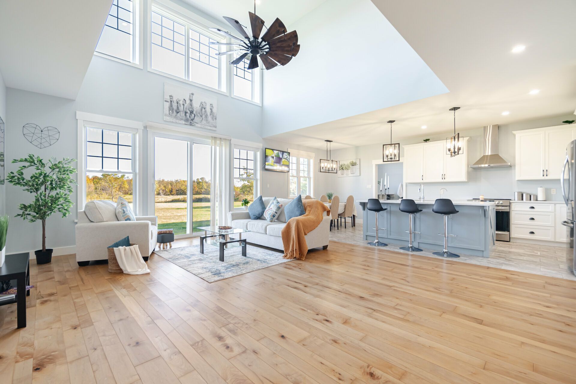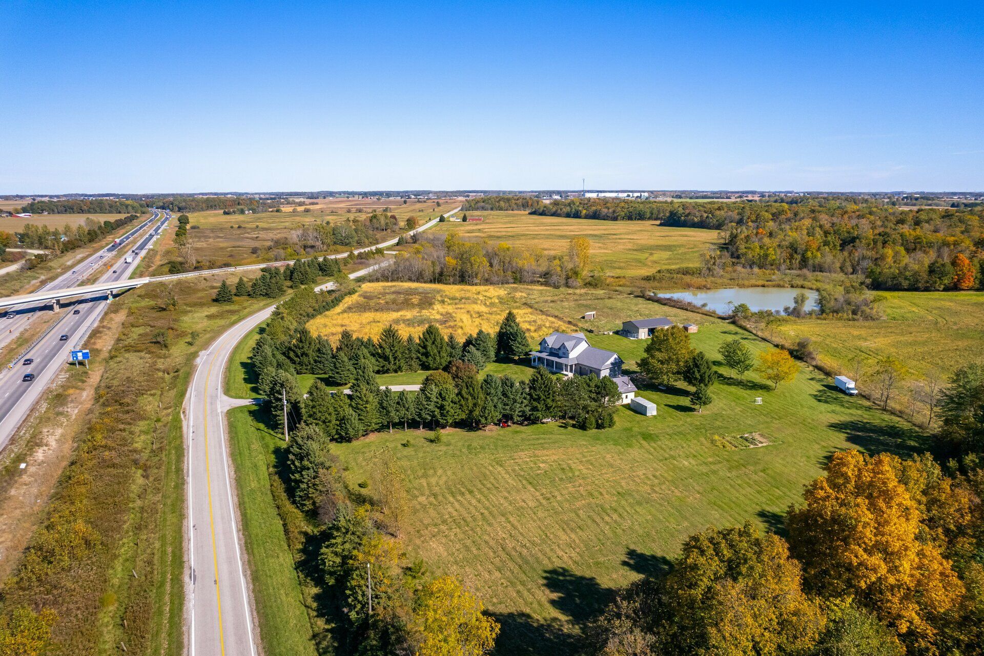 • Custom-built farmhouse on 19 acres of scenic land for plenty of space.