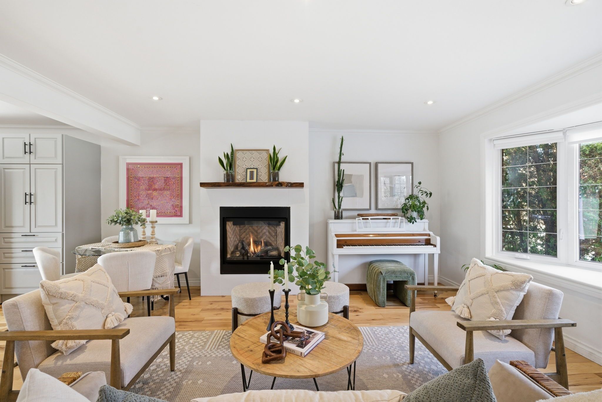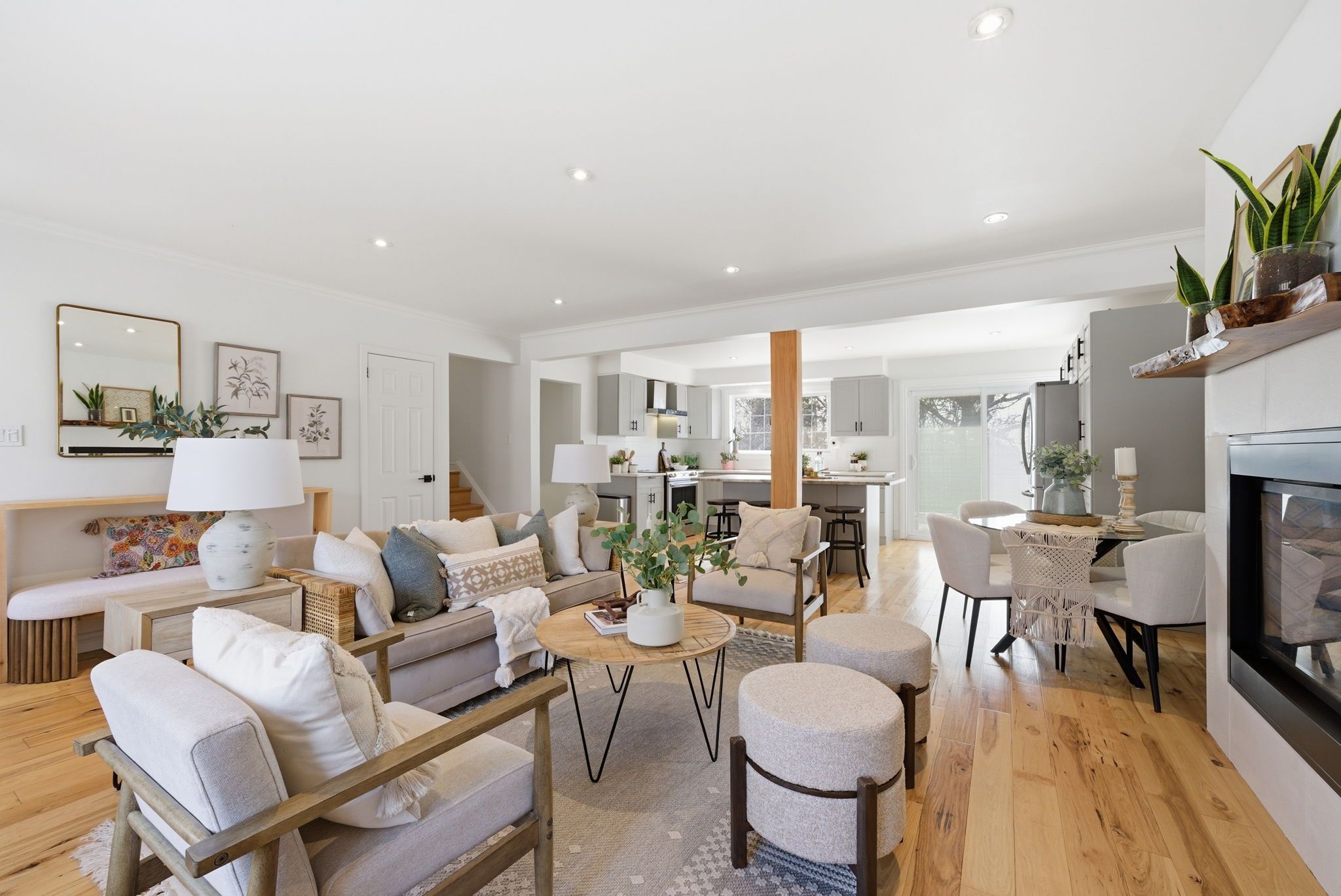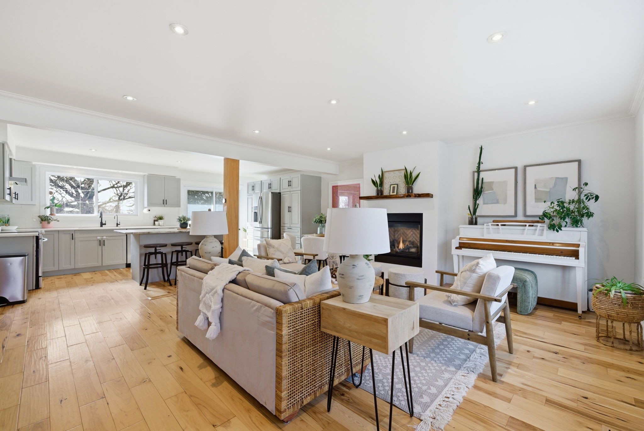 • Updated kitchen and living room with modern features and hardwood floors.