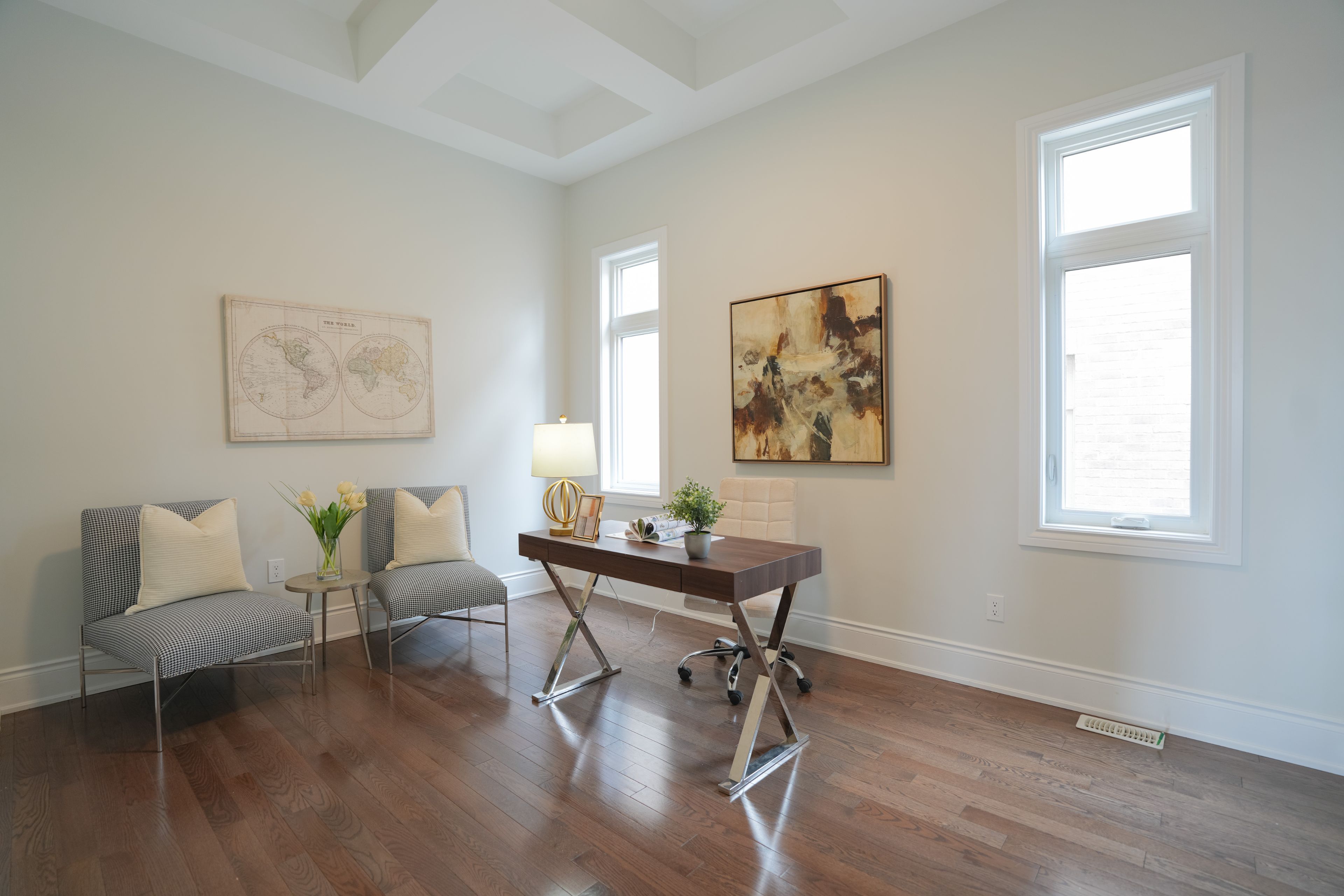 • Spacious living room filled with natural light and hardwood floors.