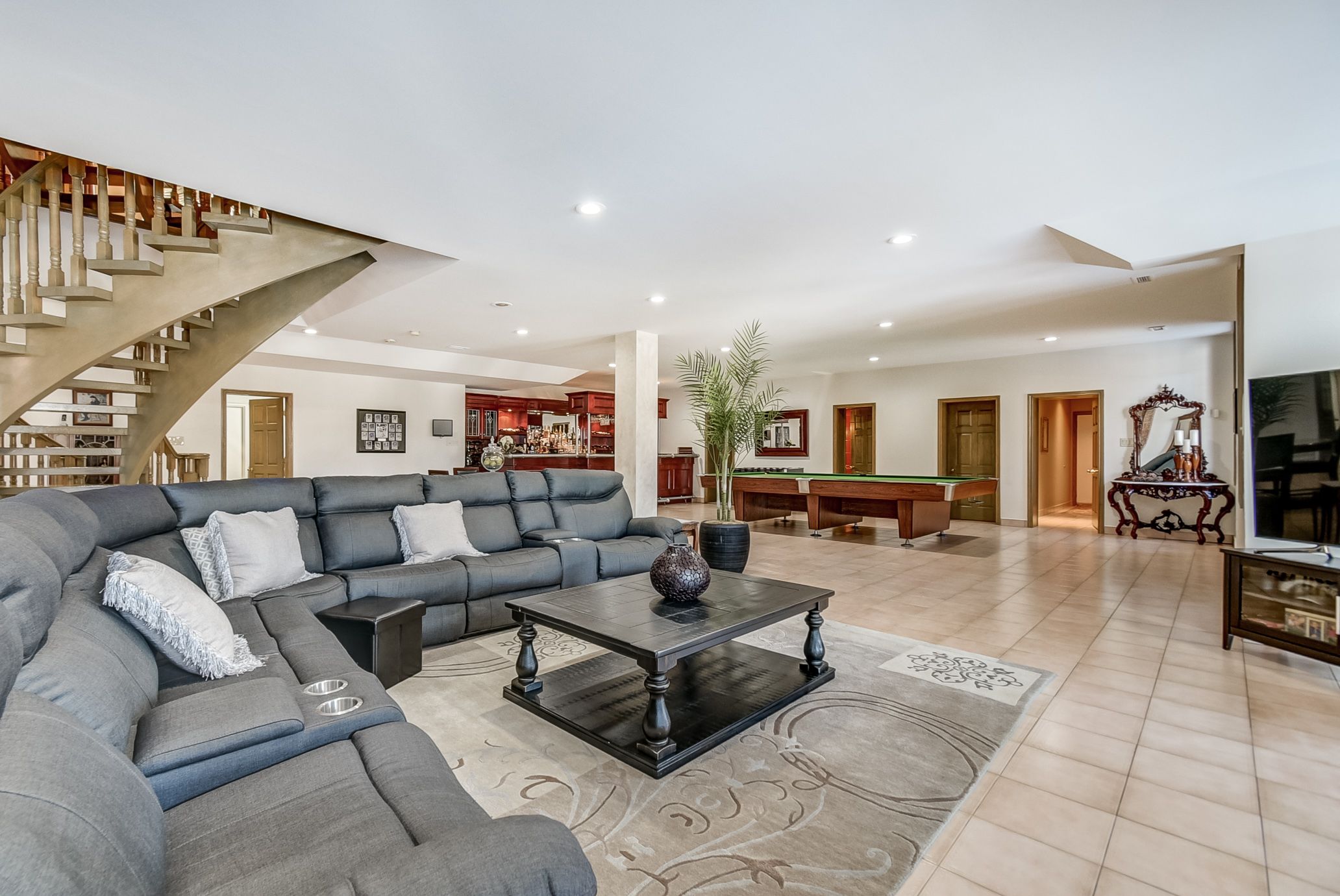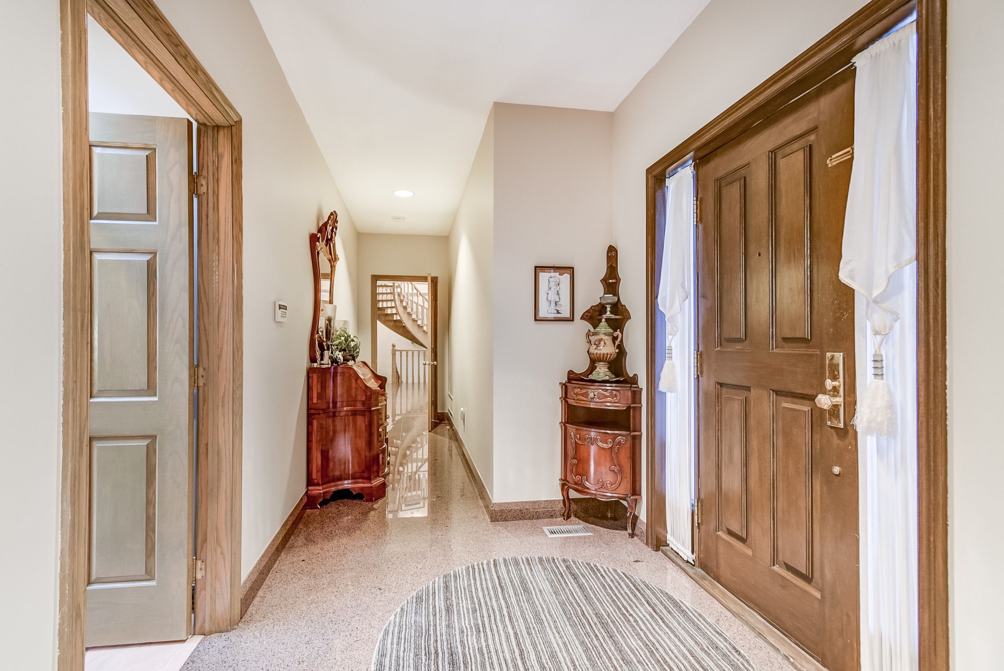 • Elegant grand entrance with a unique spiral staircase enhances the home.
