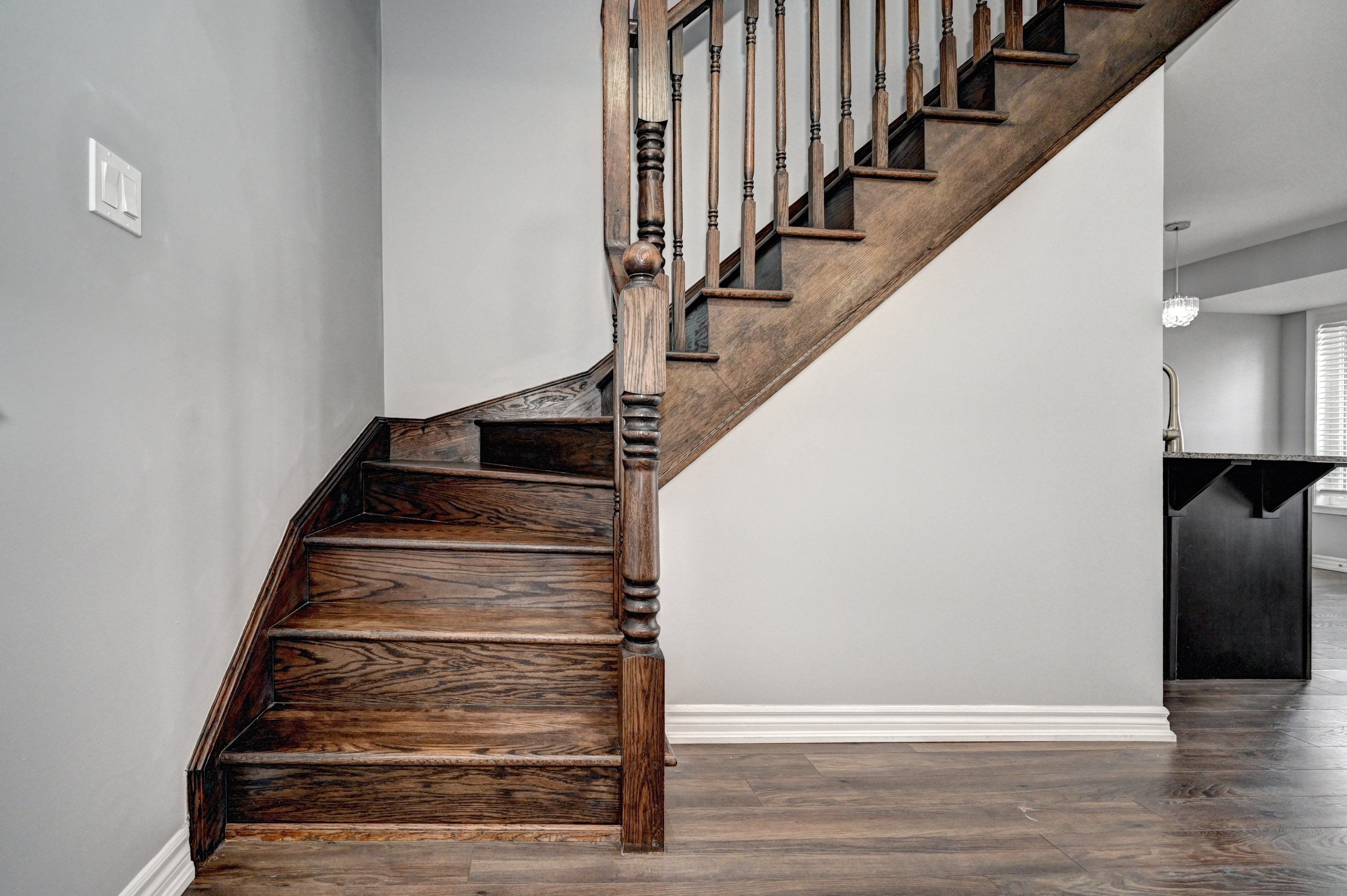 • Laminate flooring throughout the main level adds modern appeal.