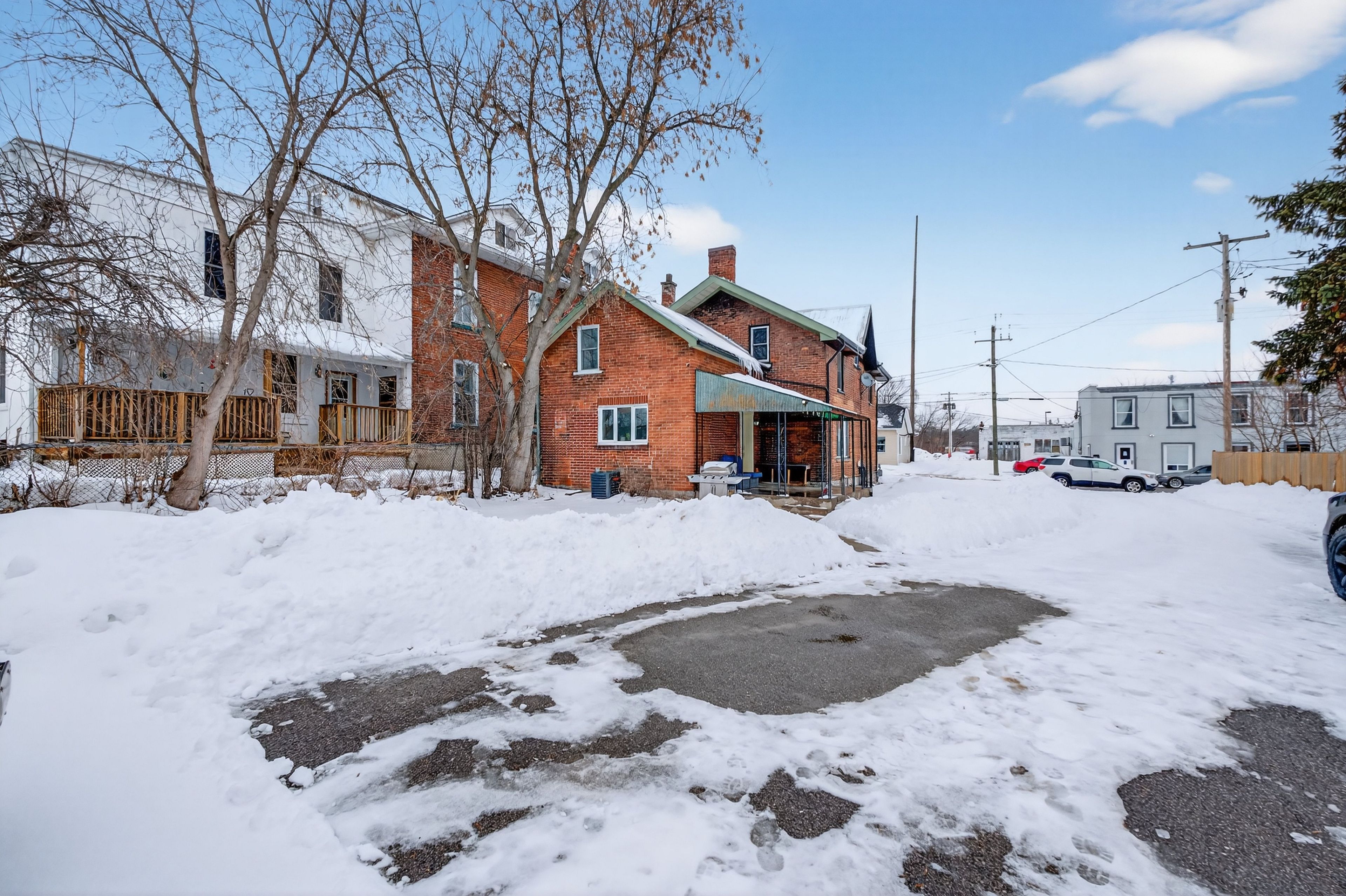Unlock exceptional live/work potential with this versatile c-3 general commercial property, ideal for a home-based business or full commercial use. Commercially zoned with a legal non-conforming residential designation, this unique opportunity offers flexibility and long-term value. Built in the 1880s, the charming all-brick two-storey home blends character with thoughtful updates. Featuring 3 bedrooms and 1. 5 baths (a full four-piece upstairs and a convenient two-piece on the main level), the layout is practical and inviting. The formal dining room sits at the front of the home, flowing into a spacious central living room with high ceilings. The kitchen overlooks the backyard and includes a built-in microwave fan, dishwasher, new fridge and stove, and side-by-side main floor laundry. Upstairs offers three comfortable bedrooms, including one accessed via a rear staircase. Recent improvements include upgraded electrical service with new wiring to the oversized garage/workshop/barn, newer central air, plumbing and bathroom updates, new flooring throughout the main level, and a new 6-foot fence along the back and south side. A durable metal roof, stone foundation, welcoming front porch, and move-in ready condition complete the home. At the rear of the expansive lot sits an impressive two-storey outbuilding offering approximately 808. 91 sq ft on the main level and 815. 60 sq ft in the loft. With two garage doors, generous workspace, and a massive loft area, it's ideal for storage, workshop use, studio space, or business operations. The paved driveway provides abundant parking for clients or personal vehicles. Set on a large lot with excellent visibility, this property is bigger than it appears and full of opportunity - a rare chance to secure a commercially zoned property with outstanding potential.