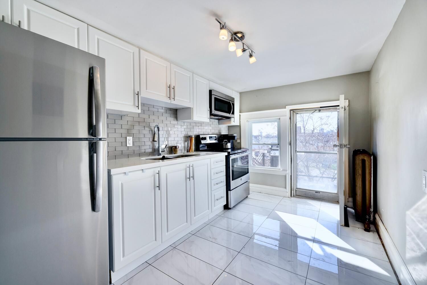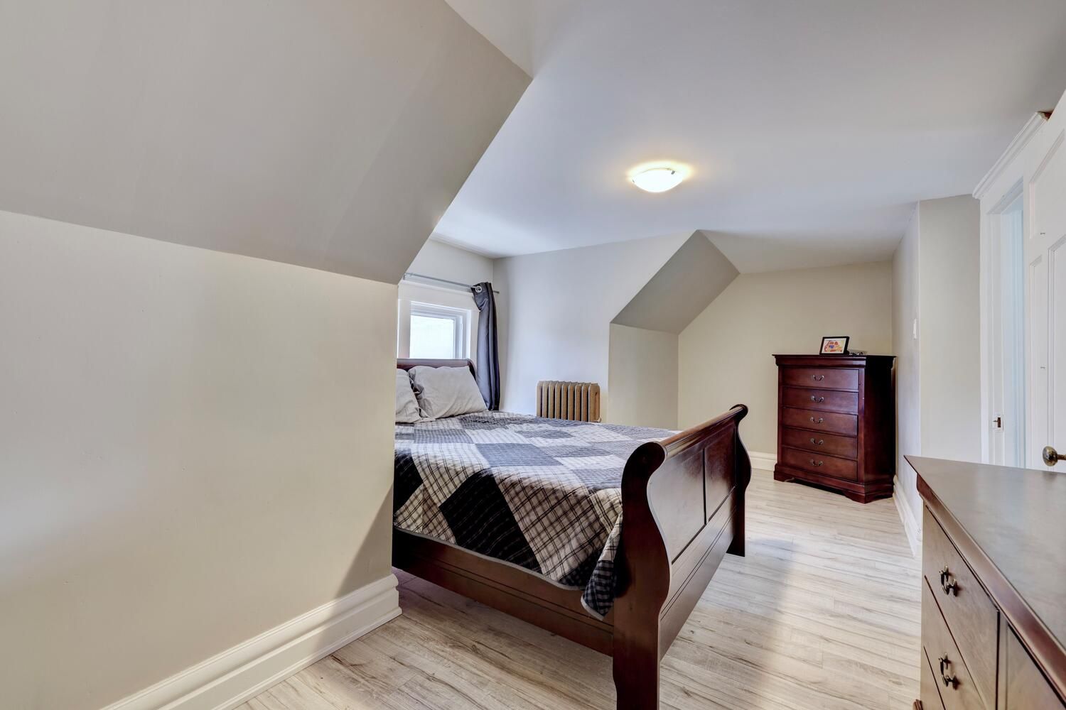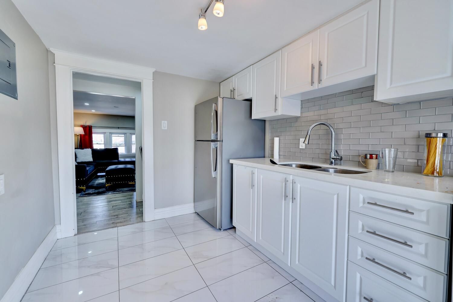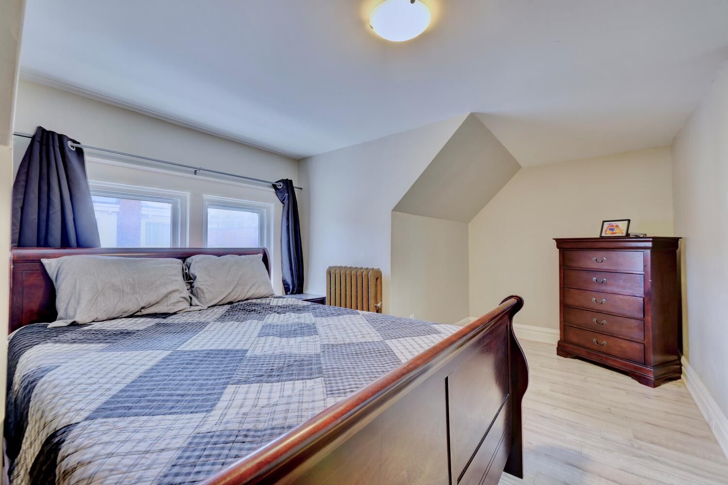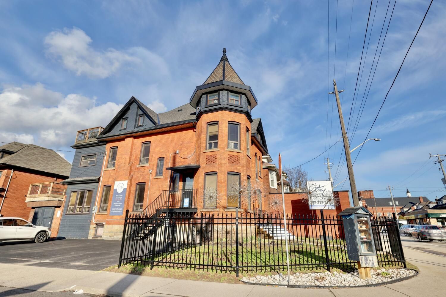Rare find: a top level penthouse! In a 5000 square feet three storey brick & stone mansion professionally converted to legal triplex + lower level apartment. The penthouse has separate staircase and additional fire escape. Private porch with a view. Beautiful new white kitchen with stainless steel appliances, quartz countertops and marble backsplash. Spacious new bathroom with glass enclosed shower and porcelain floors. Very big and sunny living room. Huge bedroom. Water, heat included. Gorgeous view of tree tops and nice, renovated buildings on this gentrified street. Original tigerwood trim, doors, beamed ceilings, stained glass windows, gracious covered front porch, newel post and more... 10' and 9' ceilings improved with four new bathrooms featuring glass enclosed showers, porcelain floors and quartz countertops; 4 new kitchens with stainless steel appliances, white modern cabinets, porcelain floors, pot lights, glass backsplash and quartz countertops; all new character laminate floors. Total of 4 independent apartments: one per floor. Each has two ways of egress. New roof 2022. Separate hydro meters for each unit, 4 total. Fabulous location on a leafy street with upscale, renovated and well kept homes. Conveniently located near gage park with botanical gardens pavilion, community centre, numerous schools, churches, shopping and hospital nearby. Close to vibrant king street, james street north and fabulous revamped downtown hamilton. Public transportation and easy access to red hill highway, nikola tesla hwy, qew.