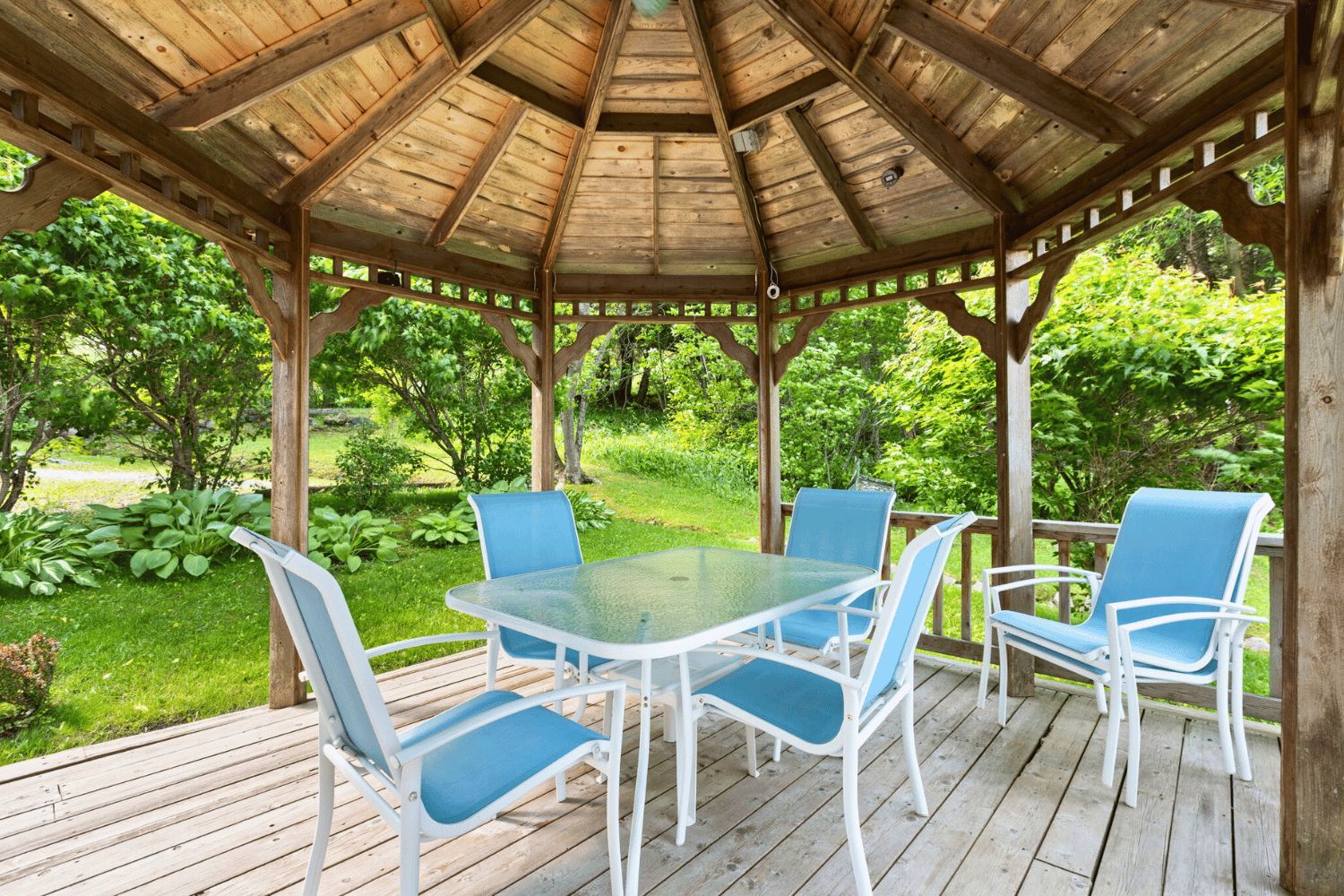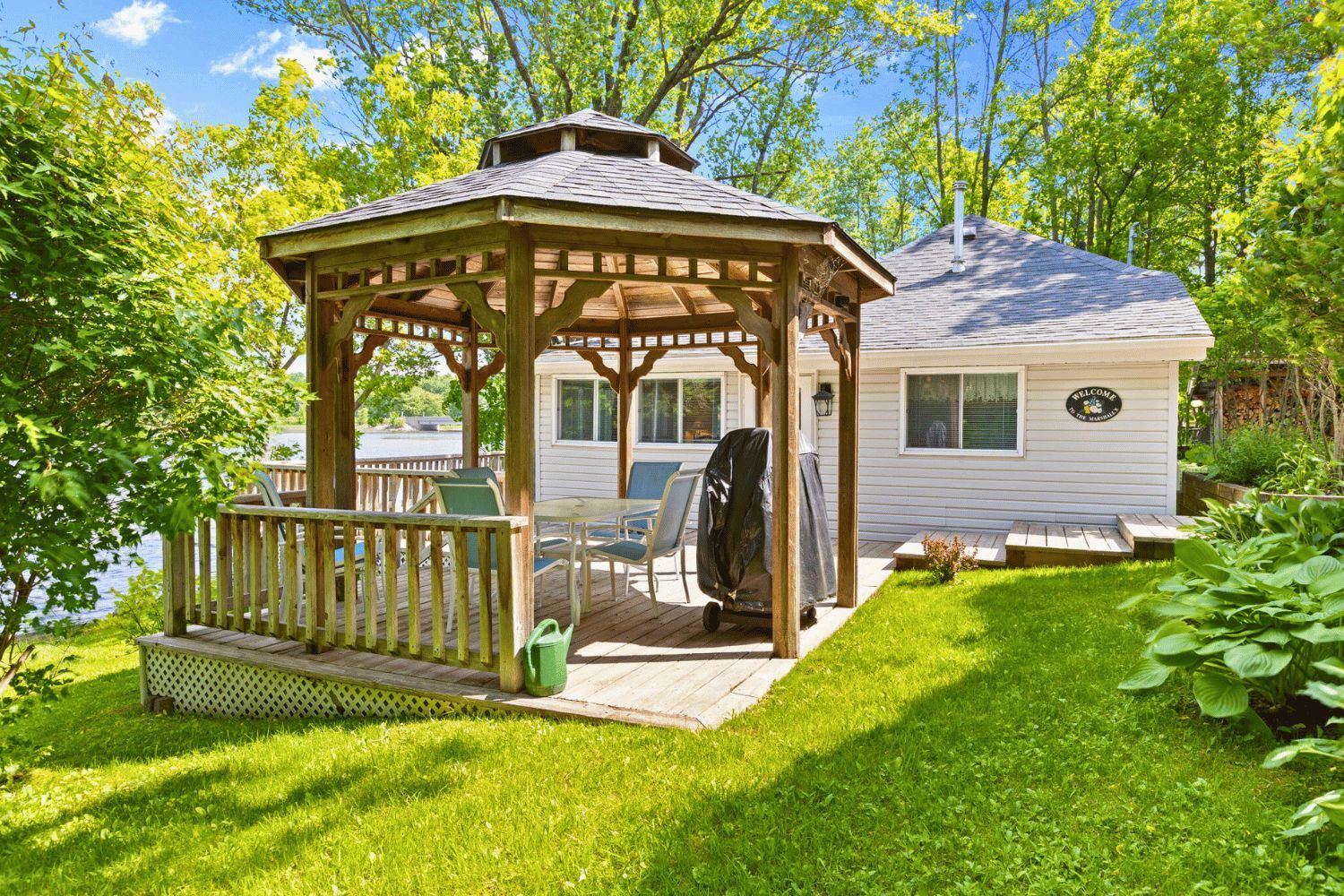 • Wrap-around deck and gazebo perfect for outdoor enjoyment.