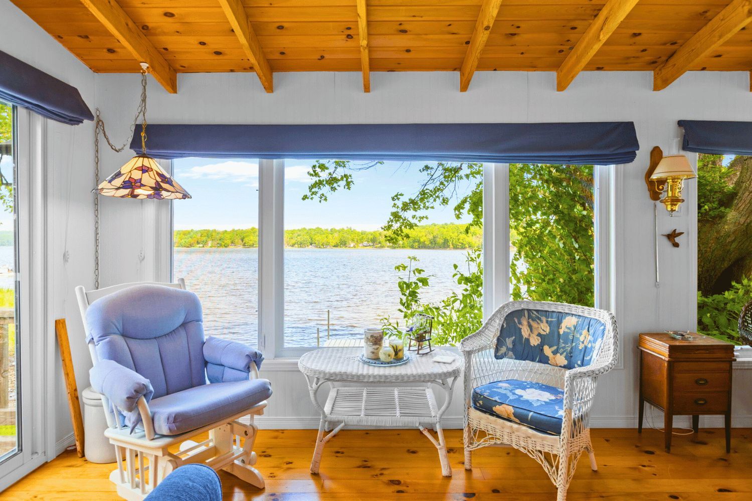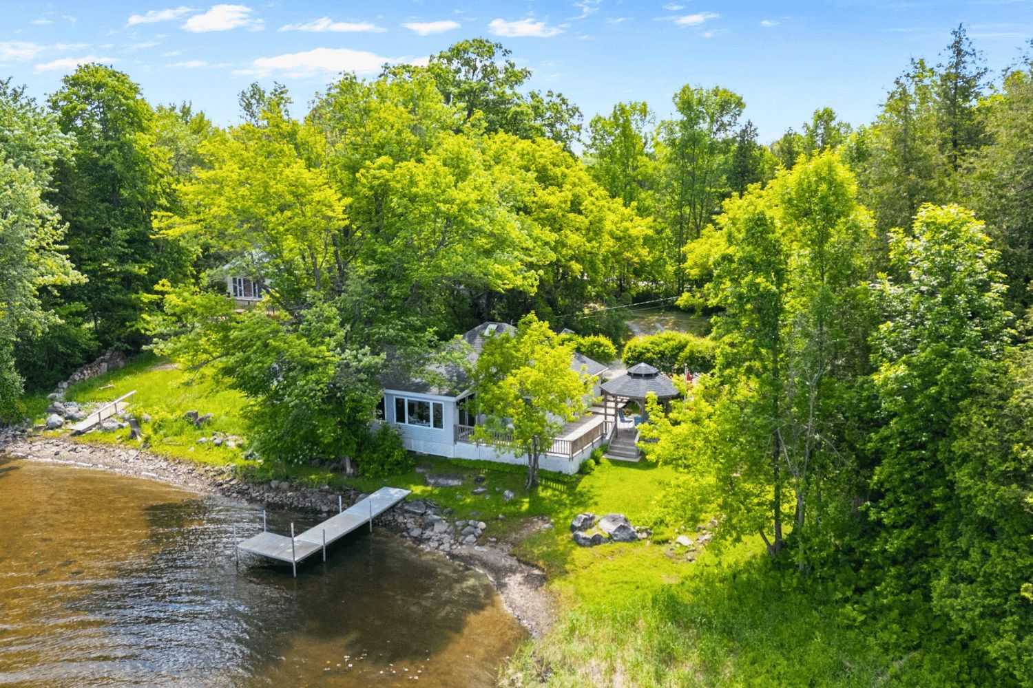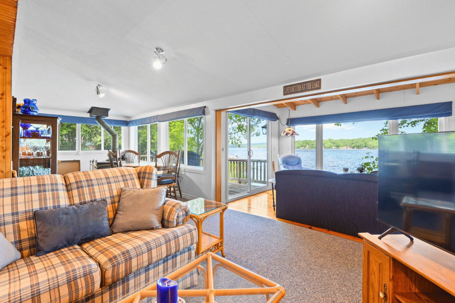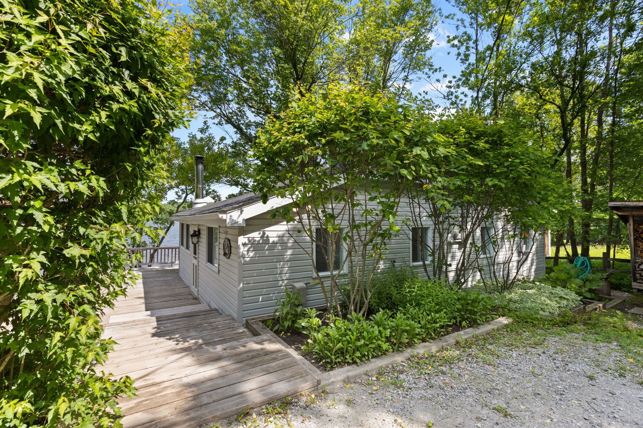 This lovely 3-season cottage (comes fully furnished!) is tucked among the trees and sits right on the edge of beautiful dalhousie lake. Just one hour from ottawa, its the perfect place to relax, unwind, and enjoy the outdoors. With stunning sunset views and the calm sound of water just steps away, this is a peaceful spot you'll fall in love with. As you arrive, you'll find parking for four cars on a gravel driveway. The cottage is finished with easy-to-care-for vinyl siding and is surrounded by nature. Its easy to get here with paved roads leading right to the cottage. Step inside to a charming bright white kitchen. Whether you're prepping meals or grabbing snacks for the deck, the space is both functional and full of natural light. In the dining area, there' a cozy wood stove that's perfect for warming up on cooler days. The living room has a warm, inviting feel with wood accents throughout overlooking an expansive front sunroom with large windows offering amazing lake views from every angle. The cottage features three comfortable bedrooms. The main bedroom has beautiful views of the lake, plus a closet for extra storage. Two additional bedrooms are tucked at the back, perfect for guests or family. There's also a newly updated 3-piece bathroom and a laundry space for added convenience. Outside, enjoy a wrap around deck and beautiful gazebo facing the water ideal for relaxing, dining, or watching the sunset. The cottage has reliable well water, tested every spring. For comfort, its heated by a propane furnace, a ductless split system, and a cozy wood stove and cooled by a split air conditioner. Close to the well-known sylvanian lodge restaurant and easy to access by paved roads, this cottage has everything you need for peaceful lake life. 118 hall shore road is a true hidden gem peaceful, private, and right on the lake. A place to enjoy the simple things and recharge in nature.
