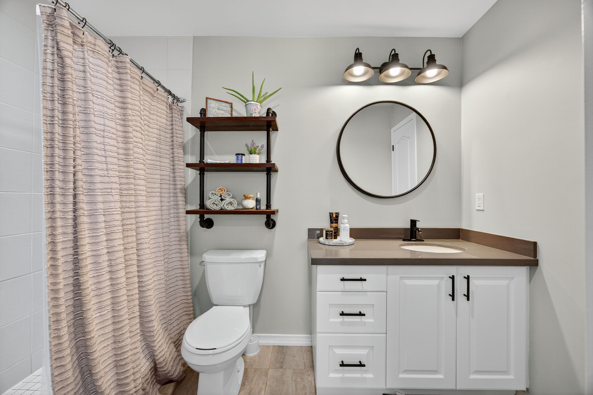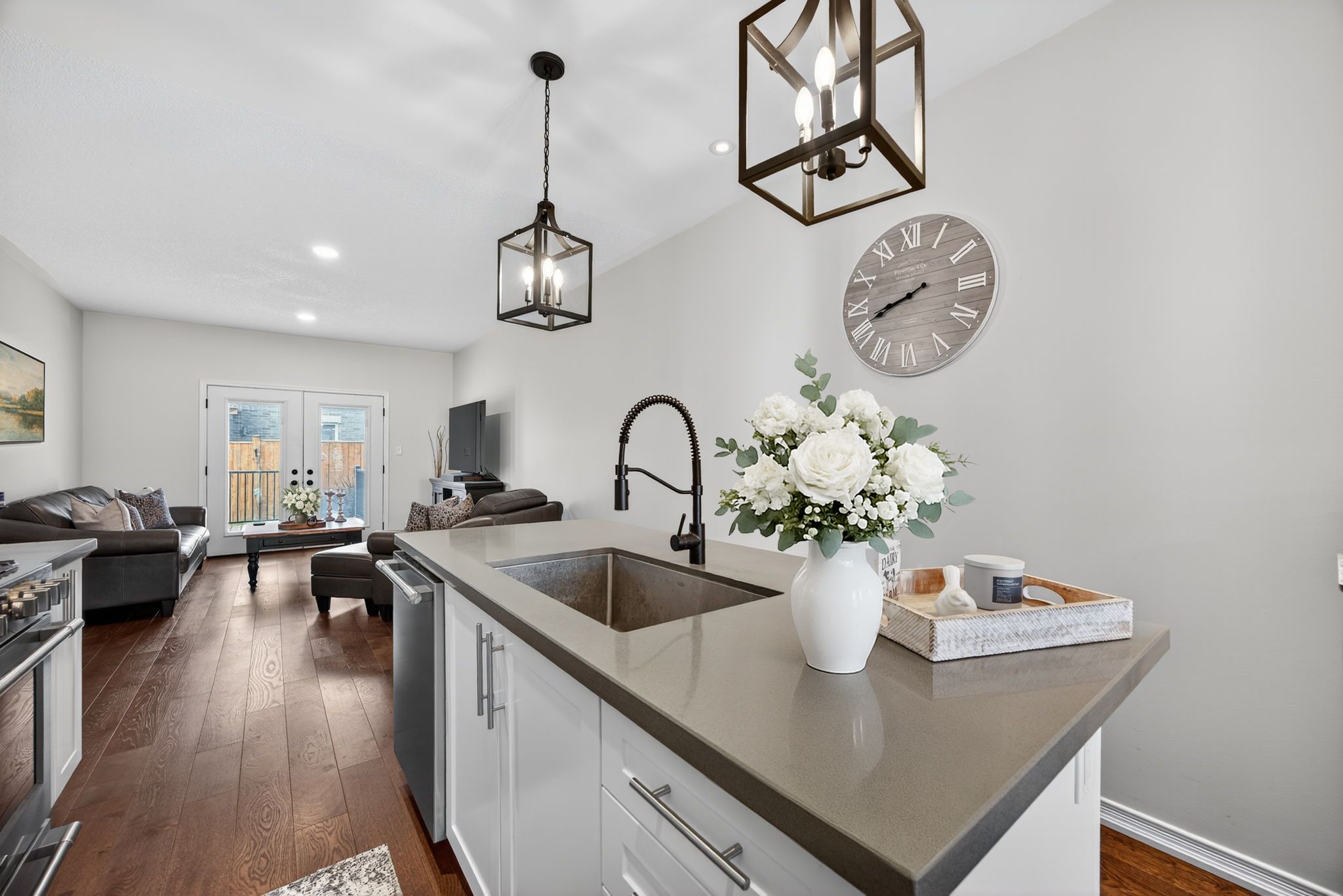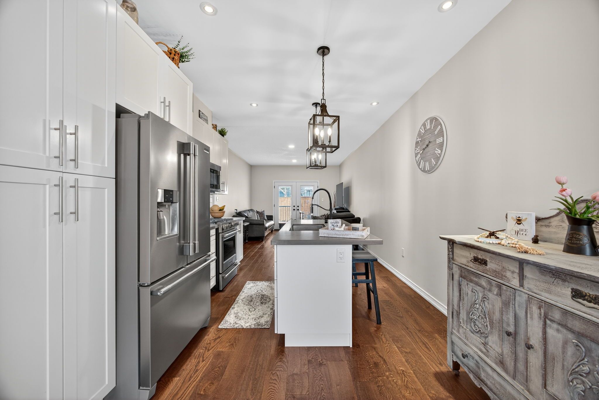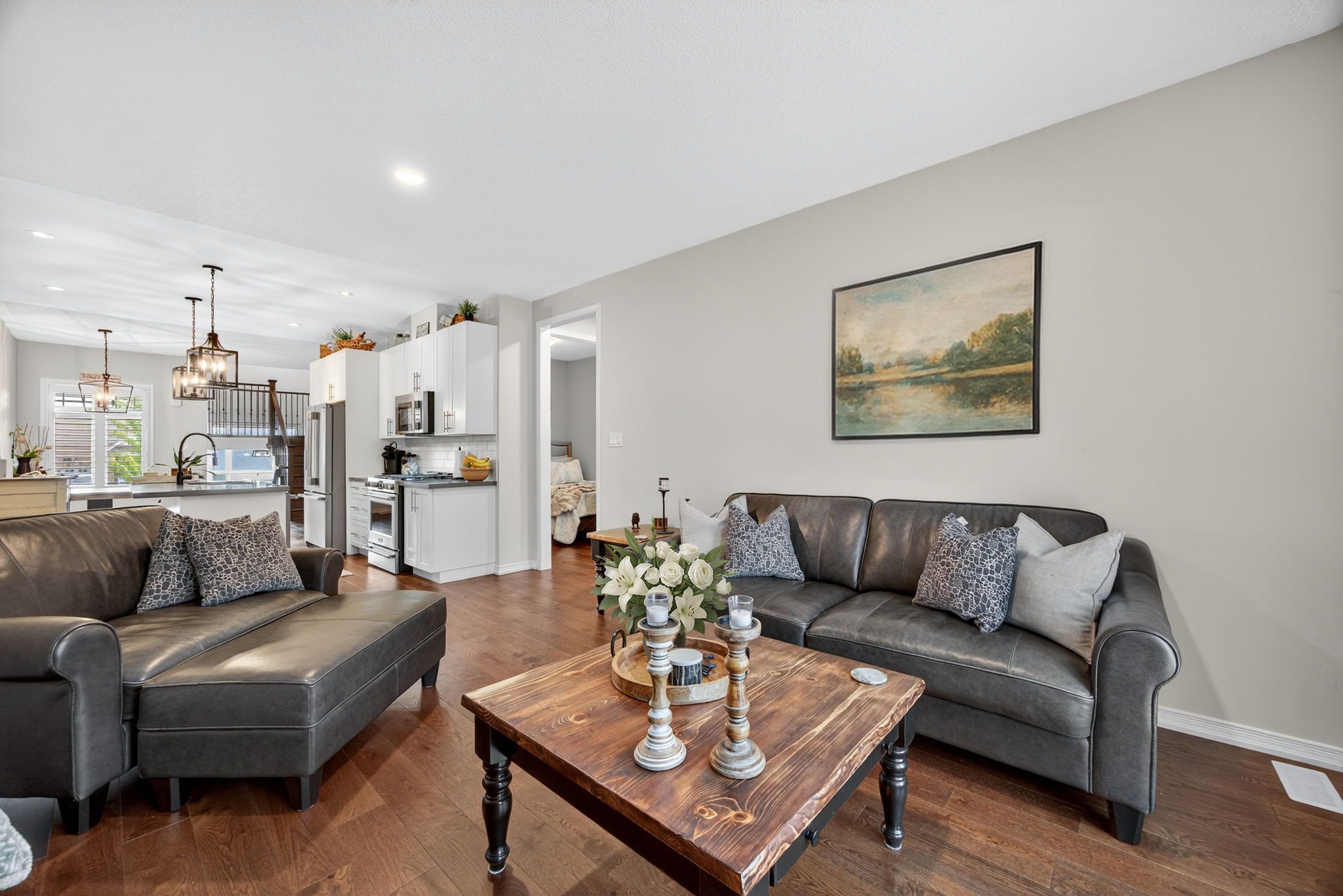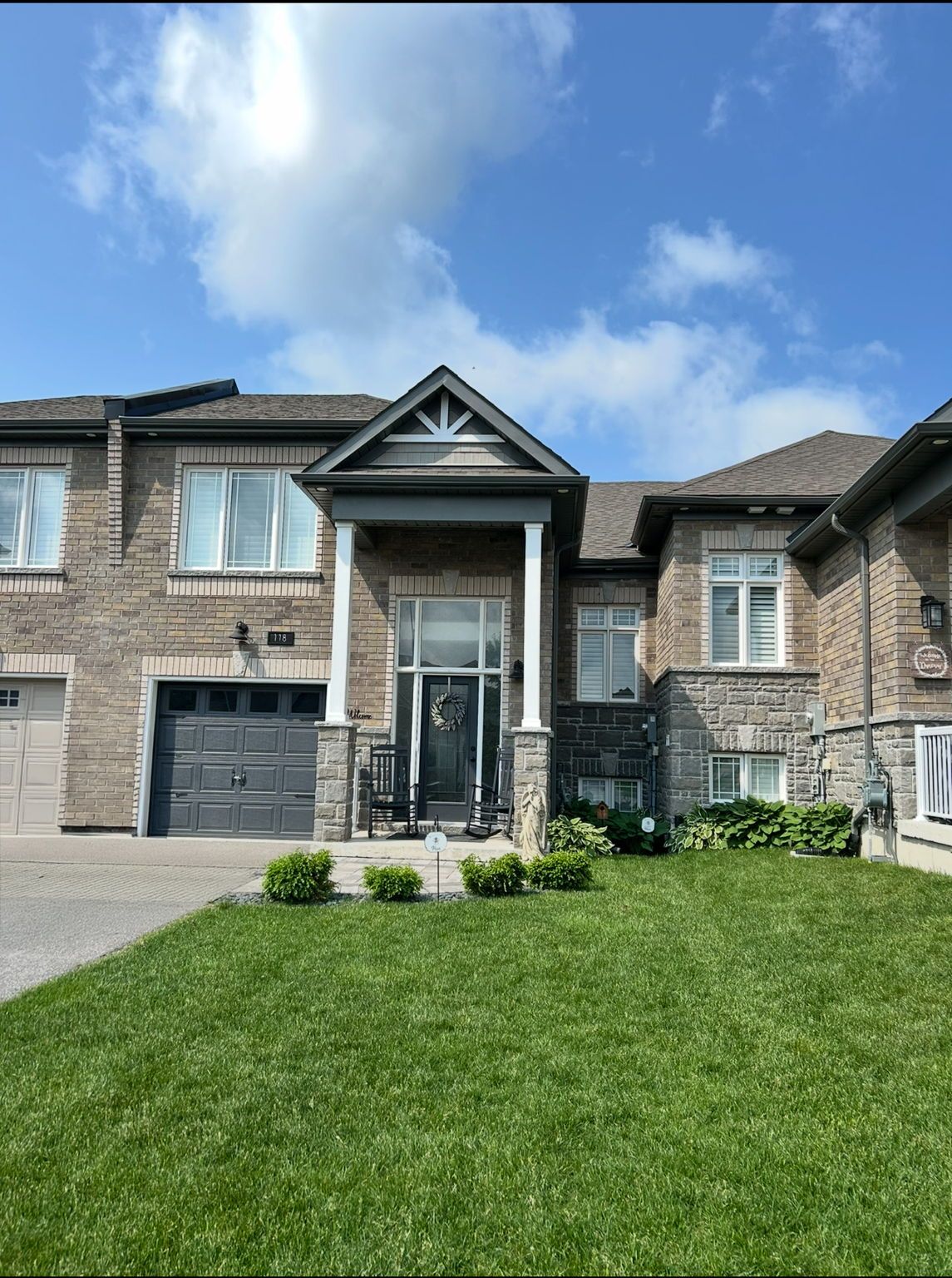 Completely turn key, 2019 built, all brick & stone, bungaloft townhome in sought after orillia! With over 2,300+ sqft of available living space, welcoming front foyer leads to open concept layout featuring elegant finishes, rich hardwood flooring, 9ft ceilings, california shutters, & large windows throughout! Modern white kitchen boasts stainless steel appliances including gas range, quartz counters, subway tile backsplash, & large centre island with breakfast bar seating. Living room with walk-out to backyard deck, & fully fenced private backyard. 2 bedrooms on the main level are great for guests or family to stay, with closet space, & shared 3 piece bathroom! Retreat to the private primary bedroom on the upper level, with double closets, 3 piece ensuite with tile flooring, & additional linen closet! Fully finished basement features cozy broadloom flooring, spacious rec room, & additional bedroom! Lower level laundry completes the basement with laundry sink & additional storage space. Stunning curb appeal with interlocked driveway & landscaped lot. 1 car garage with inside access to front foyer & direct access to backyard! Plus 3 driveway parking spaces with no sidewalk! Nestled in an ideal location, close to all major amenities including costco, lakehead university, recreation centres & sports complexes, walter henry park, hospital, bass lake, provincial parks, walking trails, & couchiching lake, beach, & golf + country club! With tons of activities for the whole family to enjoy, all that's left to do is move in!