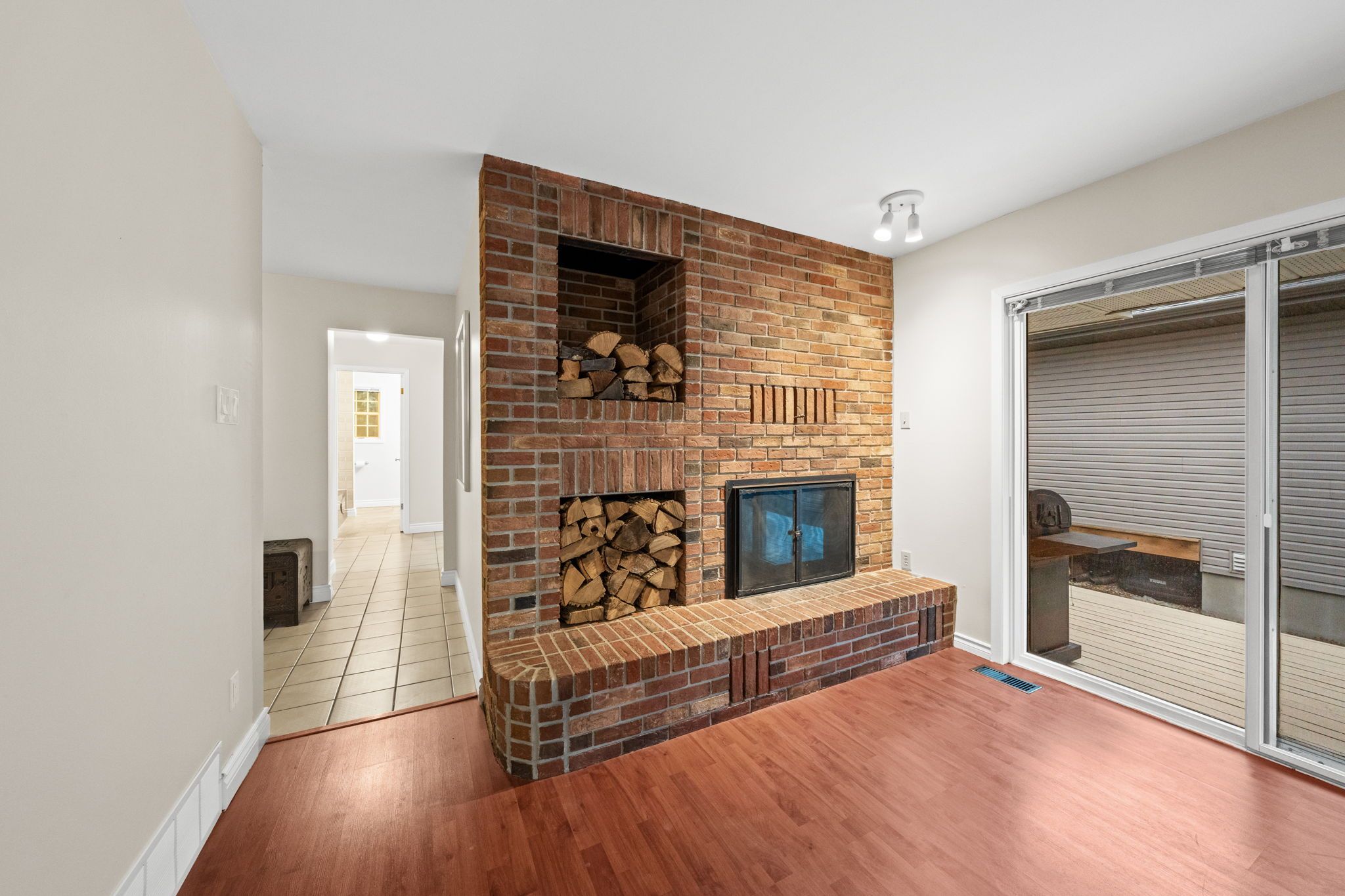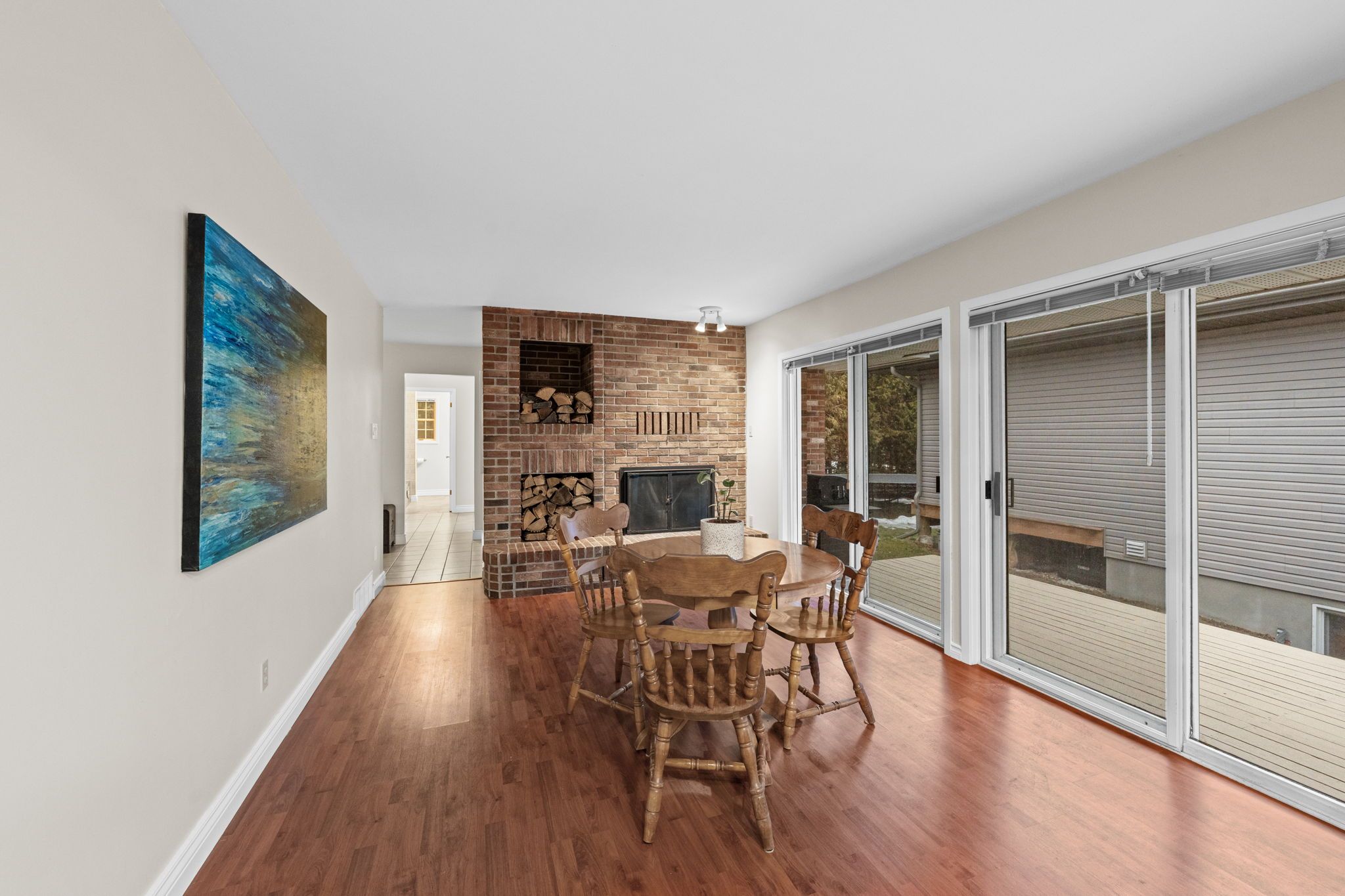 Welcome to this spacious and meticulously maintained bungalow in the charming village of carp. A large screened-in front porch offers the perfect place to relax before entering through french doors into a generous foyer. Glass french doors open to the bright living room, which flows into a formal dining area and connects naturally to the kitchen. The kitchen offers excellent storage and counter space with an extended peninsula for additional seating. The adjoining eating area features a striking brick wood-burning fireplace, creating a warm and inviting space for everyday dining. From the kitchen, enjoy convenient access to the main floor laundry, full bathroom, double garage, and basement staircase. Three spacious bedrooms complete the main level, including a bright primary suite featuring its own private 3-piece ensuite. Two additional well-sized bedrooms and another full bathroom provide comfortable space for family or guests. The expansive lower level is highlighted by direct garage access, a large recreation room with storage shelving, and three additional rooms. This versatile space offers excellent opportunities for extended family living, hobbies, or future investment potential, with a layout that easily adapts to a variety of lifestyle needs. Complete with a double car garage, this home offers generous living space in a peaceful community setting. Enjoy the charm of village living while remaining just minutes from kanata and everyday amenities.