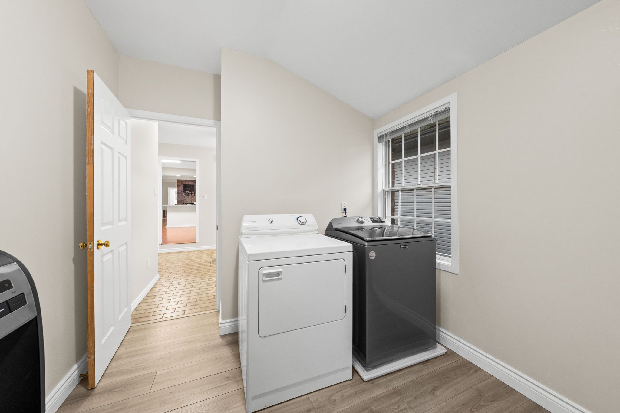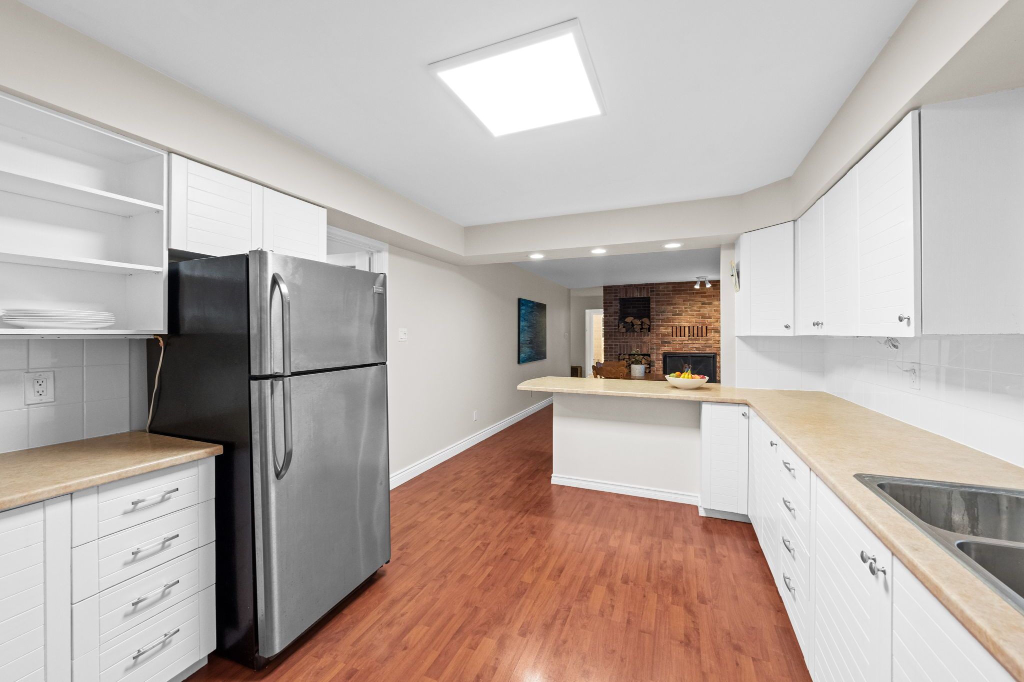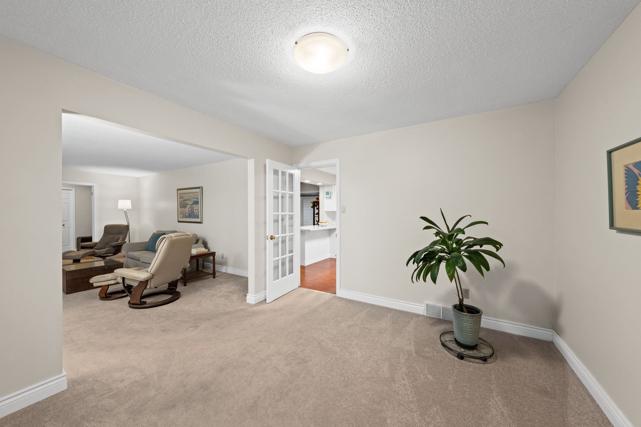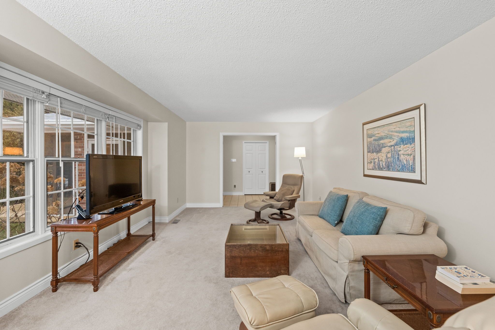• Bright living room flows into a formal dining area and functional kitchen.