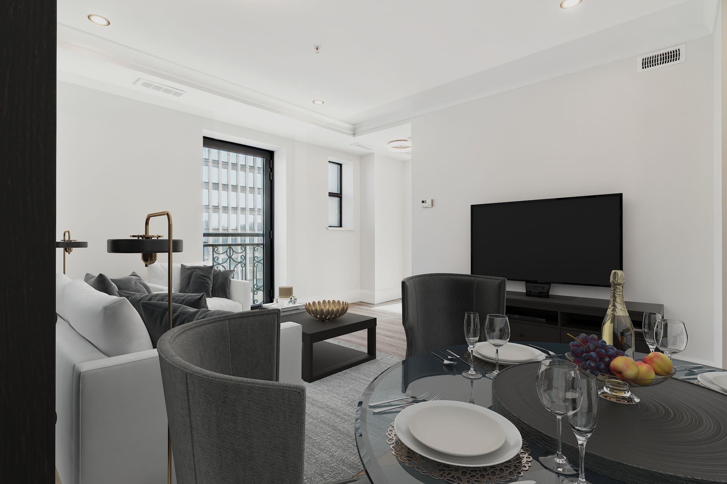 • Bright one-bedroom suite with nine-foot ceilings and stylish upgrades.