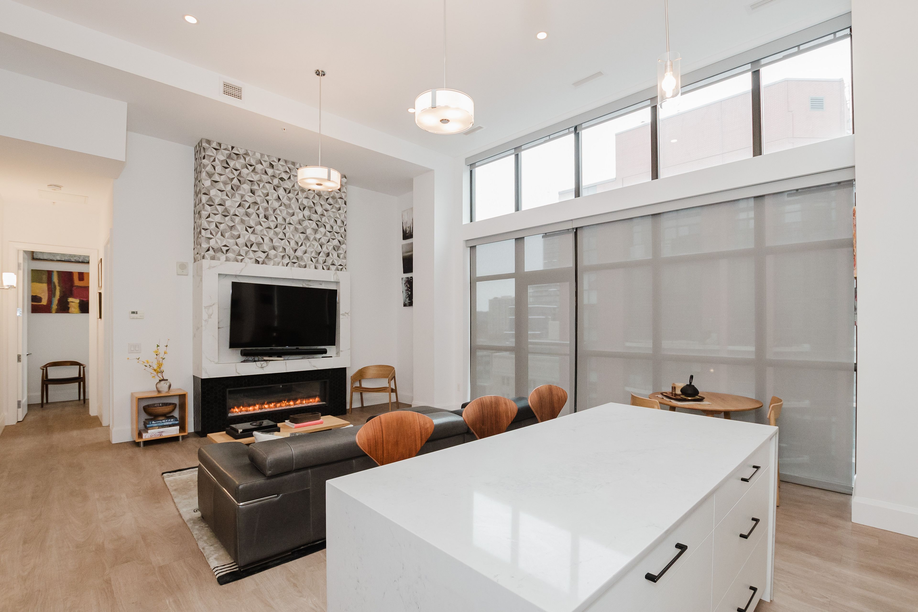 Welcome to this lovely lower penthouse at the iconic royal connaught, a beautifully preserved piece of hamiltons history right in the heart of downtown. This pristine, sun-filled unit offers soaring 13-foot ceilings, a bright open-concept layout, and southwest views. The modern kitchen is perfect for entertaining, featuring a waterfall quartz island, matching quartz countertops, and custom glass backsplash. The spacious living area includes a custom feature wall with electric fireplace. Enjoy added comfort and convenience with automated blinds throughout, a double vanity in the large 4-piece bath, a custom glass-enclosed tub/shower,in-suite laundry, and a walk-in closet in the primary bedroom. This unit also comes with an owned locker and an underground parking spot. Located just steps to everything you love about city living including trendy cafes, shops, art galleries, restaurants, and the vibrant energy of james street. You'll also love the easy access to hospital services, transit, and go station connections. If you're ready for a blend of luxury, history, and urban convenience, this spectacular condo might just be your perfect match.