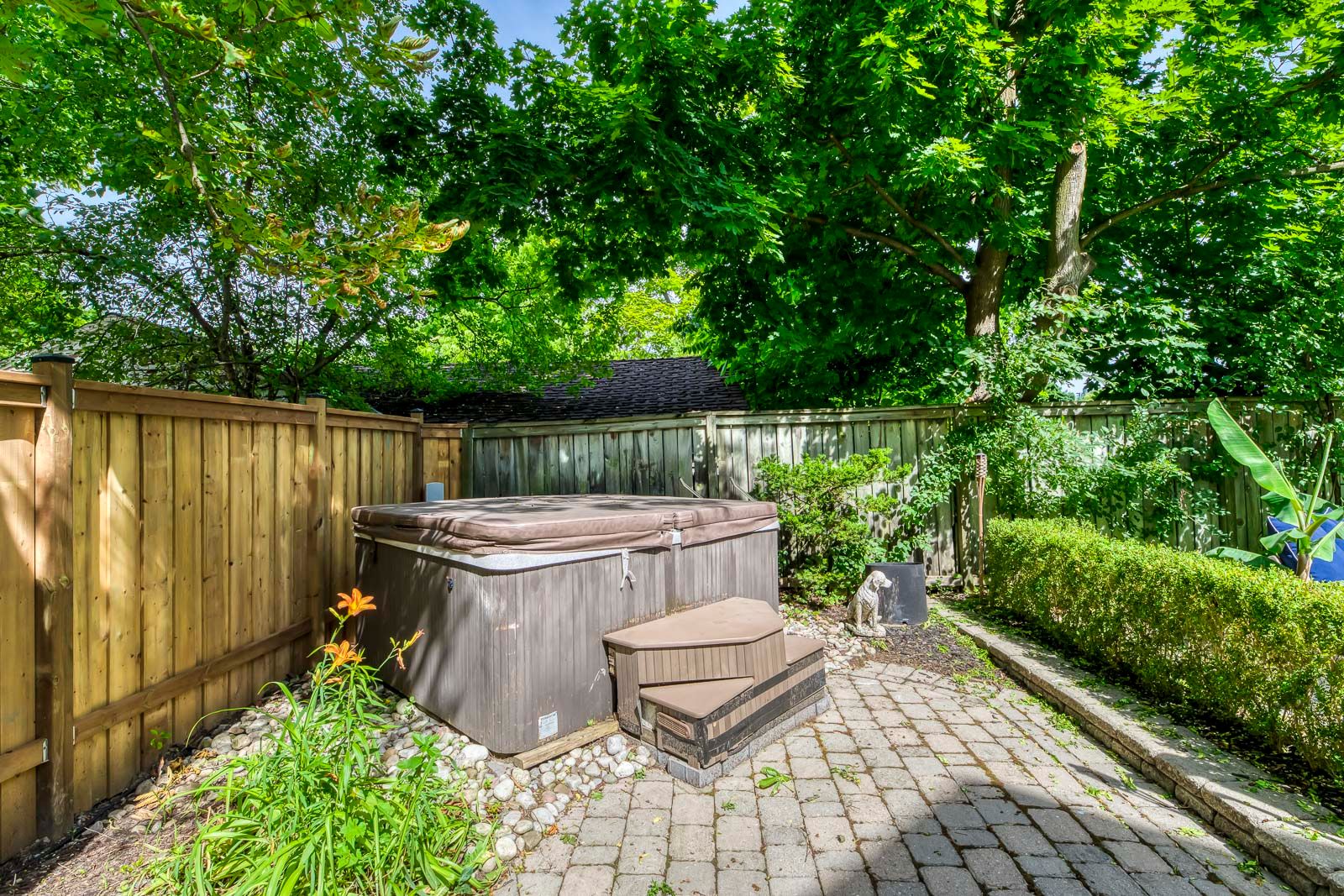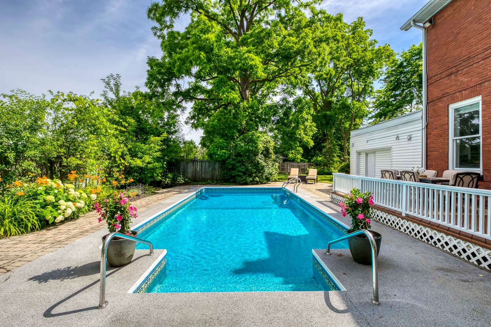• Beautifully landscaped yard with saltwater pool and hot tub for relaxation.