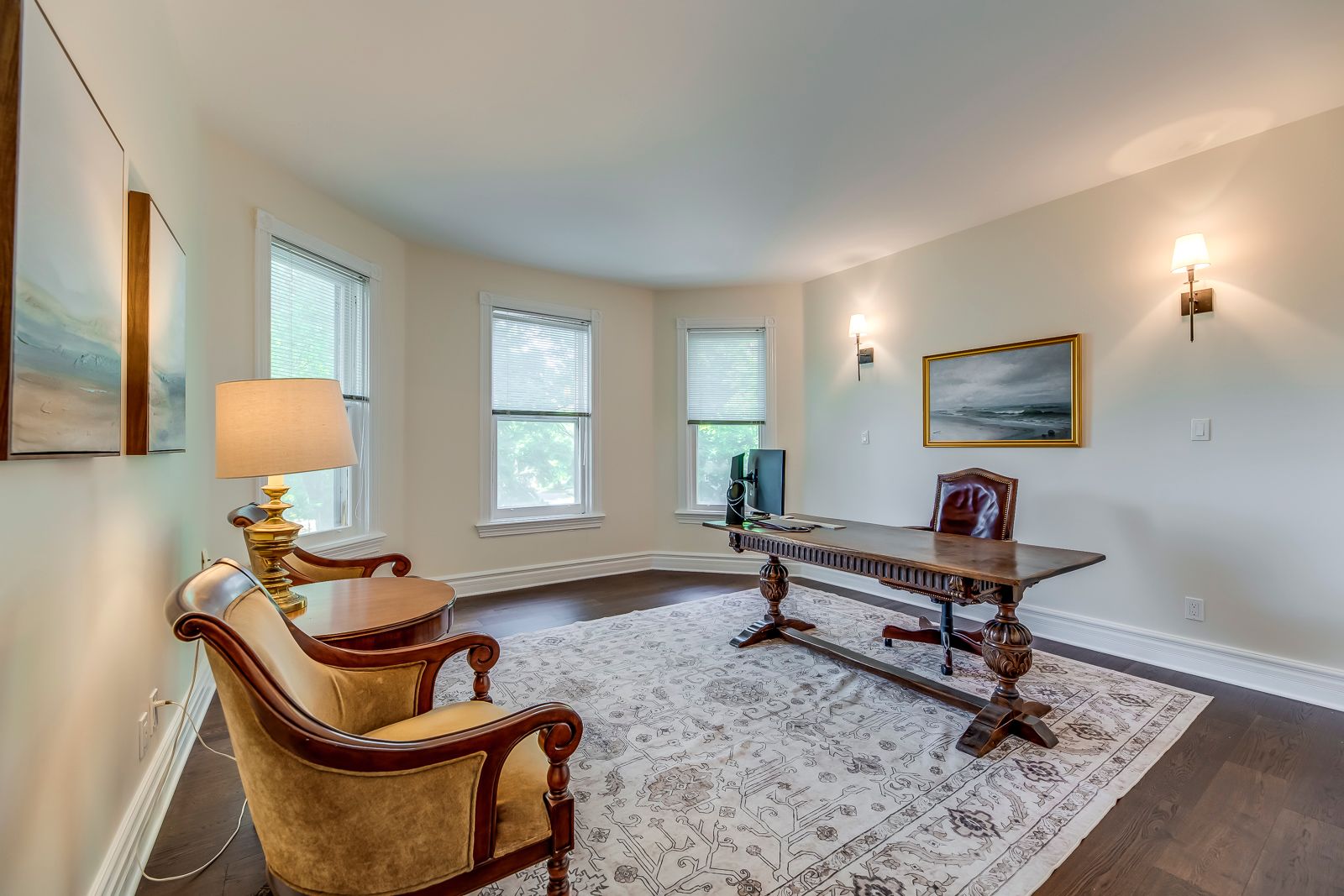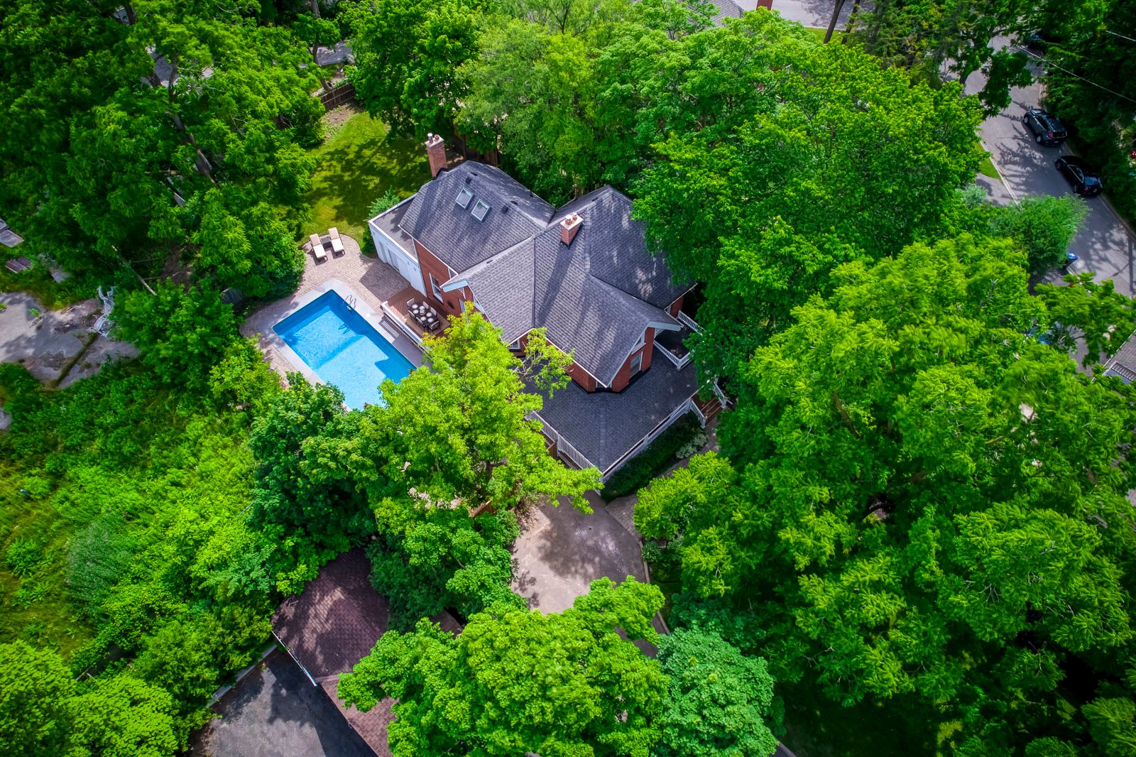 Discreetly set off main street on a remarkable treed lot, this exquisitely renovated century home offers a rare blend of heritage charm and refined luxury. With over $200k in curated upgrades, the residence features hardwood floors, an elegant oak staircase, custom millwork, crown moulding, and a designer kitchen with sub-zero, wolf, and miele appliances. Sophisticated principal rooms, formal dining, gas fireplace, and hd projector with 125-inch screen create an exceptional living and entertaining experience. The private primary suite features a spa-inspired 5-piece ensuite with steam shower and radiant heated floors, while the upper loft with soaring ceilings and automated rain-sensing skylights adds a dramatic and versatile retreat. Outdoors, beautifully landscaped grounds showcase a saltwater pool, 8-person hot tub, irrigation system, and outdoor sound. A truly rare offering of timeless character, privacy, and luxury.