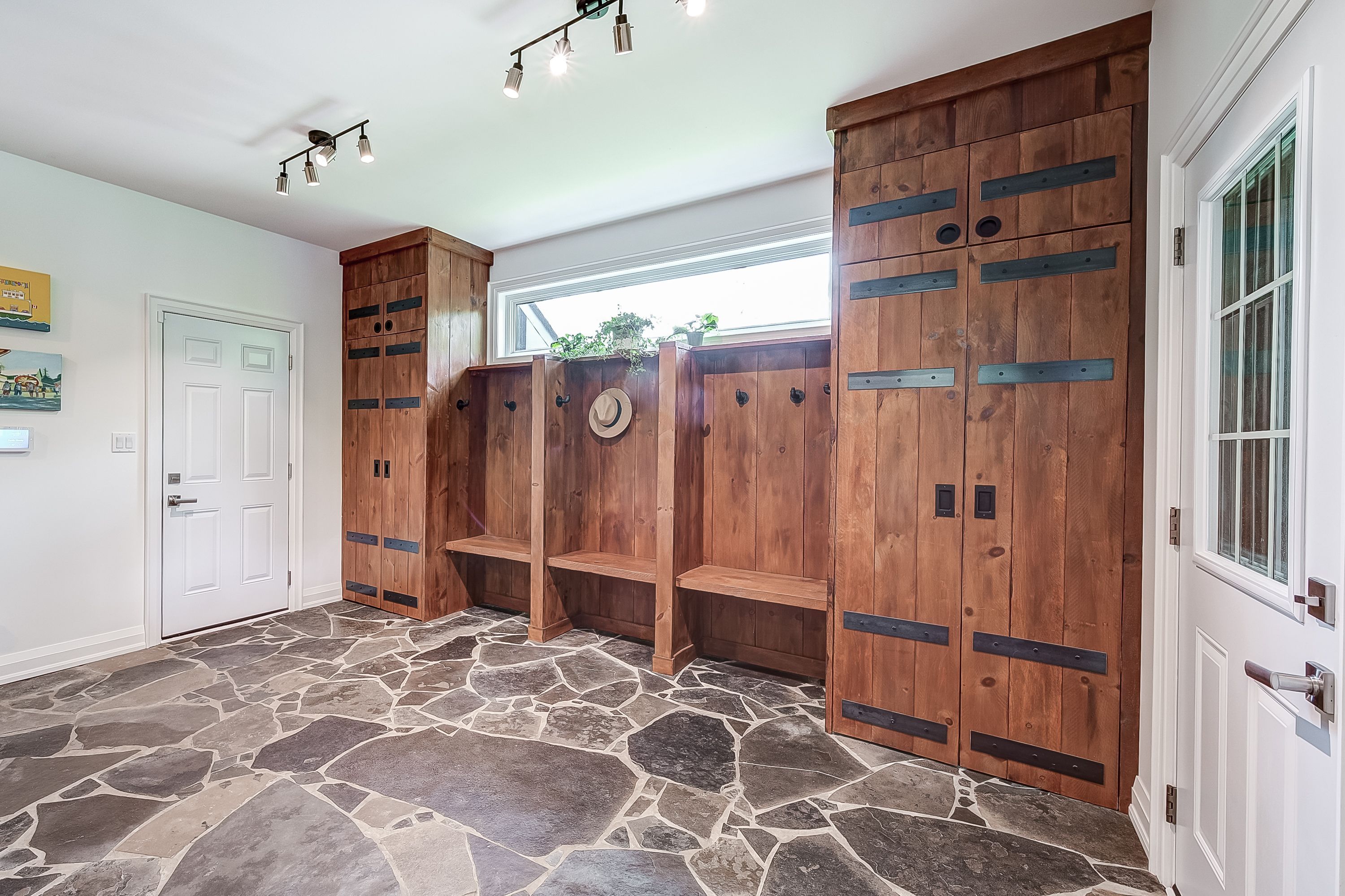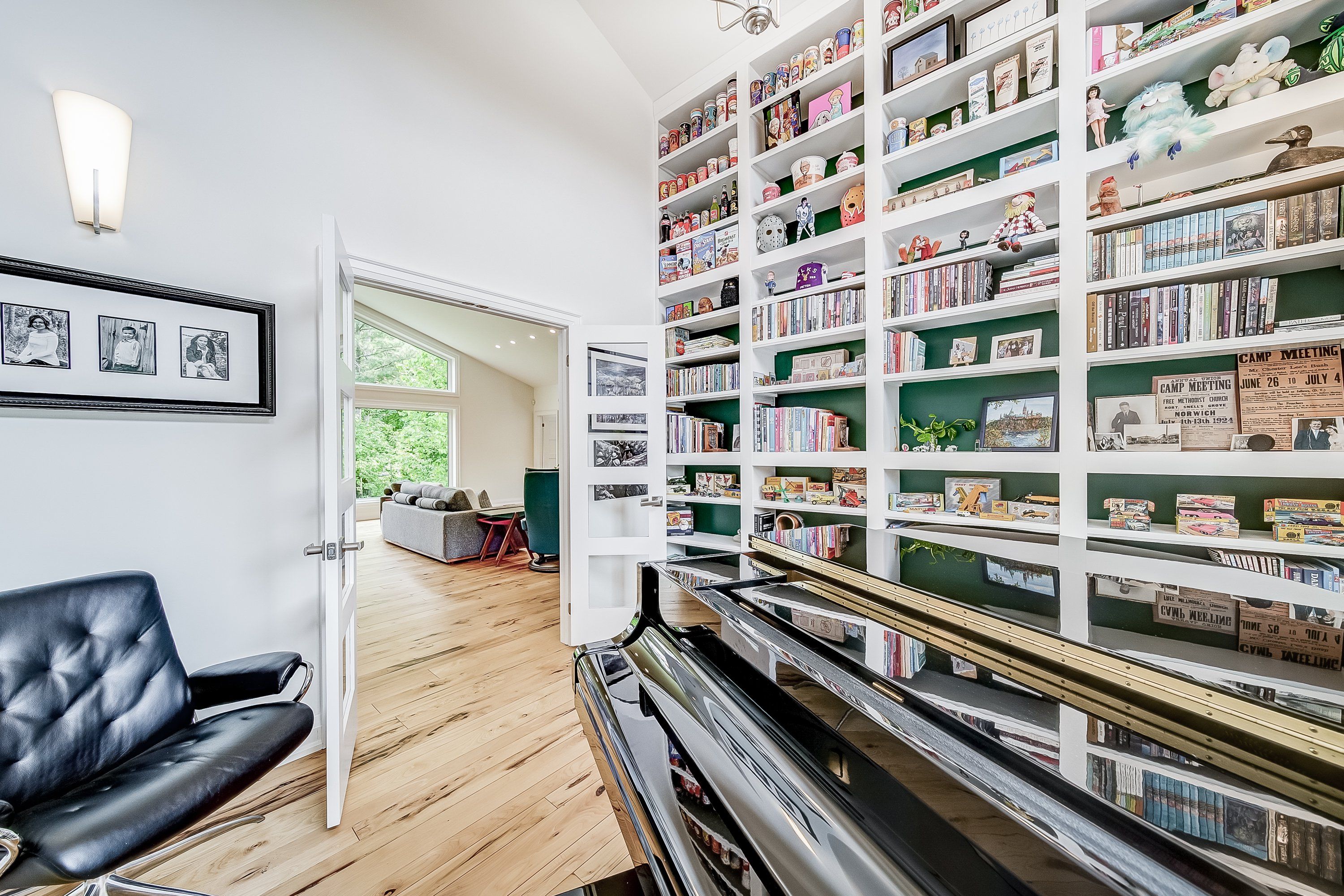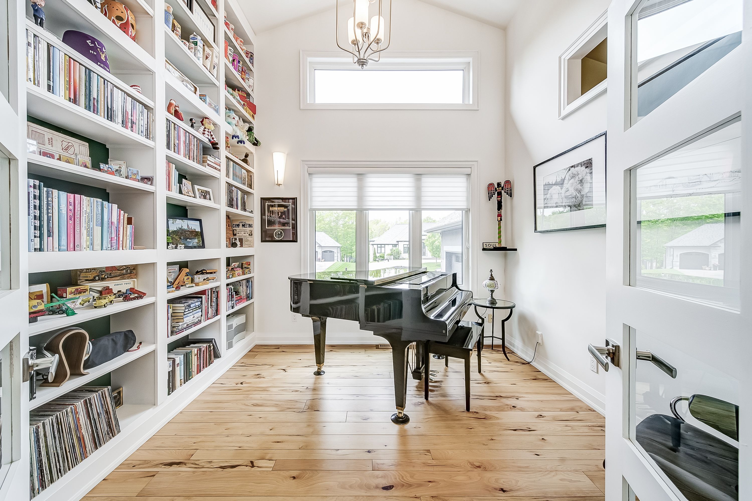 • Versatile main-level room for office, music, or playroom with custom shelving.