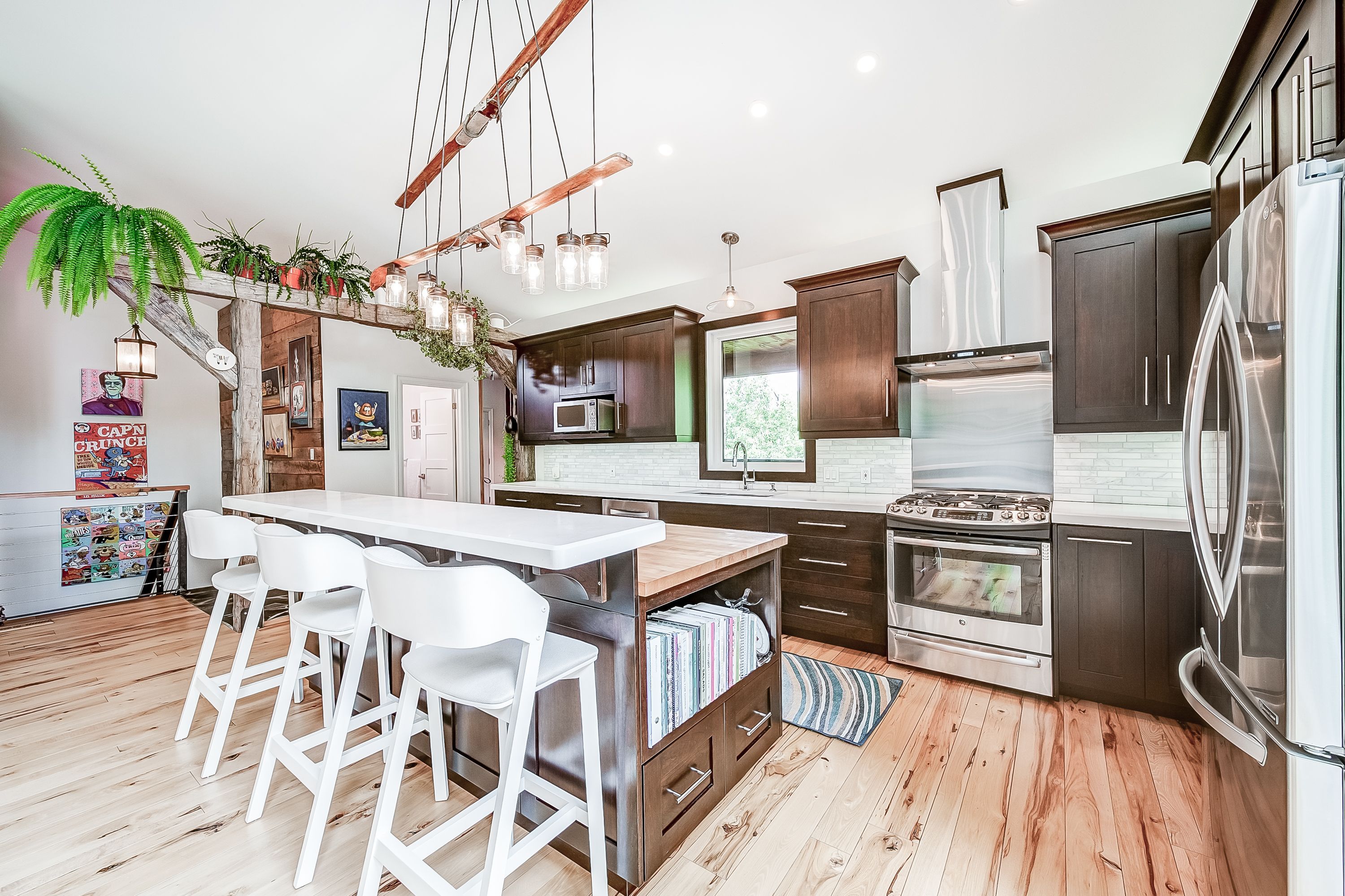 • Thoughtfully designed kitchen with custom cabinetry and spacious center island.