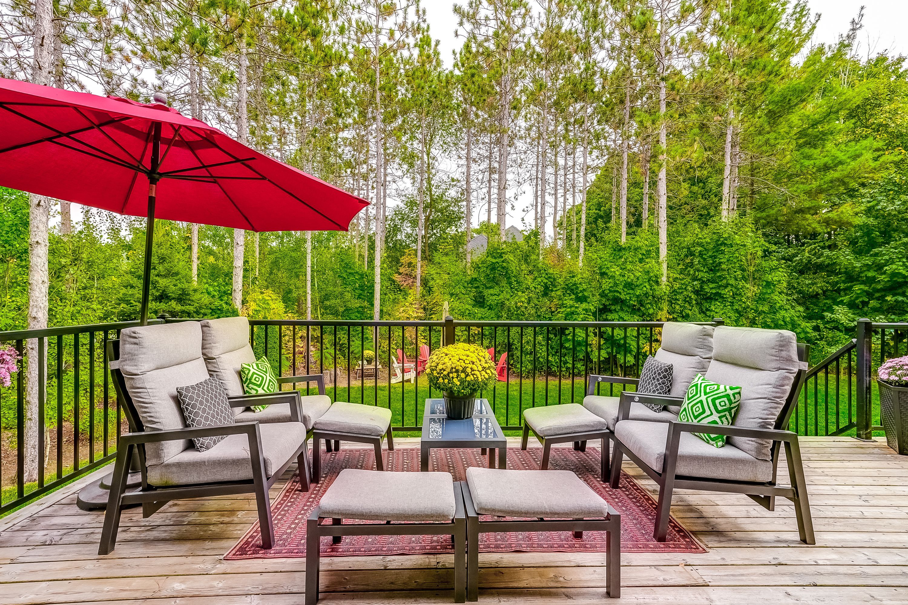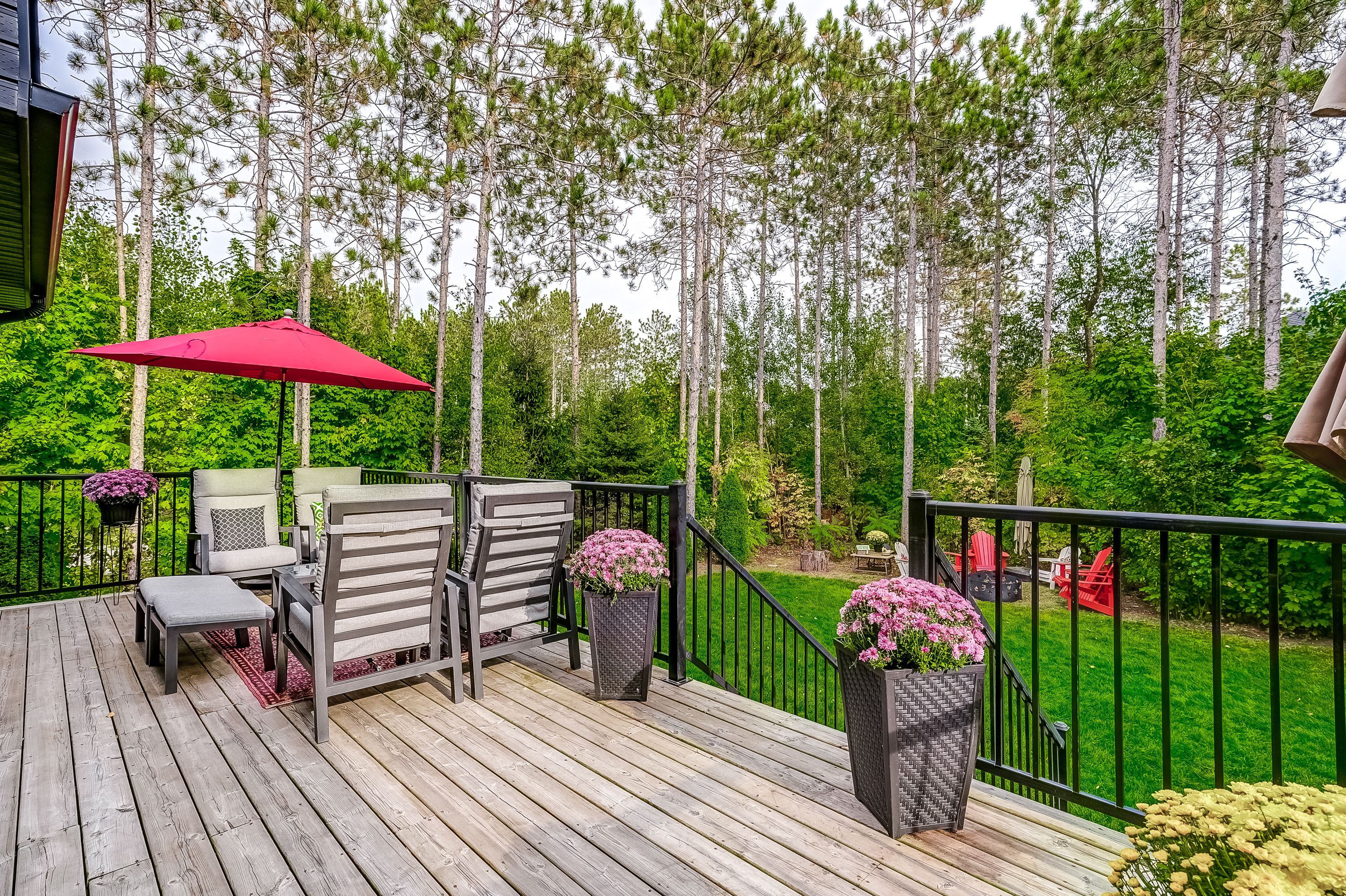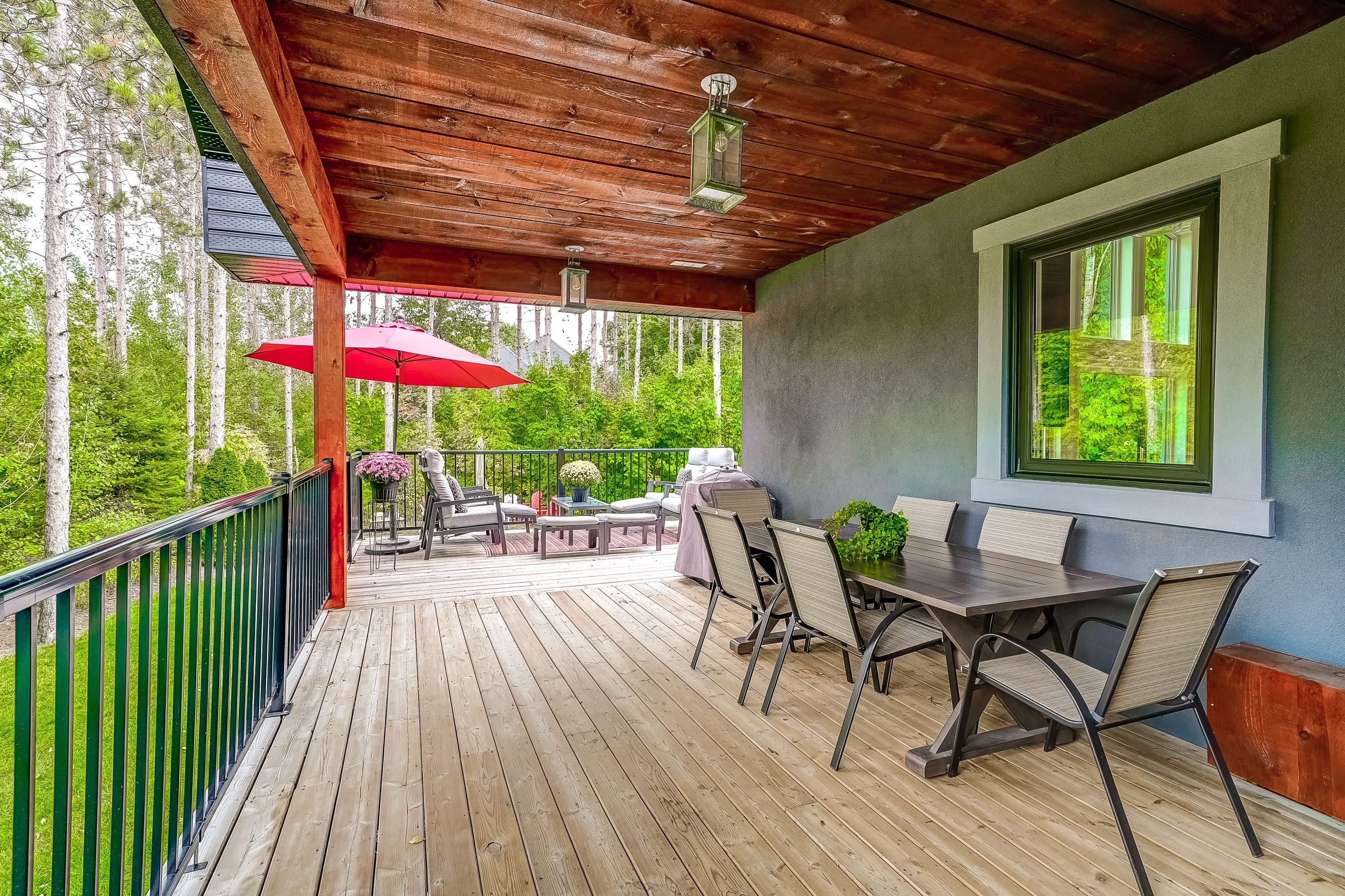 • Wraparound deck overlooking a private yard, perfect for outdoor enjoyment.