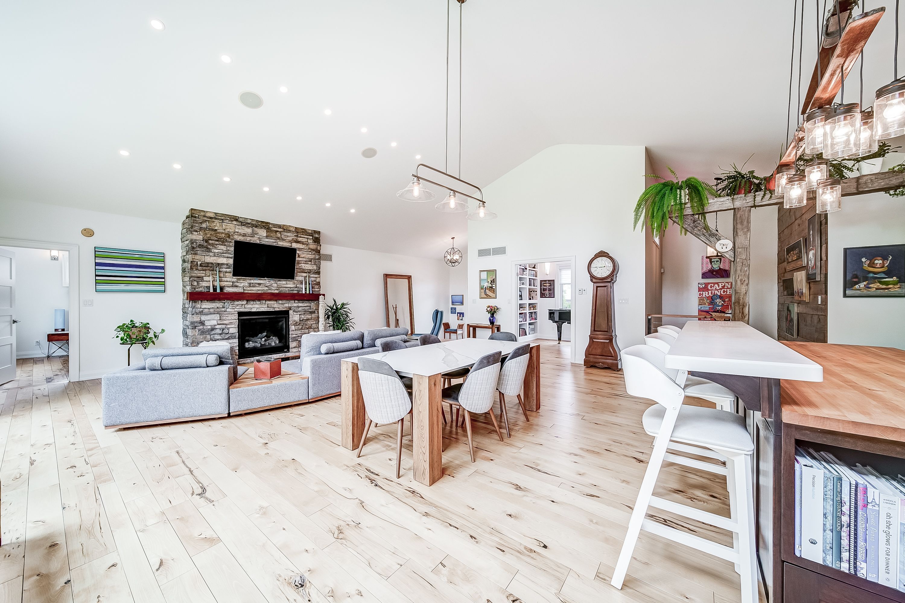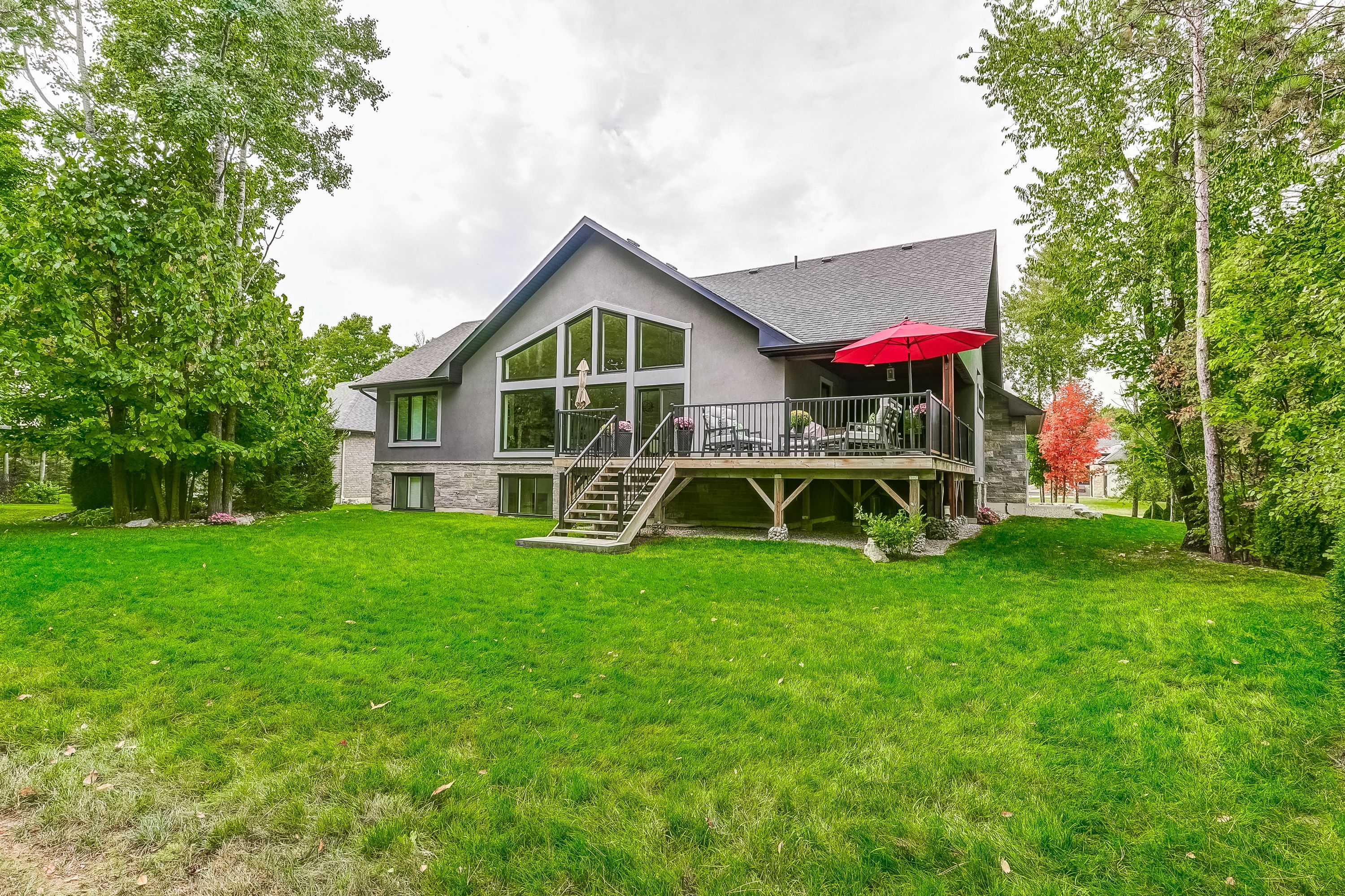 Custom-built bungalow showpiece set on a private half-acre lot in the desirable snow valley area of springwater, offering more than 3,600 sq ft of finished living space just minutes from the city of barrie. The open-concept main level features soaring cathedral ceilings, a wall of windows, and 3/4' hickory flooring throughout. The thoughtfully designed kitchen includes custom cherry cabinetry, a large centre island, and generous counter space-ideal for everyday living and entertaining. The primary bedroom offers a private 5-piece ensuite and walk-in closet. A versatile additional main-level room with custom built-in shelving provides flexible space for a home office, music room, or playroom. The bright lower level includes three bedrooms and a spacious open living area, all with extra-large windows creating an above-grade feel. An oversized two-car garage provides excellent storage and workspace. Enjoy a wraparound deck with covered and open sections, extending main-floor living outdoors, surrounded by a treed and private yard. Ideal for four-season recreation with snow valley ski resort nearby, walking trails steps from the door, simcoe county forest trails minutes away, a golf course two minutes away, and easy access to biking, hiking, snowshoeing, and cross-country skiing. A wonderful opportunity to enjoy peace of mind, comfort, and community in an inviting home!