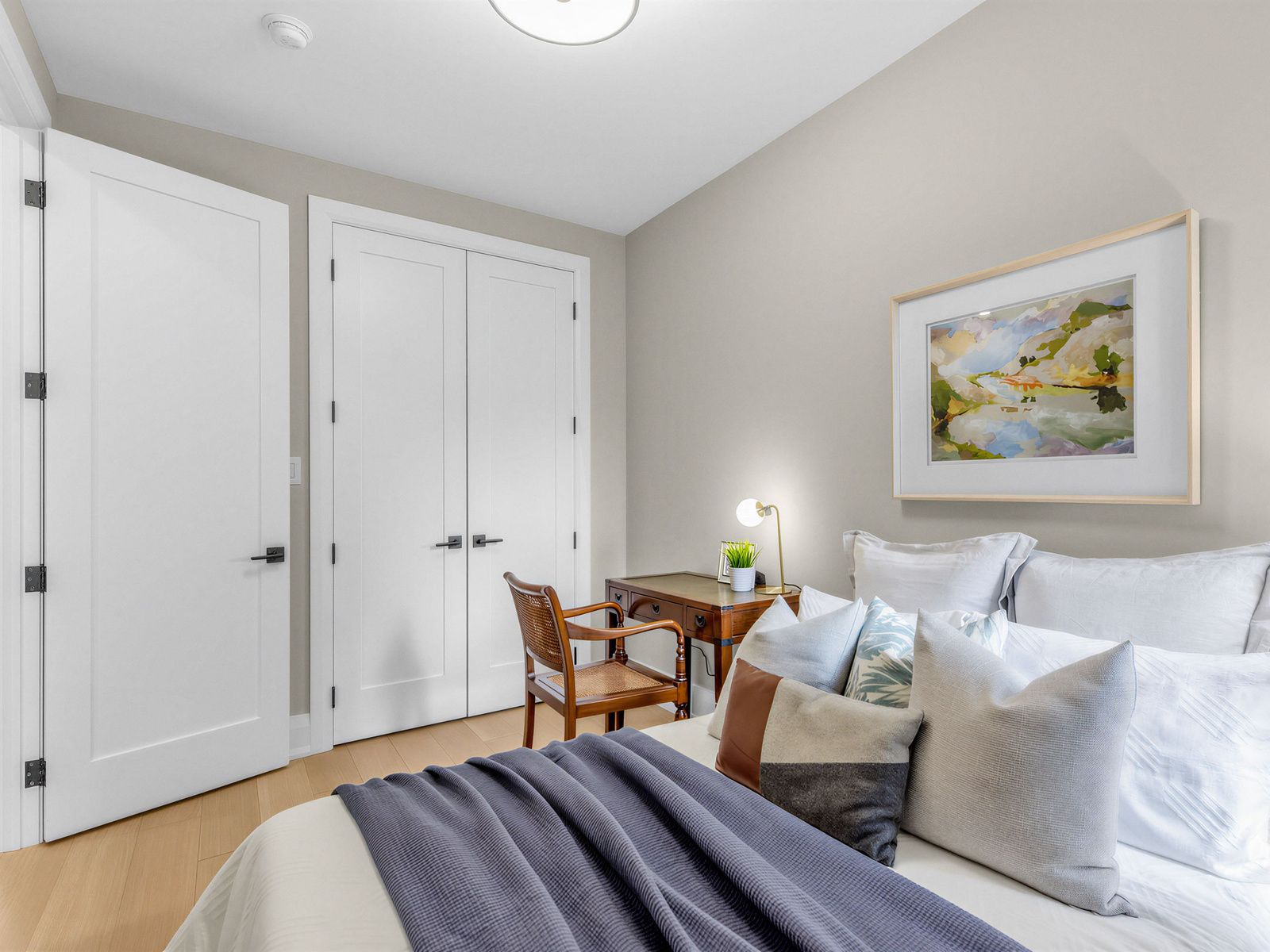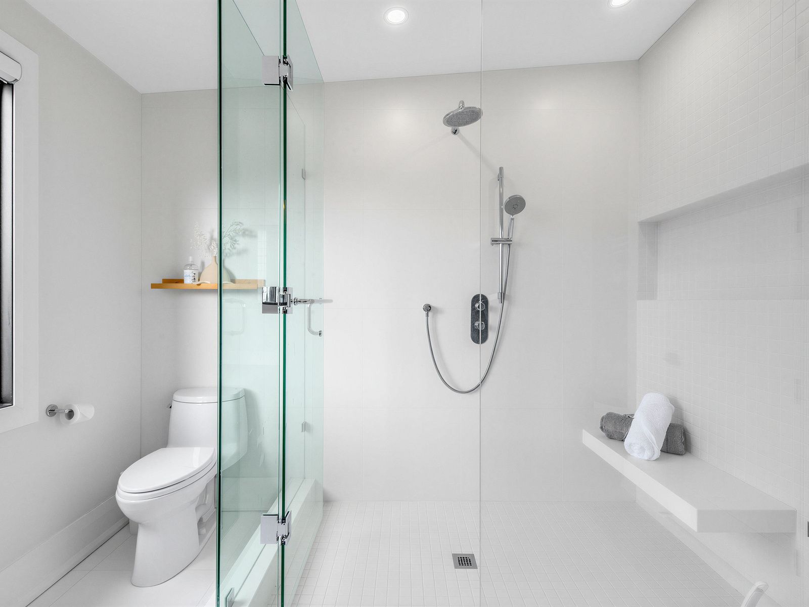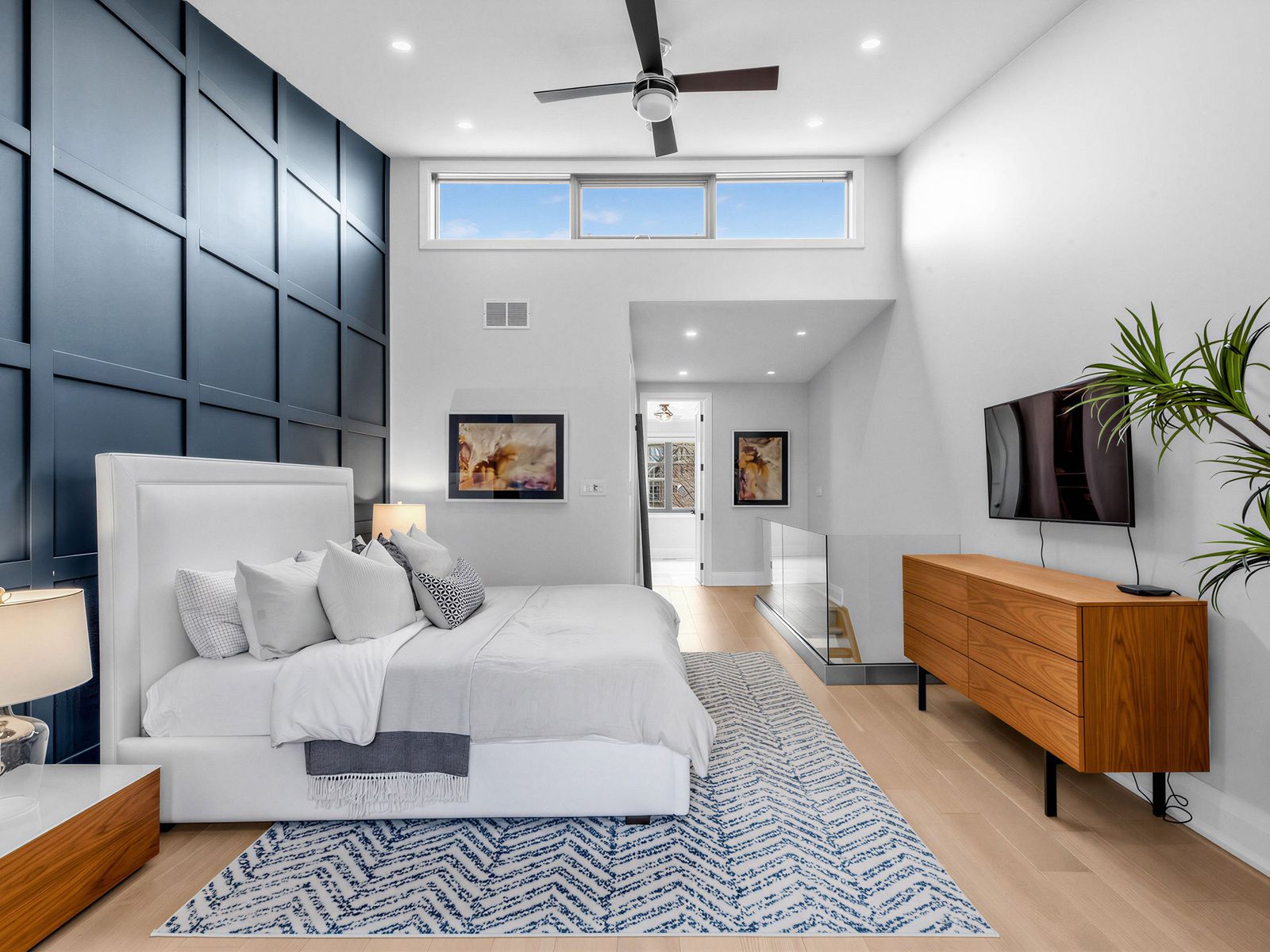 • Spacious bedrooms with 9' ceilings and custom closet organizers for ample storage.
