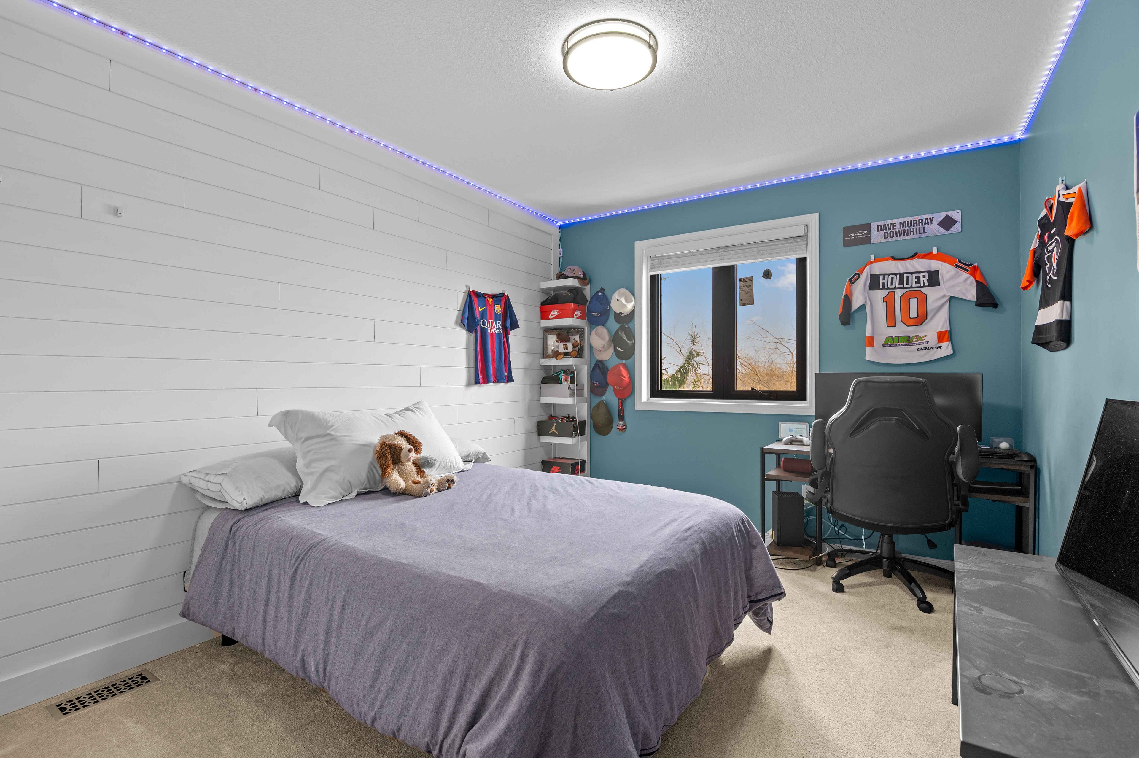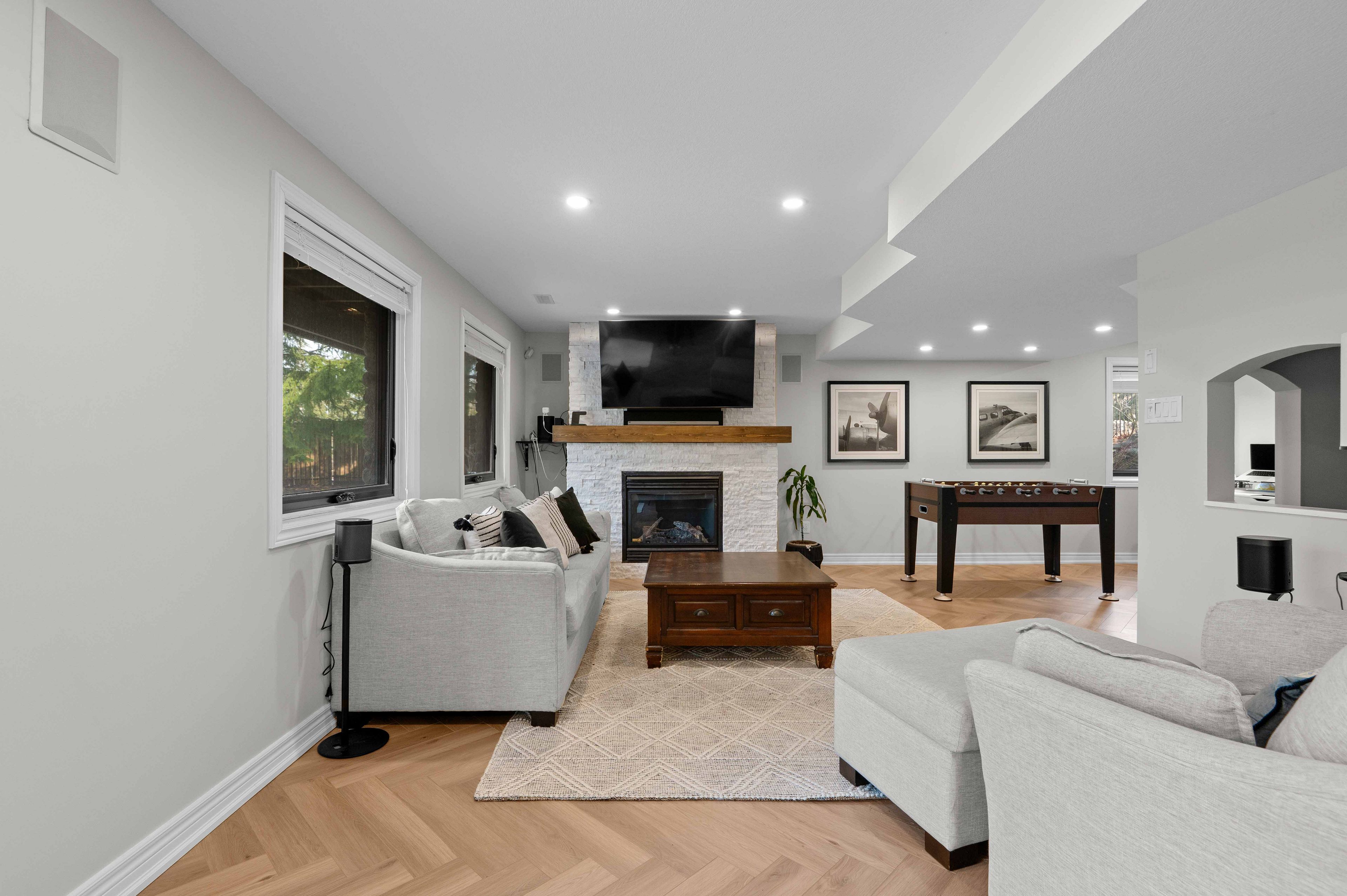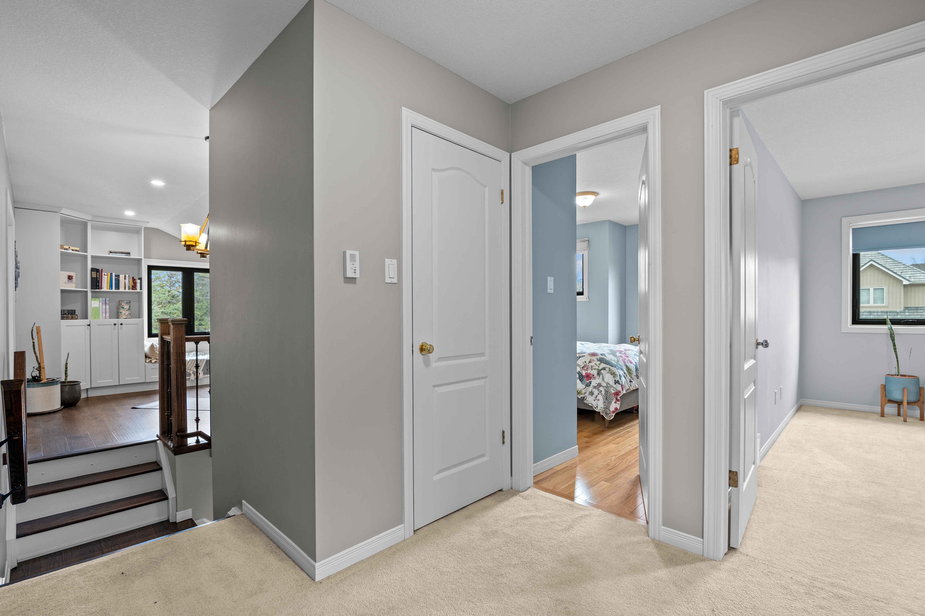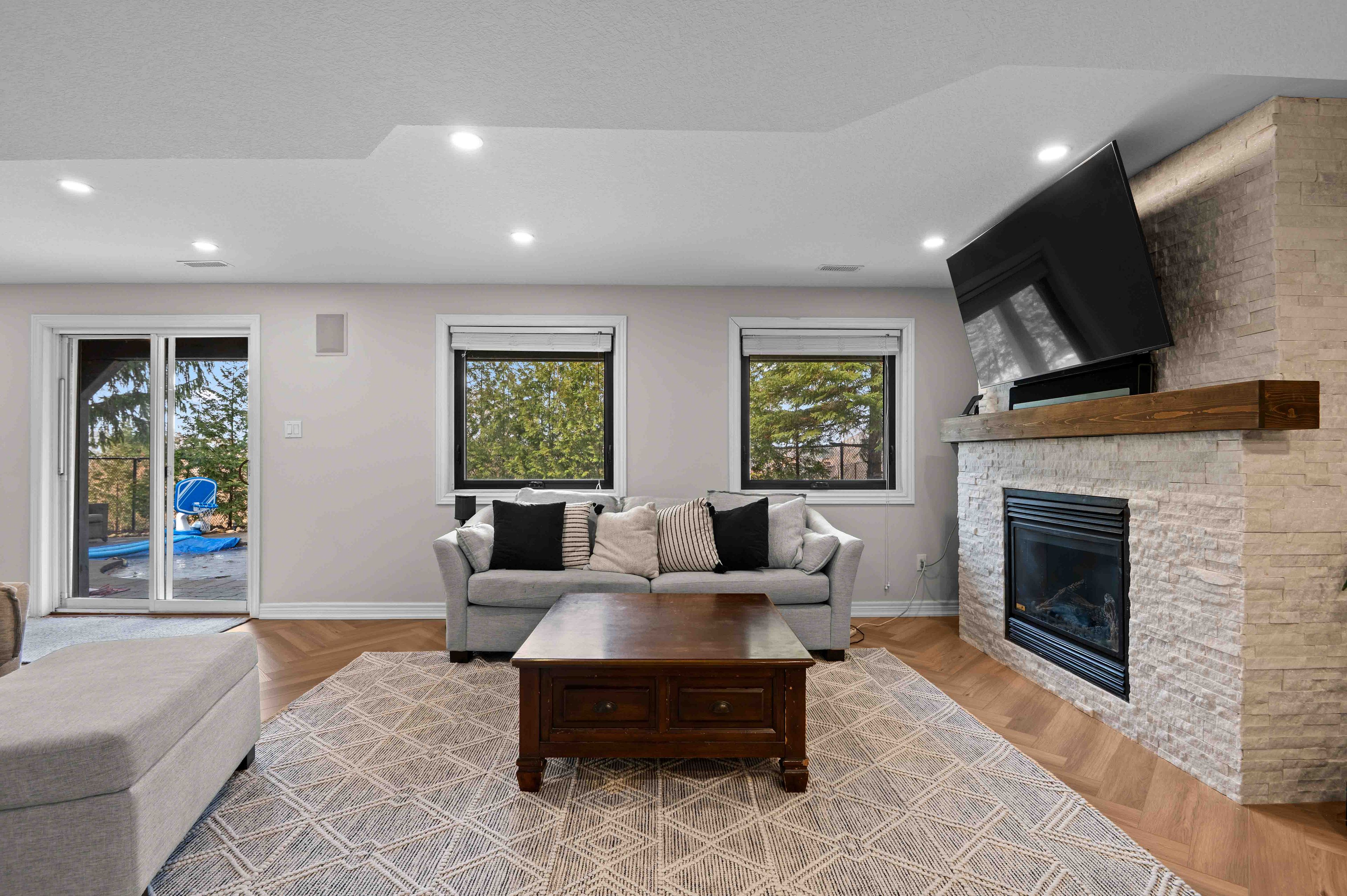 Some homes are built for everyday living. Others are built for when people come over. This one does both. Inside, the home reveals itself through thoughtful updates and a layout that balances everyday living with entertaining. The kitchen anchors the main floor with a massive island, tasteful finishes, and a walk-out to an elevated deck overlooking the backyard. Separate family and living rooms, both with fireplaces, provide space to gather or unwind, while the loft above adds an open feel and a versatile area for a home office, reading space, or additional lounge. Upstairs features four bedrooms, including a spacious primary suite with a beautifully updated ensuite and walk-in closet, creating a comfortable retreat. The loft just outside the primary adds another layer of flexibility. The finished walk-out basement adds over 1100 square feet of additional living space, complete with a full bathroom, bar area, and the third fireplace. An office with closet storage provides further flexibility. Step outside to a private backyard with a saltwater pool and patio, designed for both relaxing and hosting. Stone steps from the front lead down to the yard, while the covered front porch adds to the curb appeal. Set on a treed, fully fenced corner lot with no neighbours behind, this property offers privacy while still being close to schools, the hospital, island lake, and all amenities. Recent updates over the past five years include improvements to the main floor, primary ensuite, basement, windows, air conditioning, pool liner, and more. With over 2100 square feet above grade, a three-car garage, and a layout that works just as well for quiet nights as it does for a full house, this home brings it all together.