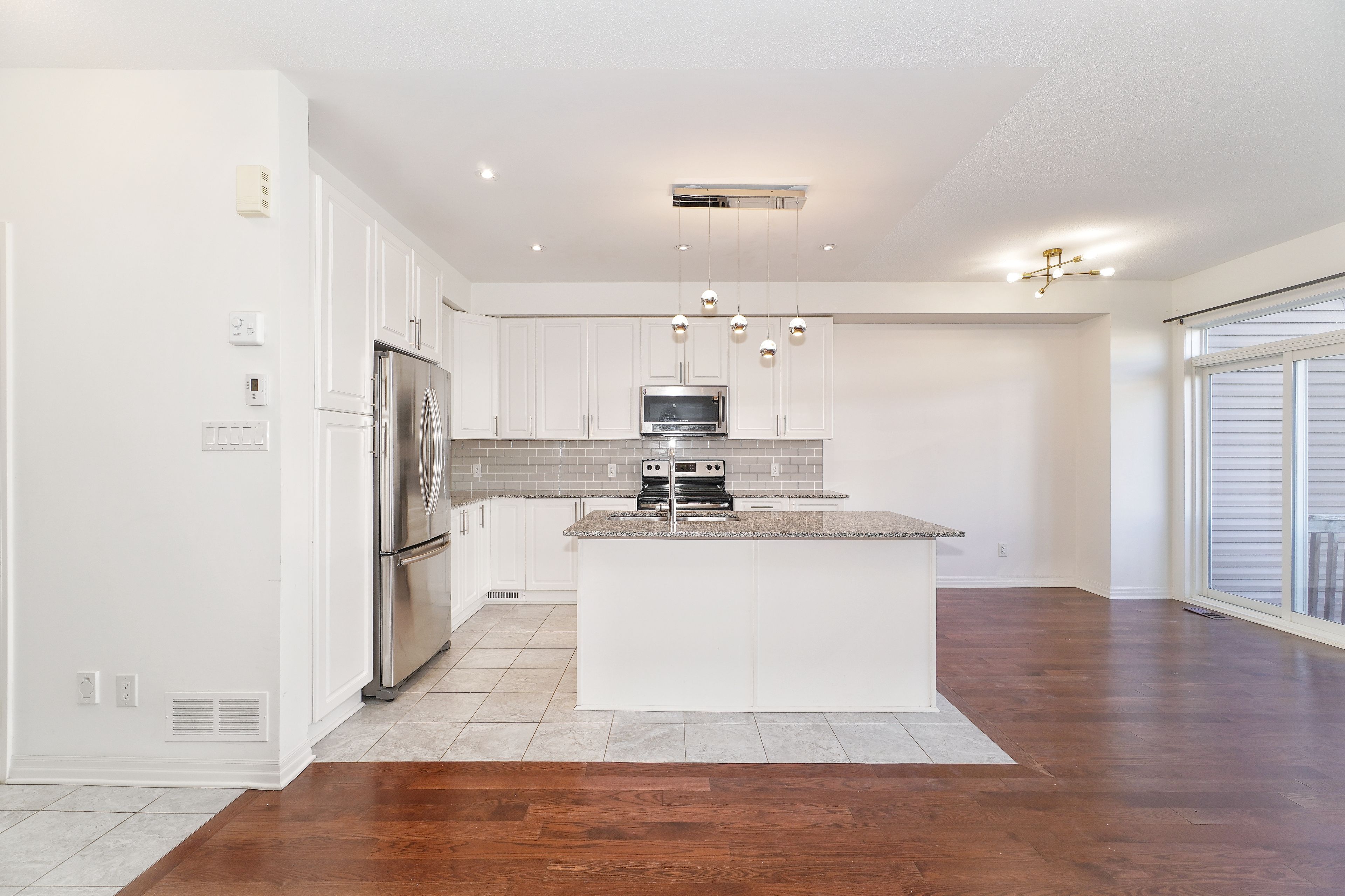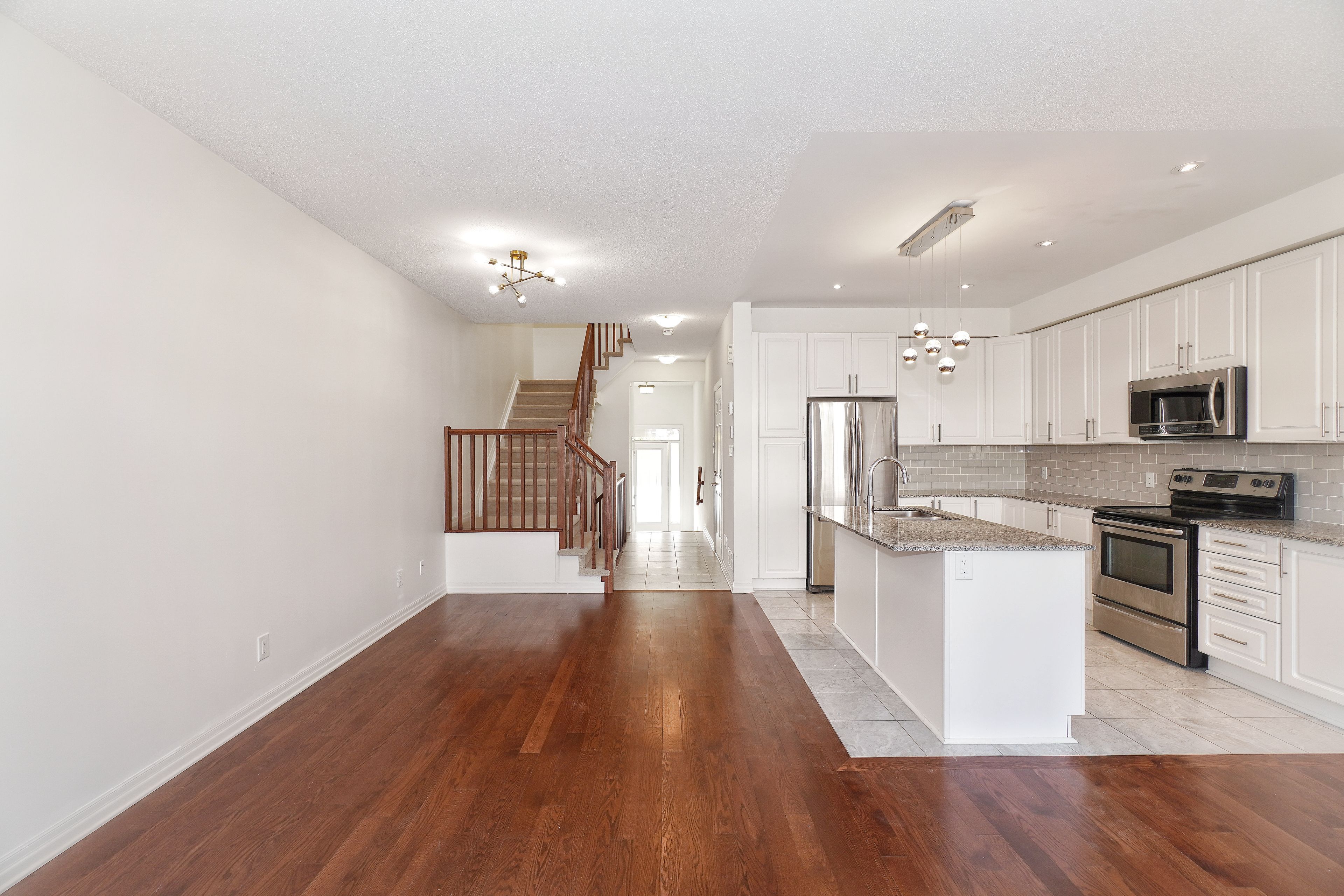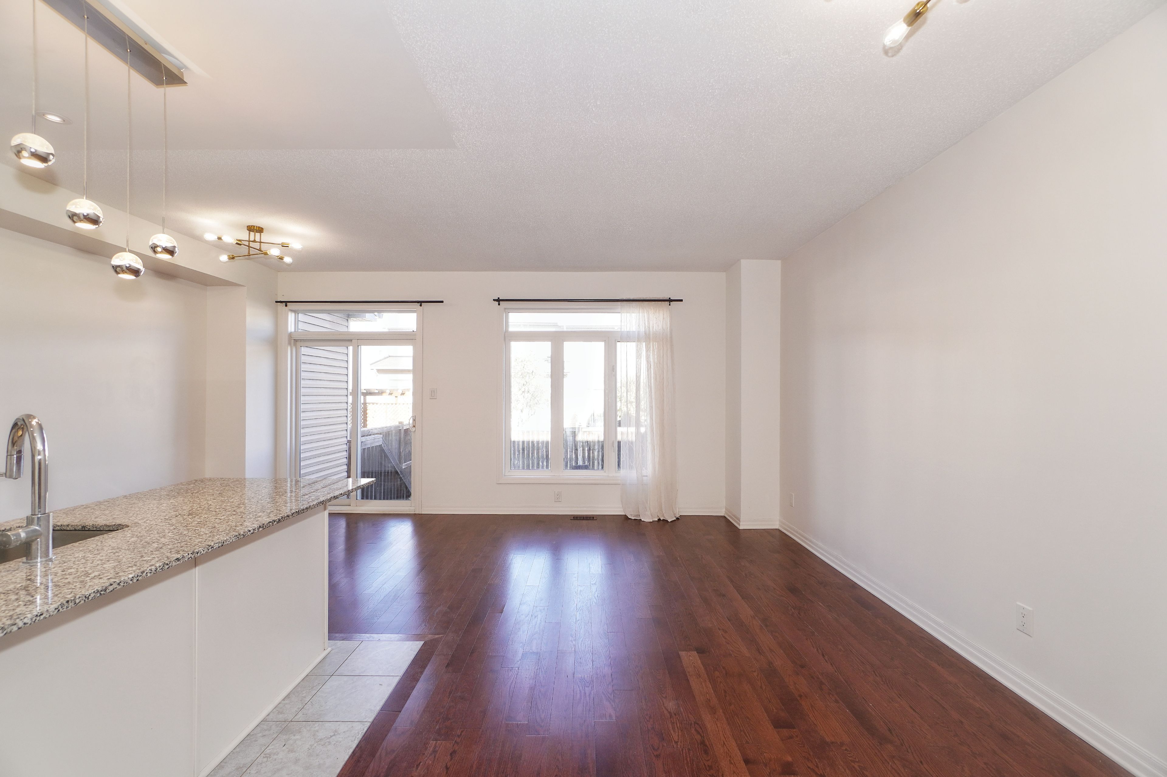 Sophisticated and quality-built townhome ideally located in kanata south desirable emerald meadows community. Located just a 5-minute walk from shopping centre, with walmart, bank and lcbo. And a quick 3-minute drive to superstore and metro. This home is loaded with upgrades and move-in-ready. Offers hardwood floors, pot lights throughout, modern light fixtures, creating a sleek and inviting atmosphere. Features 3 bedrooms, 3 bathrooms and a fully finished lower level, blending functionality with comfort and style. Beginning with the charming exterior includes a covered front porch that leads into a welcoming foyer. The open-concept living and dining area comes with wall of large windows, making the space bright and airy, perfect for both daily living and entertainment. The modern kitchen is equipped with granite countertops, stainless steel appliances, upgraded cabinetry, a large center island with breakfast bar. Offering both practicality and a warm, family-friendly feel. Upper level has three generously sized bedrooms. The spacious primary suite includes a massive walk-in closet and a private ensuite. The fully finished lower level includes a laundry area and provides plenty of room for storage, accommodating growing families or busy lifestyles. Rough-in ready for future bath. Fully fenced in backyard to ensure privacy. Short walk from multiple parks, trans-canada trail, public transit and with quick access to shopping and all daily amenities. Also within the catchment of top-ranking schools, including all saints hs and a. Y. Jackson ss. An exceptional opportunity in one of kanatas most desirable neighborhoods, perfect for professionals, young families, or first-time buyers seeking style, comfort, and convenience.