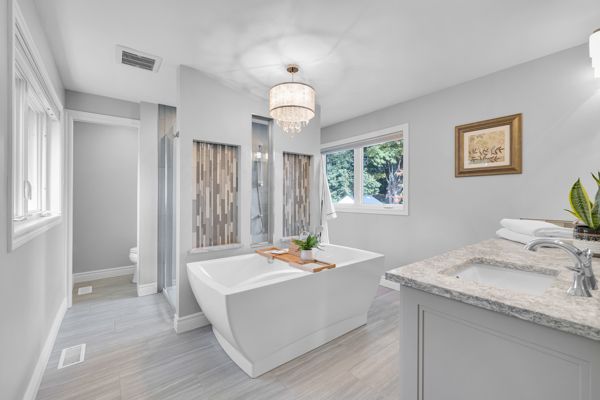 Subtype DetachedIndoor Features Auto Garage Door Remote, Carpet Free, Central Vacuum, In-Law Capability, Guest Accommodations, Primary Bedroom - Main Floor, Water Heater OwnedOutdoor Features Deck, Landscaped, PrivacyOwnership FreeholdBasement Finished, Separate Entrance, FullFoundation ConcreteHeating / Cooling Forced AirHeating Fuel GasSewer Sewer