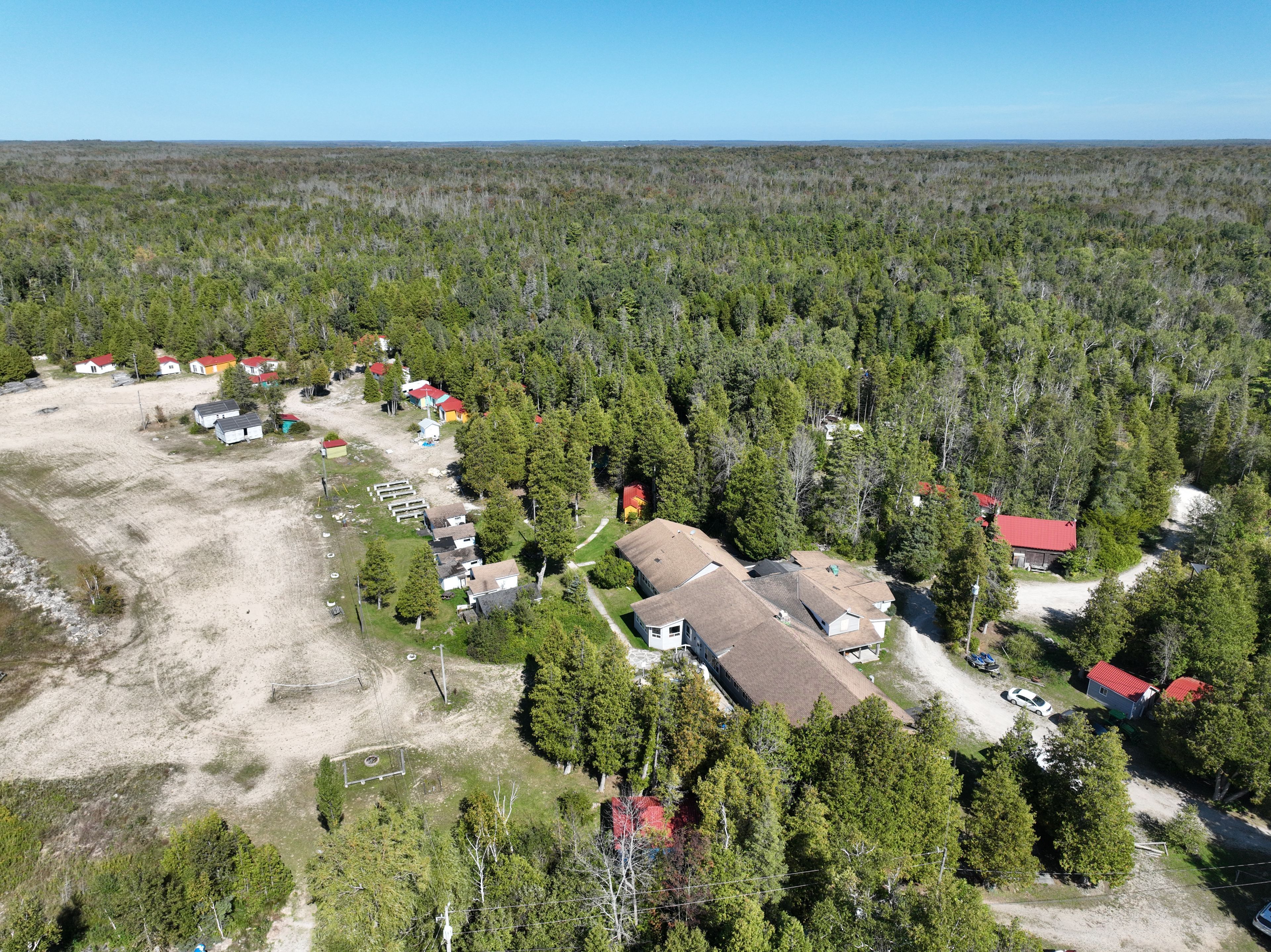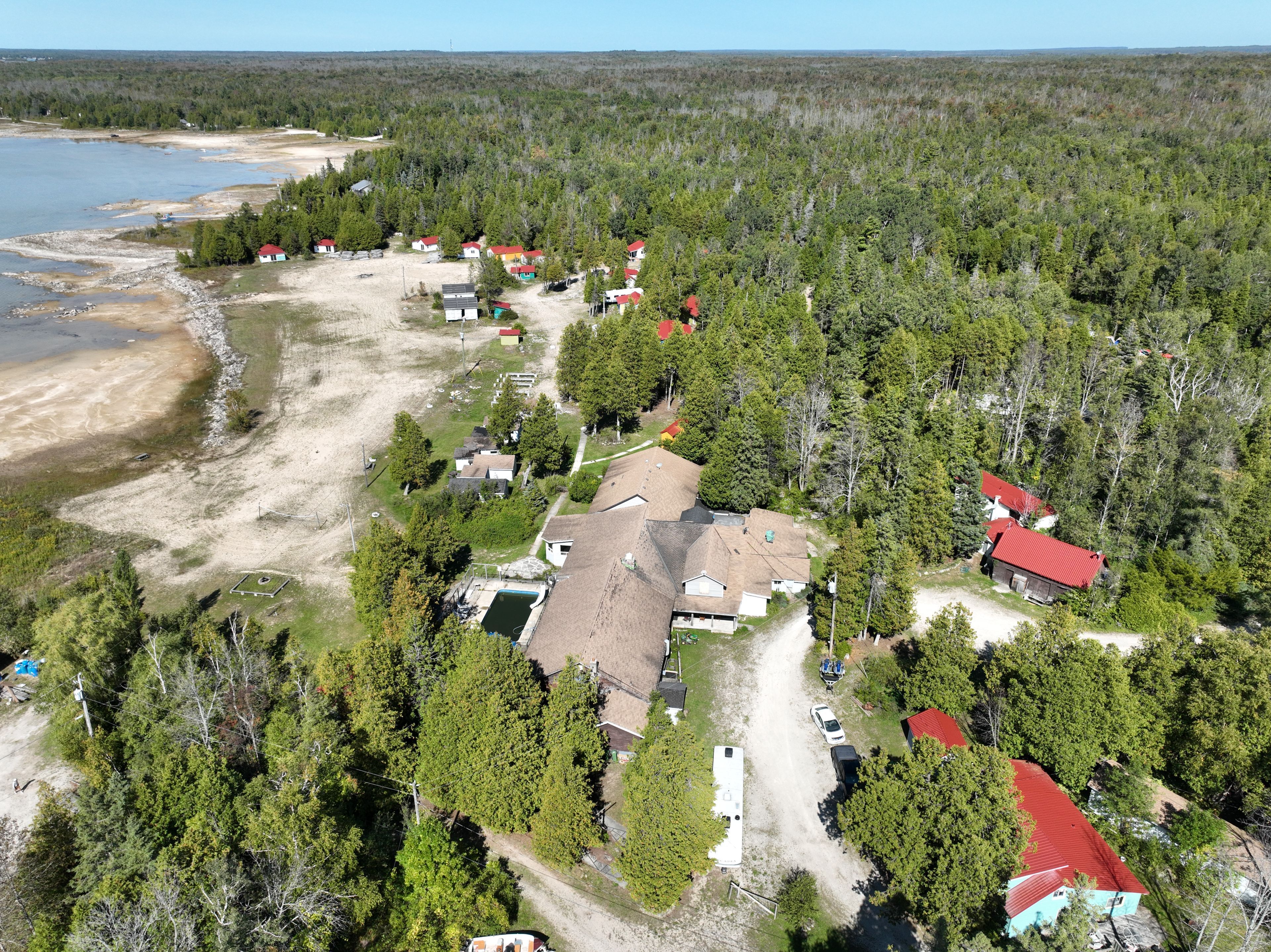 Set against the shimmering shoreline of lake huron, lavender lake resort offers an unparalleled opportunity. Imagine transforming this 31-cabin estate (22 newly renovated) - each residence individually styled. At its core, a grand main lodge - with over 9500 square footage - provides the architectural scale to become a hub of refined leisure. With foundations for a ballroom, children's lounge, commercial kitchen, auditorium with stage, and an owners residence, it's ready to be reimagined into a world-class hospitality centre. The private beach is a crown jewel, setting the stage for lakeside dining, exclusive events, and curated waterfront recreation. Existing infrastructure for mini golf, a pool, and a tennis court offers the canvas for a suite of high-end amenities - wellness pavilions, spa facilities, or even a racquet club - all tailored to discerning lifestyles. For forward-thinking investors, approved plans for a 16-unit luxury lodge and 29 subdivision separate lots elevate this property into a legacy project, with the potential to combine exclusive accommodations, private ownership opportunities, and full-service member amenities. Minutes from sauble beach, wiarton, and oliphant, the location is both prestigious and accessible for affluent clientele. Picture an environment where privacy, recreation, and sophistication meet - whether envisioned as a private members club, boutique luxury retreat, or an exclusive family resort. This is more than a resort - it's a rare chance to create a private lake huron enclave that blends exclusivity, scale, and natural beauty. Contact us today for a confidential discussion and explore how lavender lake can become the next destination for luxury living and private leisure.