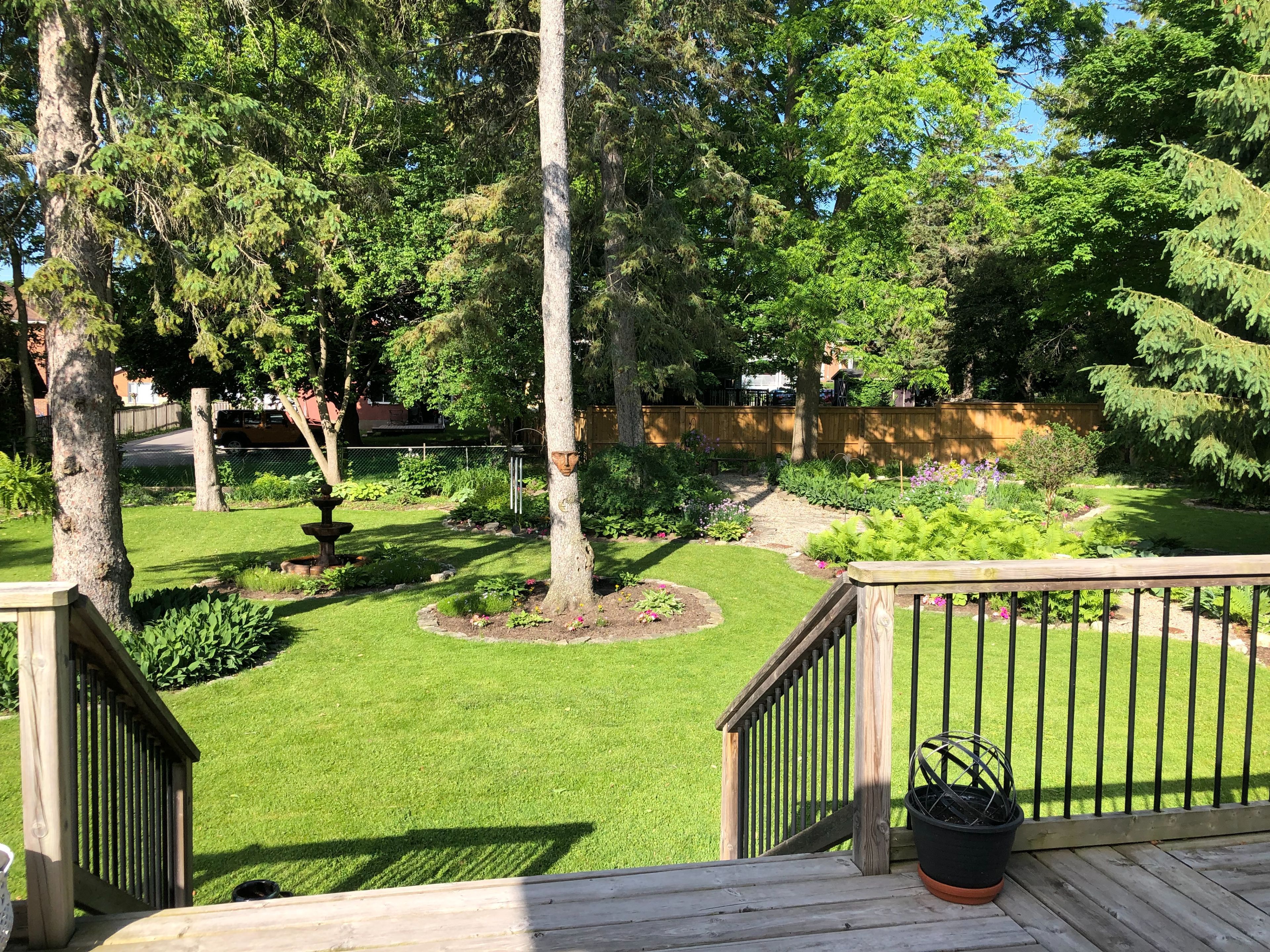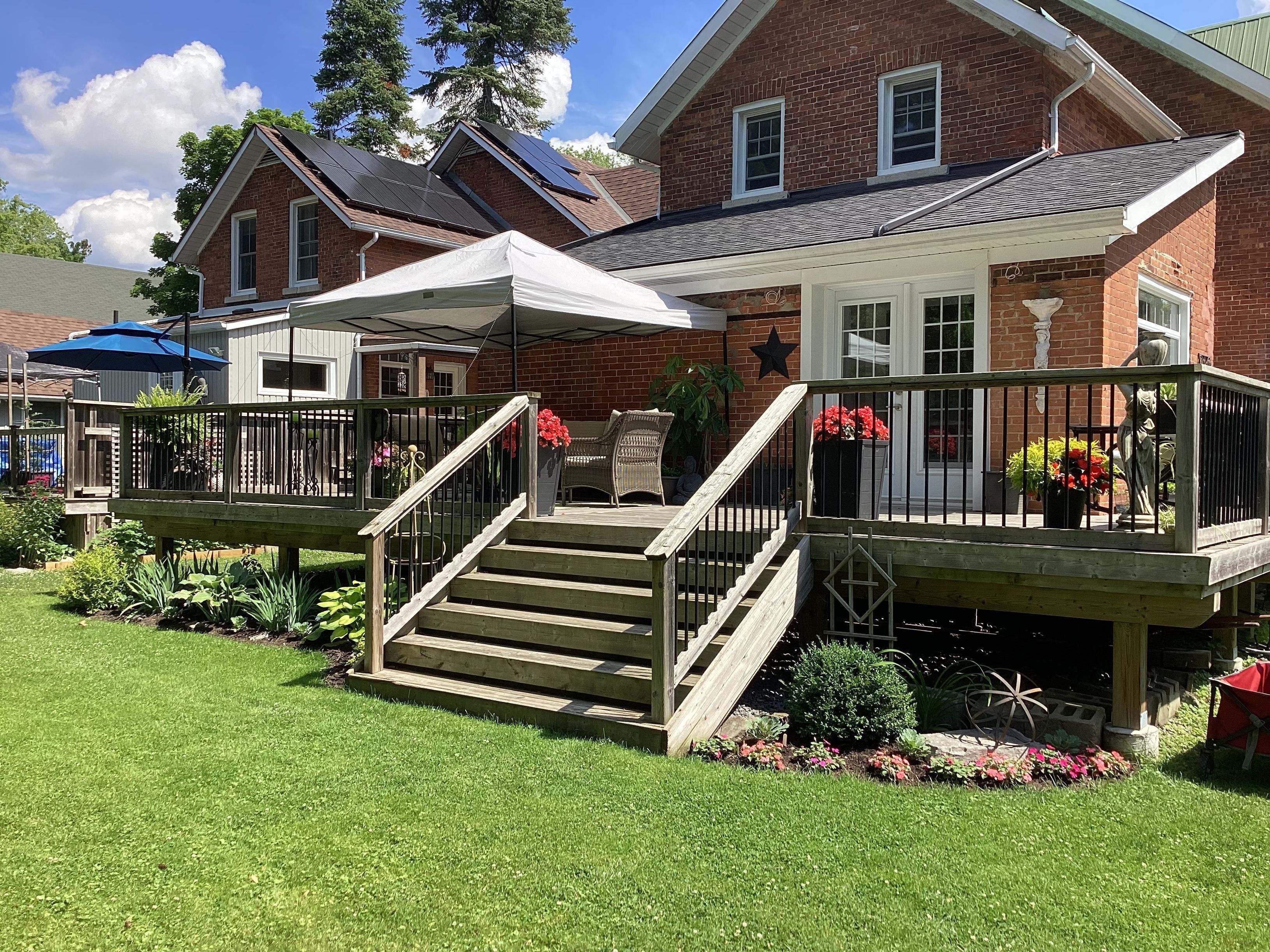 • Private backyard oasis with a large wrap-around deck and landscaped yard.