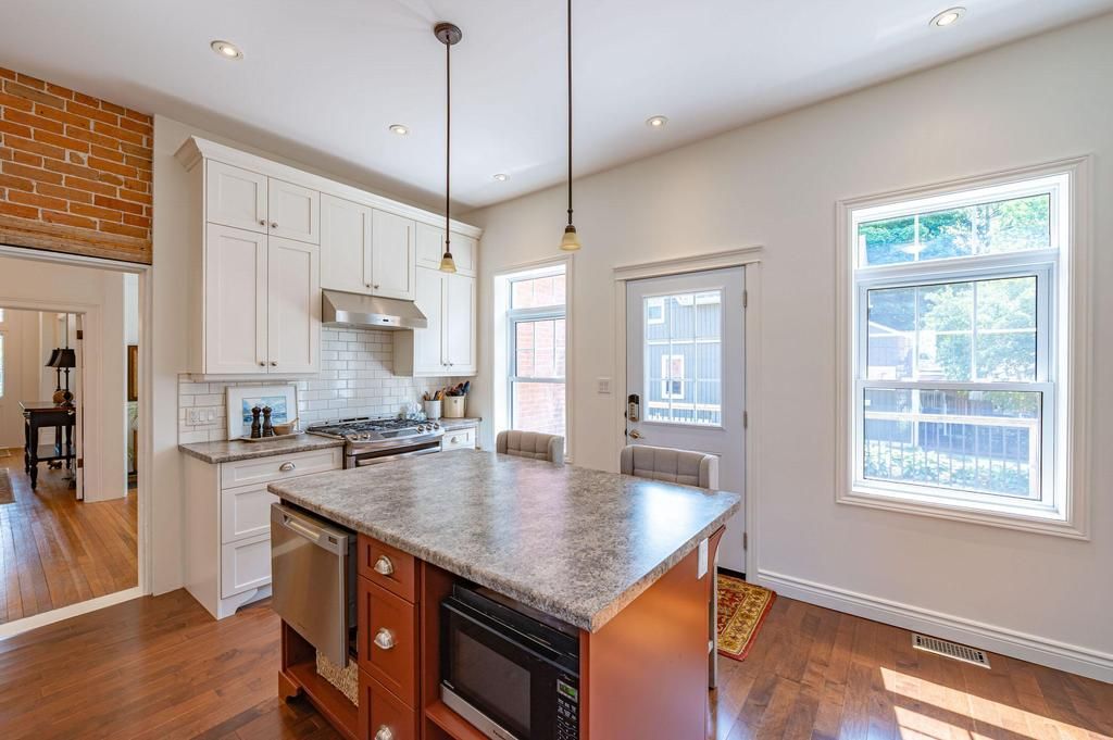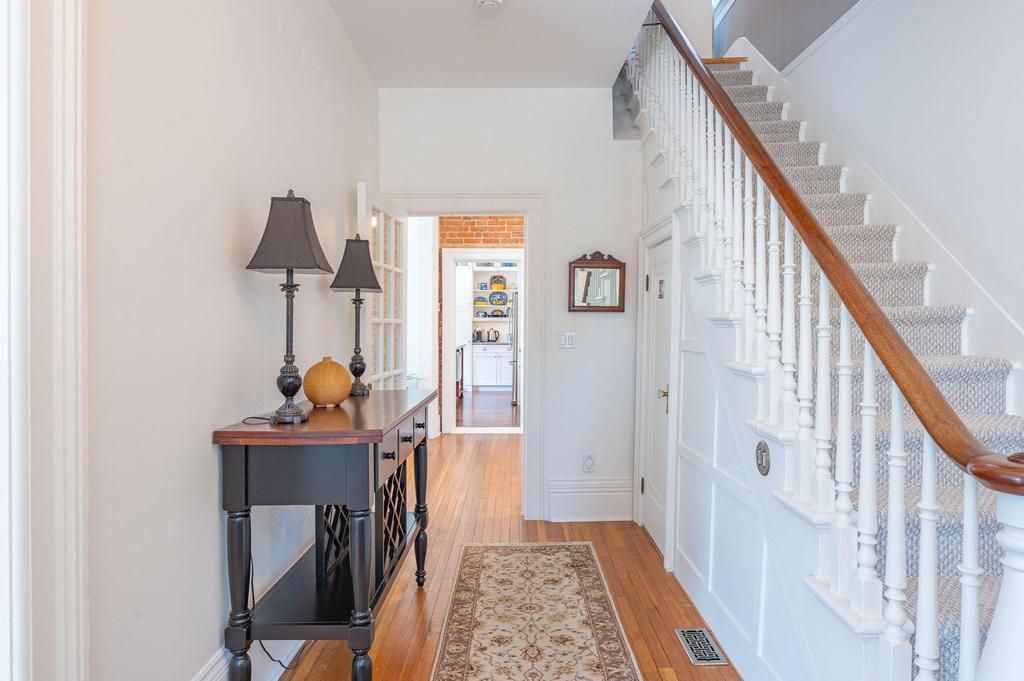 Unique, one-of-a-kind century home, "the solomon wright house," located in the quiet east side residential area of the picturesque town of greater napanee. Pride of ownership is evident throughout this character-filled property, a timeless beauty dating back to the mid-1800s. As you step inside, you'll be captivated by the home's incredible character, charm, and elegance. An alluring classic brick century home, boasting four bedrooms and 2. 5 baths, exudes timeless appeal. The grandeur and historic feel of this home will be evident from the moment you arrive at the property. As you approach, the beautifully maintained front yard and inviting entryway set the tone for this welcoming home. Step inside to discover a bright and spacious living room, filled with natural light that enhances its warm and cozy ambiance. Beautifully designed kitchen and bathrooms both sides, hardwood flooring throughout the living areas and bedrooms. The heart of the home is the chef's kitchen equipped with modern appliances, ample cabinetry, and generous counter space perfect for cooking, dining, and entertaining. The open-concept living area boasts soaring ceilings, creating an airy, welcoming space perfect for gatherings. You cannot help but notice the many lovingly restored original features in every room. The second story offers hardwood flooring throughout, 4 good-sized bedrooms and an updated 4-pc bathroom. The 2nd-floor laundry room spells convenience. Step outside to your private backyard oasis featuring a huge wrap-around deck, gorgeously landscaped, and a sprawling yard ideal for peaceful and relaxing gardening, evenings filled with entertaining, or simply enjoying the tranquil surroundings. Newer windows & doors (2016 and 2020), steel roof, clean limestone basement and professionally landscaped gardens make this home a true historic treasure. All within walking distance of the napanee river waterfall trail, schools, parks, vibrant downtown shopping, and dining.