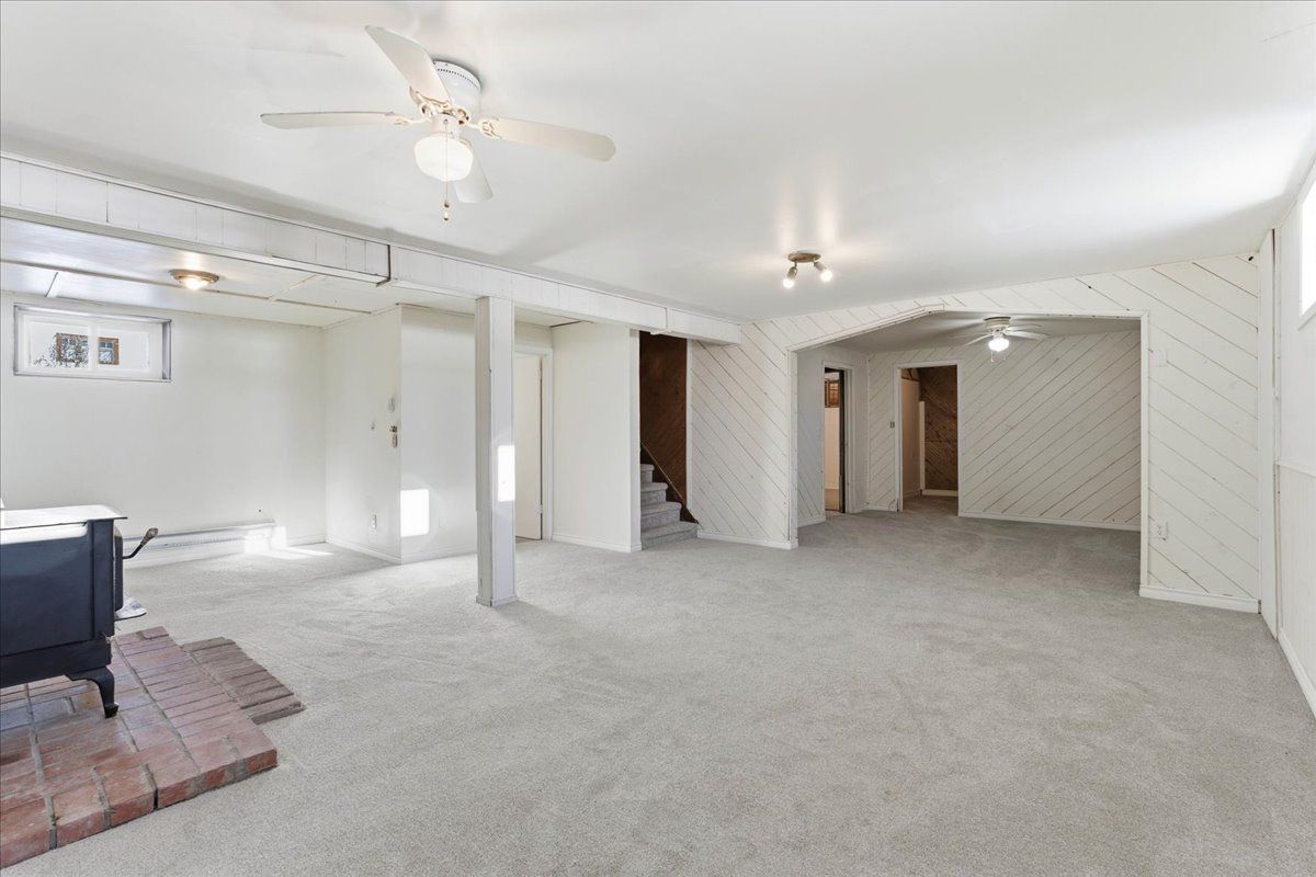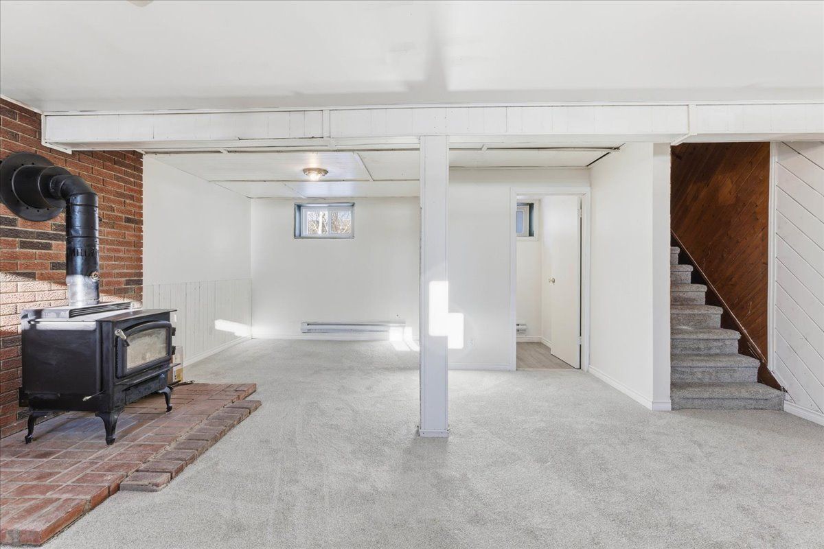 • Spacious basement perfect for cozy evenings by the wood stove.