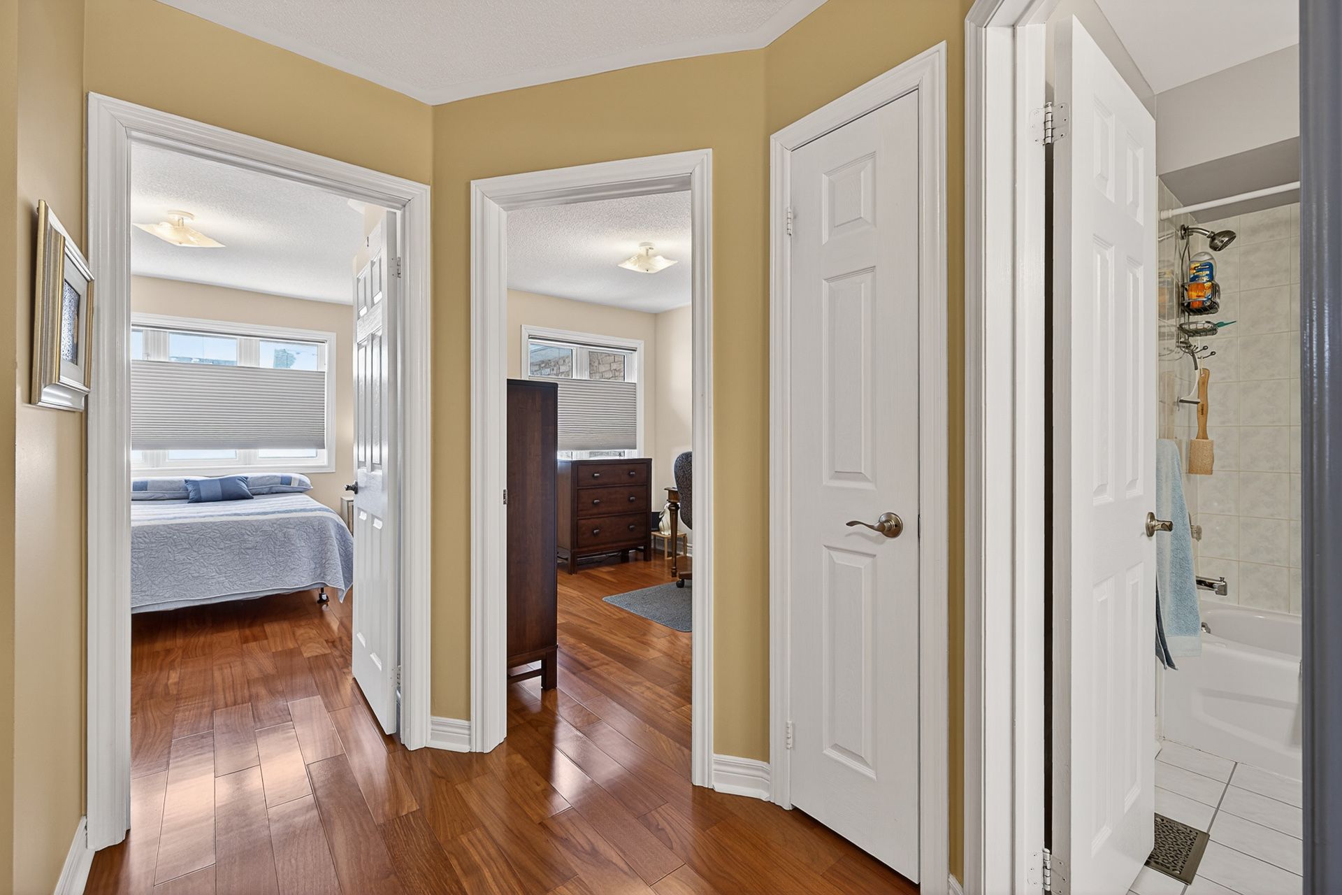 This stylish, meticulously maintained and upgraded 3bdrm freehold townhome with 9' ceiling, fenced backyard and back garage with additional parking space is conveniently located in the vibrant and desirable cornell community. It is within steps to numerous amenities including hospital, daycare, community centre and public transportation. The main floor features soaring 9' ceilings with an open concept dining and living room with hardwood flooring and a large bay window offering multiple windows. The sparkling kitchen with breakfast bar and breakfast area overlooks the family room and offers a convenient walk-out to the fenced groomed backyard with patio and walkway to the garage and extra parking space. The upper level presents a primary bedroom with luxuriously renovated 3-piece ensuite with fabulous large shower, walk-in closet, hardwood flooring and a large bay window offering multiple windows. The two additional bedrooms share a full 4-piece bath and offer hardwood floors, closets and large picture windows. The unspoiled basement with a dedicated laundry area offers a canvas for many possibilities such as a recreation room, home gym, bedroom, bath and/or office. This spotless and exceptionally maintained home is perfectly situated in a desirable and sought after community. It is conveniently just moments away from the cornell community centre, markham stouffville hospital, daycare and scenic trails along the rouge river. Commuters will love the unparalleled convenience with easy access to highway 407, highway 7, and nearby go transit for seamless travel across the gta