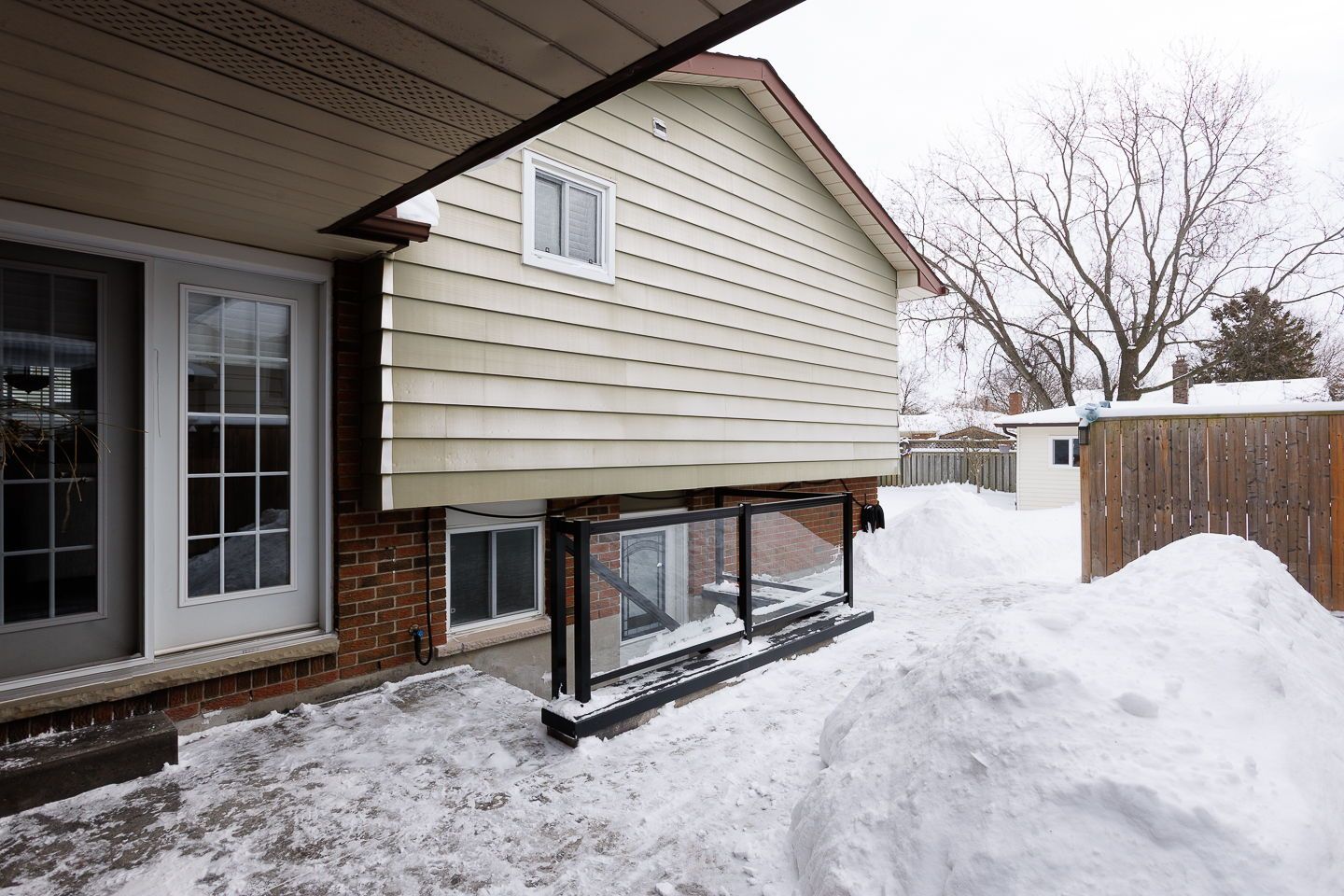 This very comfortable family home is located on a quiet residential crescent in white oaks offering many convieniences nearby. Large 4 level backsplit offers an ideal in-law or secondary suite if desired with separate entrance. Stamped concrete driveway and large rear patio. Hardwood floors throughout the main and second levels. Patio door with access to the patio from the dining room. Pocket door, into the kitchen with premium cabinetry. Main bath features a jetted tub. The third level has the fourth bedroom, family room with fireplace and a full 3 piece bathroom. There is also a second kitchen in the lower level with a finished entertainment room. Full covered front porch to enjoy the summers!