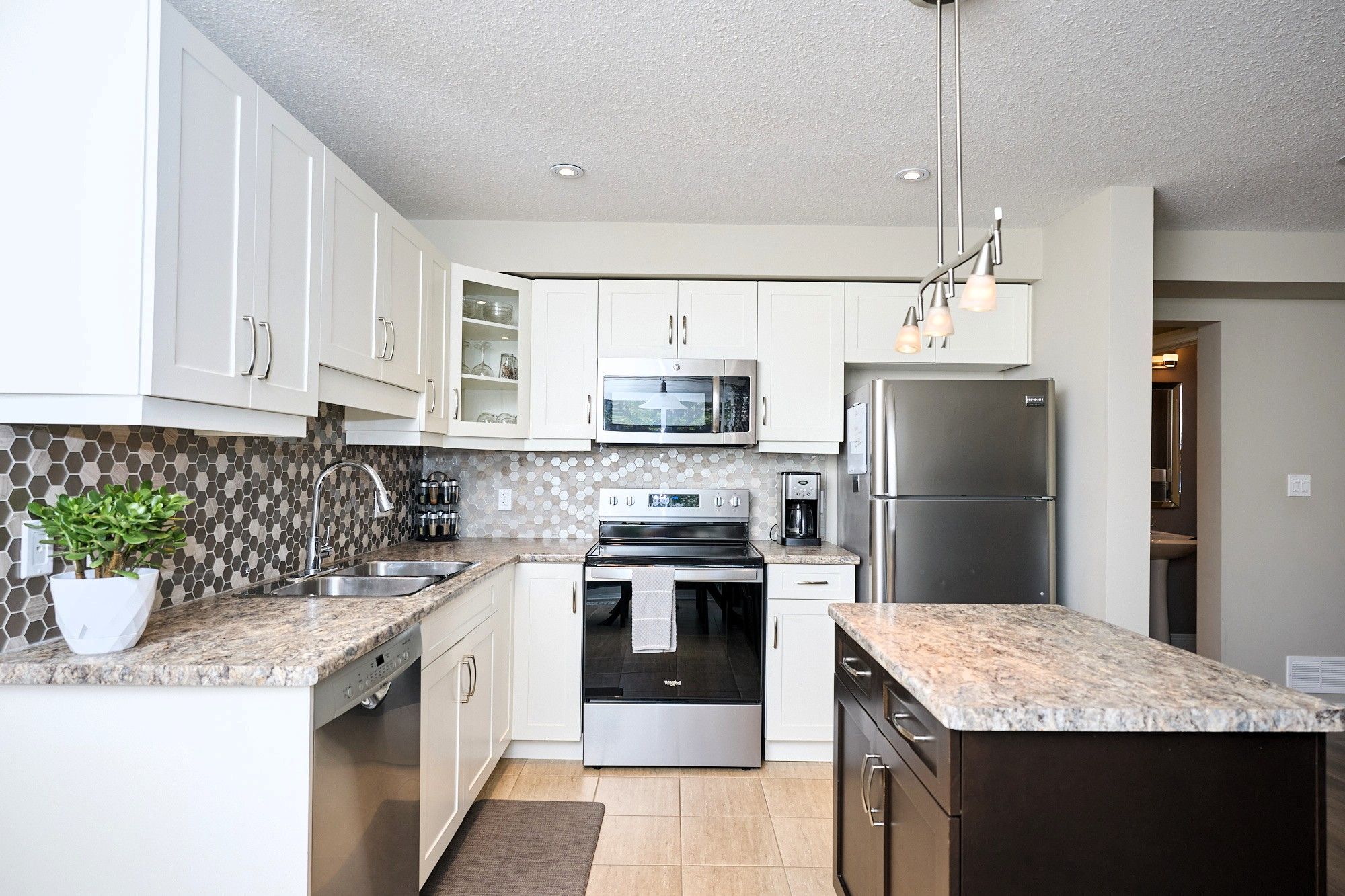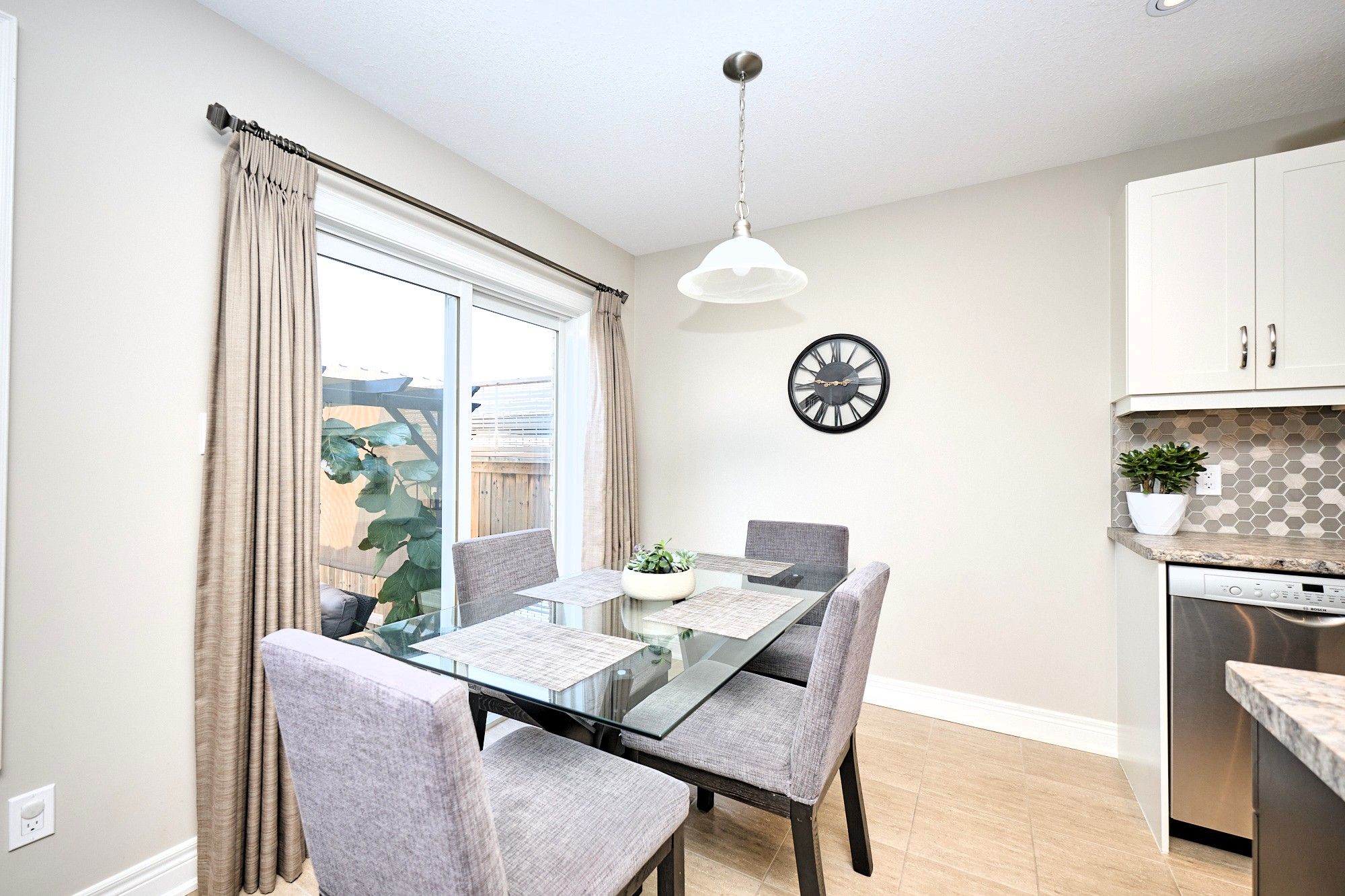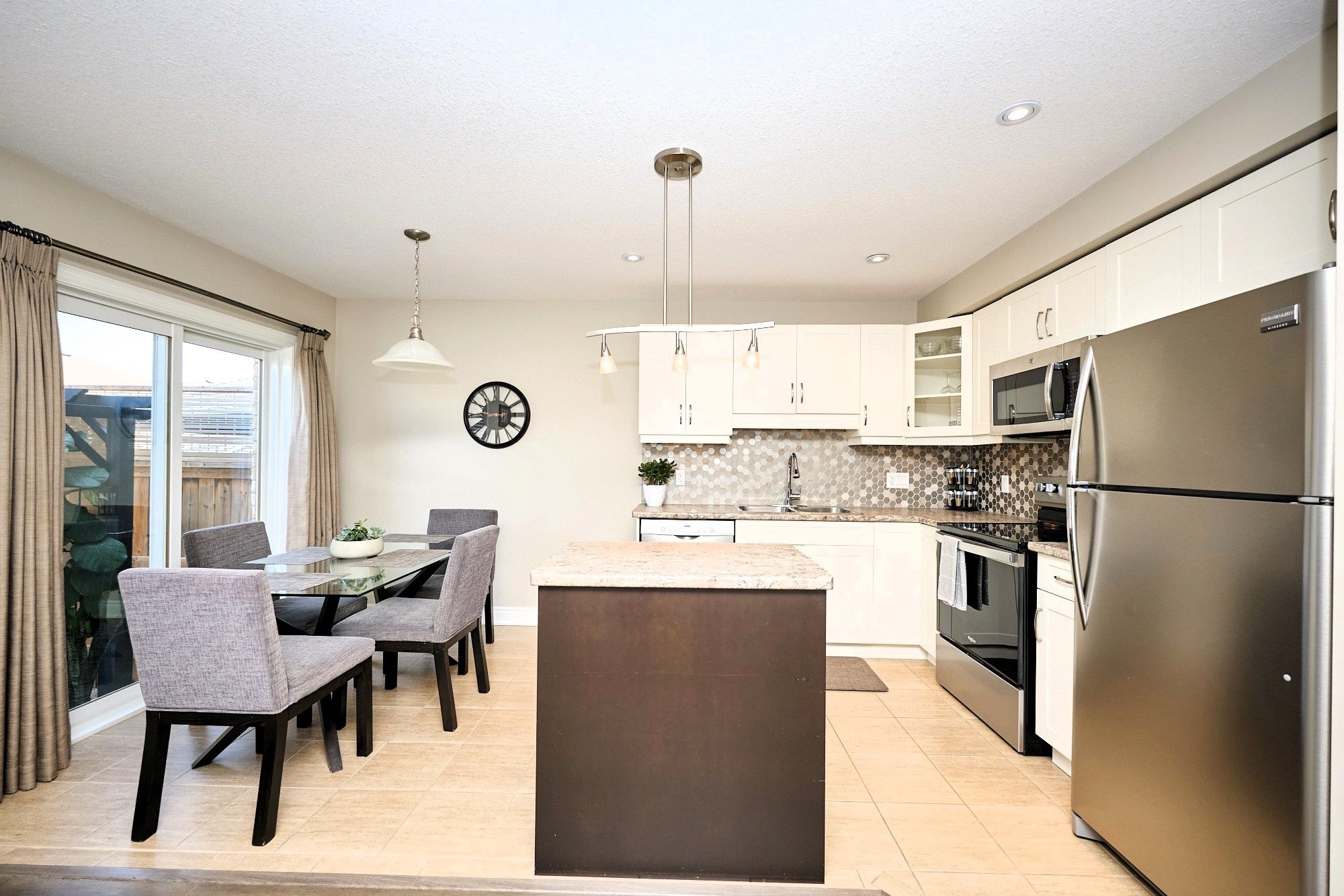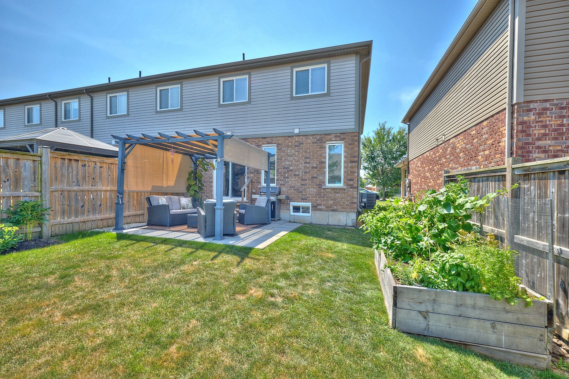 Welcome to coyle creek - one of wellands most welcomed communities! Freehold end unit townhouse! Nestled in a quiet pocket of the city's desirable west end, this beautifully maintained townhome offers the perfect blend of comfort, privacy, and convenience with no condo fees. This family-friendly neighbourhood is known for its quiet surroundings, quality-built homes, and easy access to nature. With scenic walking trails, tranquil water features, and nearby parks, coyle creek blends suburban comfort with outdoor charm. Conveniently located near top-rated schools, shopping, and major highways, its the perfect spot for families, retirees, or anyone looking for a welcoming place to call home. Thoughtfully designed, this home features the popular briar model by trusted mountainview homes, offering three spacious bedrooms and two baths. The warm, inviting layout is enhanced by tasteful upgrades throughout, including updated trim, baseboards, and stylish lighting. The kitchen showcases upgraded shaker-style cabinetry, a functional center island ideal for casual dining and meal prep, and sliding doors that lead directly to the fully fenced rear yard perfect for entertaining or keeping an eye on the kids while you cook. Included appliances are a refrigerator, stove, built-in microwave, and a high-quality bosch built-in dishwasher, making this kitchen truly move-in ready. Upstairs - a generous loft area provides flexible space for a home office, playroom, or workout zone. The spacious bedrooms include a serene primary bedroom with full ensuite privilege, offering comfort and privacy for everyday living. You'll also appreciate the stacked washer and dryer, conveniently located on the second level and included with the home. Outside, enjoy the private, fully fenced backyard, a patio and gazebo - ideal for small children, summer gatherings with friends and family. This immaculate home is truly a turn-key home and waiting just for you!