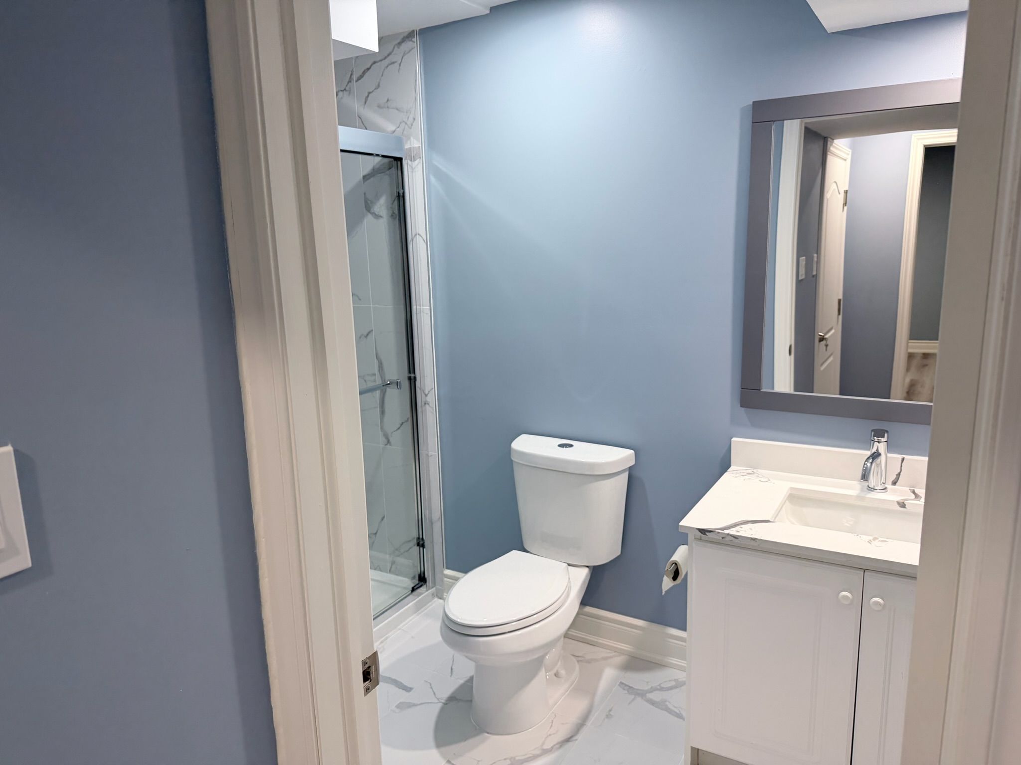 Wow! Absolutely stunning! Who said renting as to be settling! A brand-new, 2 bedroom, 1 bathroom, never-lived-in legal basement apartment in sought-after oak ridges, richmond hill. Perhaps, it's the only detached house in the area that is registered with the city as a legal dual dwelling. With the construction of this legal dwelling comes the strict adhering to the building code/fire code standards. Hence the windows are oversized, bringing beautiful sunrays, perfect for the dreariness of the winter days, making it feel more like a main floor than a basement. From the moment you arrive, the beautifully designed walkway and private entrance create an inviting first impression, with and inviting entryway. The modern, open-concept layout is anchored by a stunning all-white kitchen featuring quartz countertops, matching backsplash, and brand-new appliances. The neutral laminate flooring completes the clean, contemporary look throughout. Enjoy the added convenience of your own private, in-suite laundry. A bright, thoughtfully designed home in a prime location, close to parks, transit, and everyday amenities.