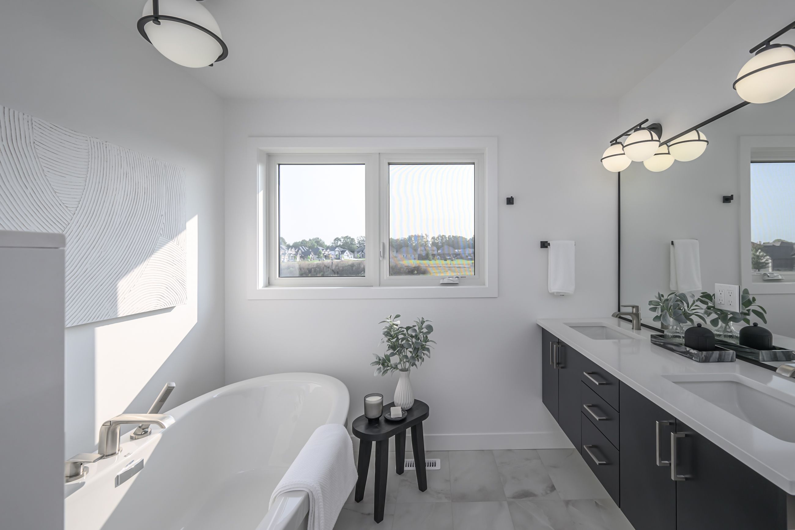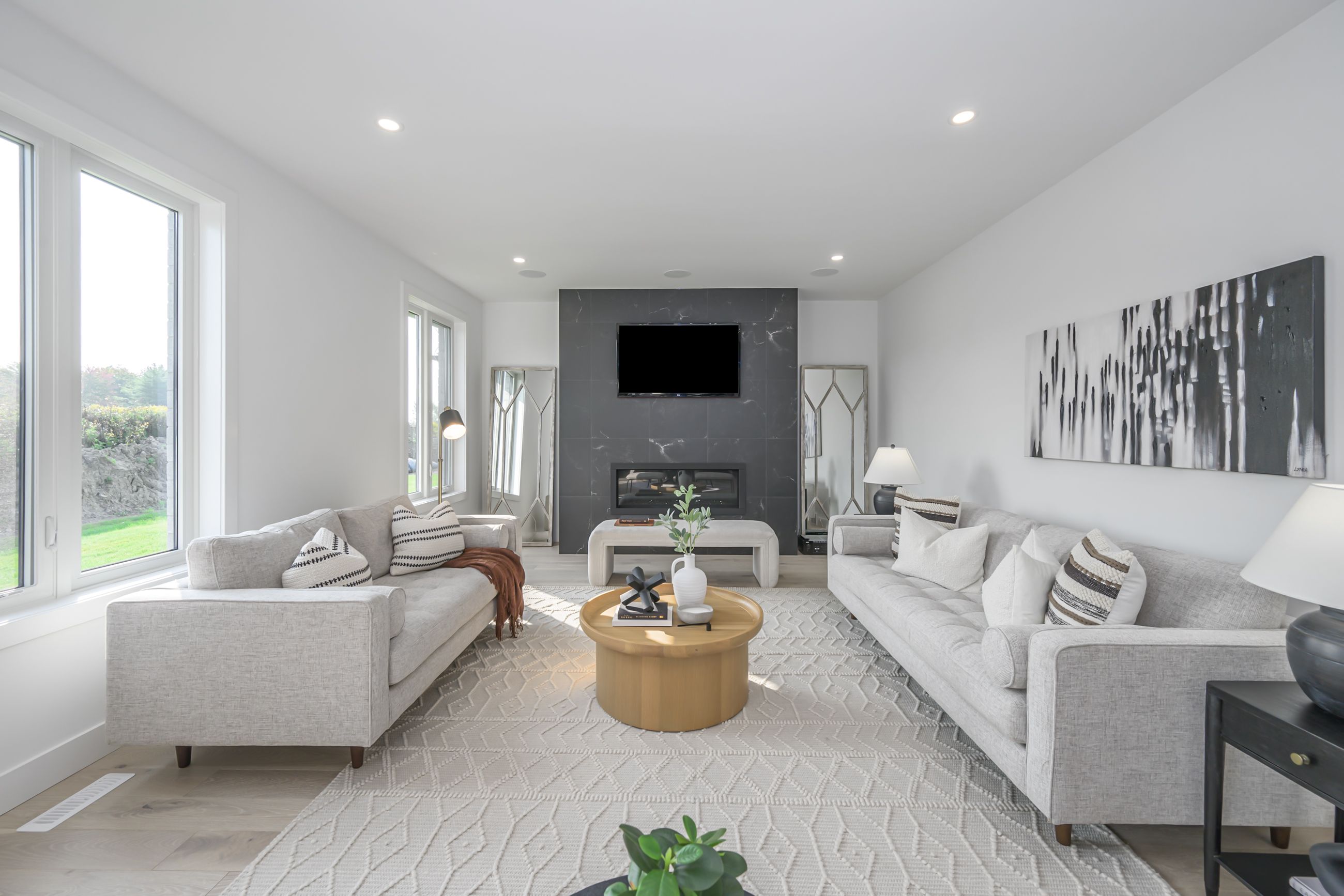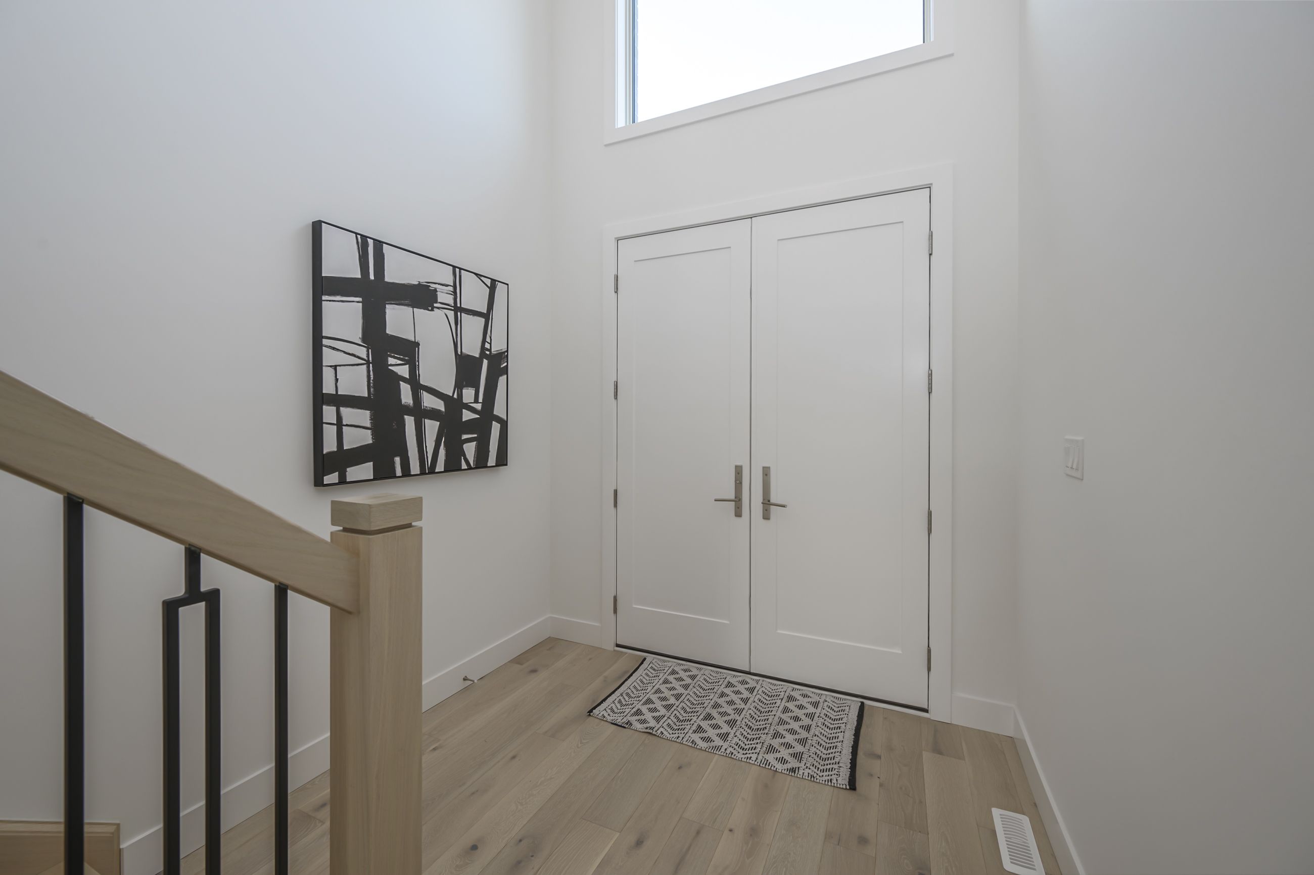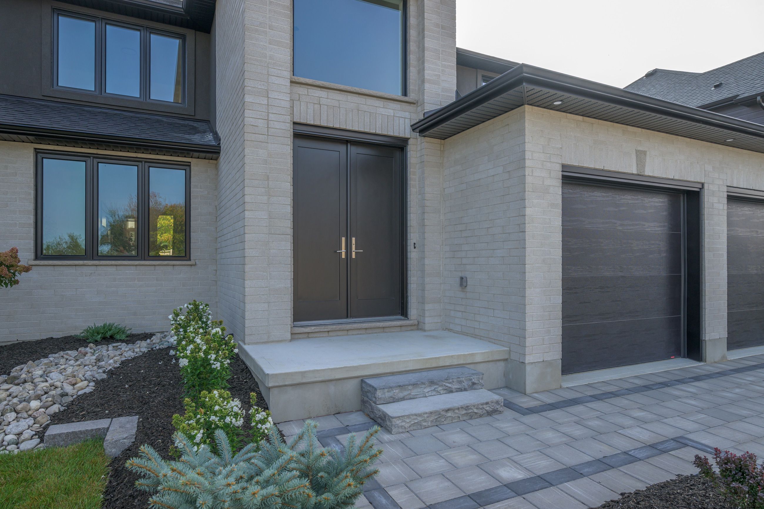 • Modern two-storey home with a stylish brick and stucco exterior.