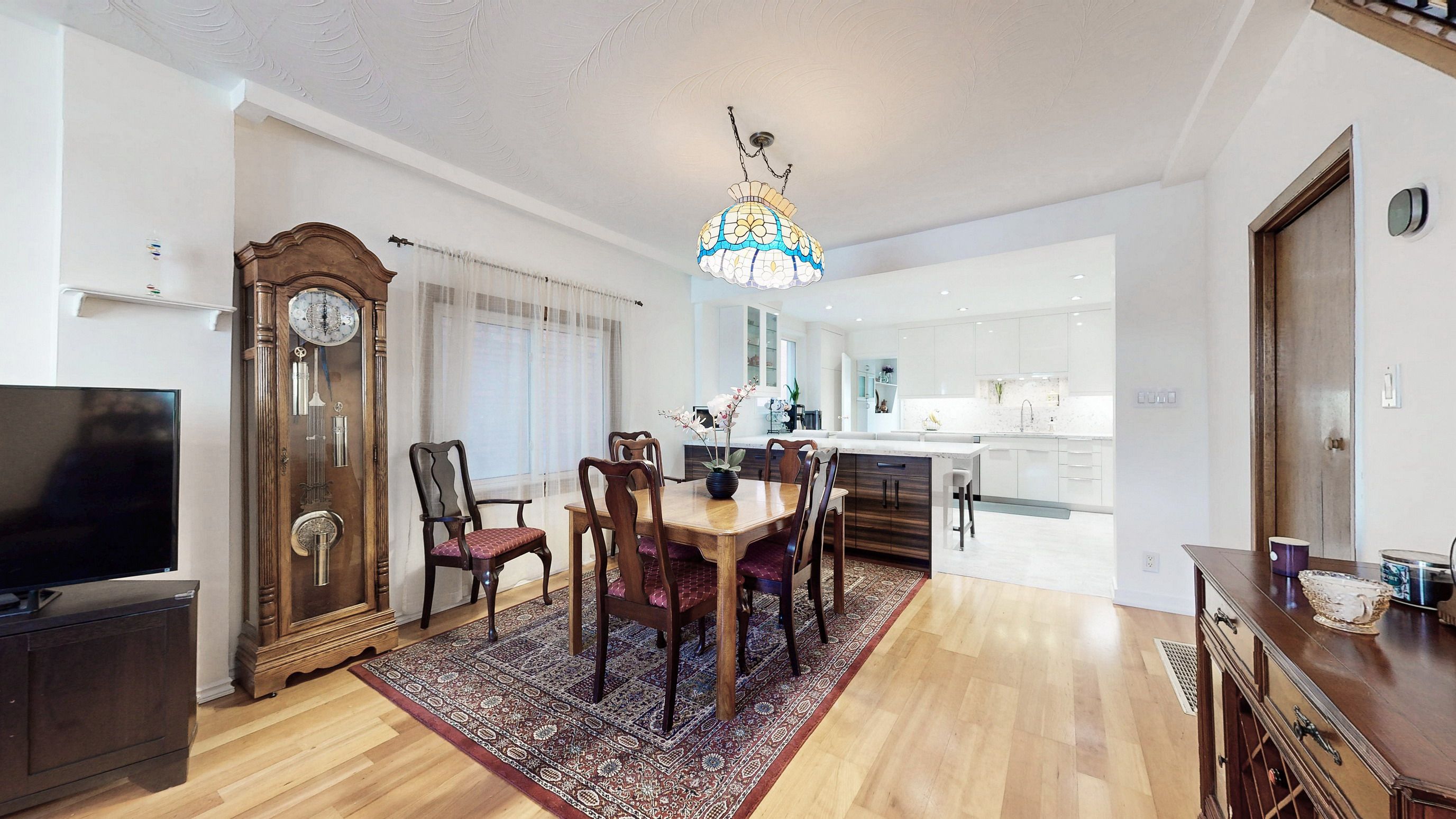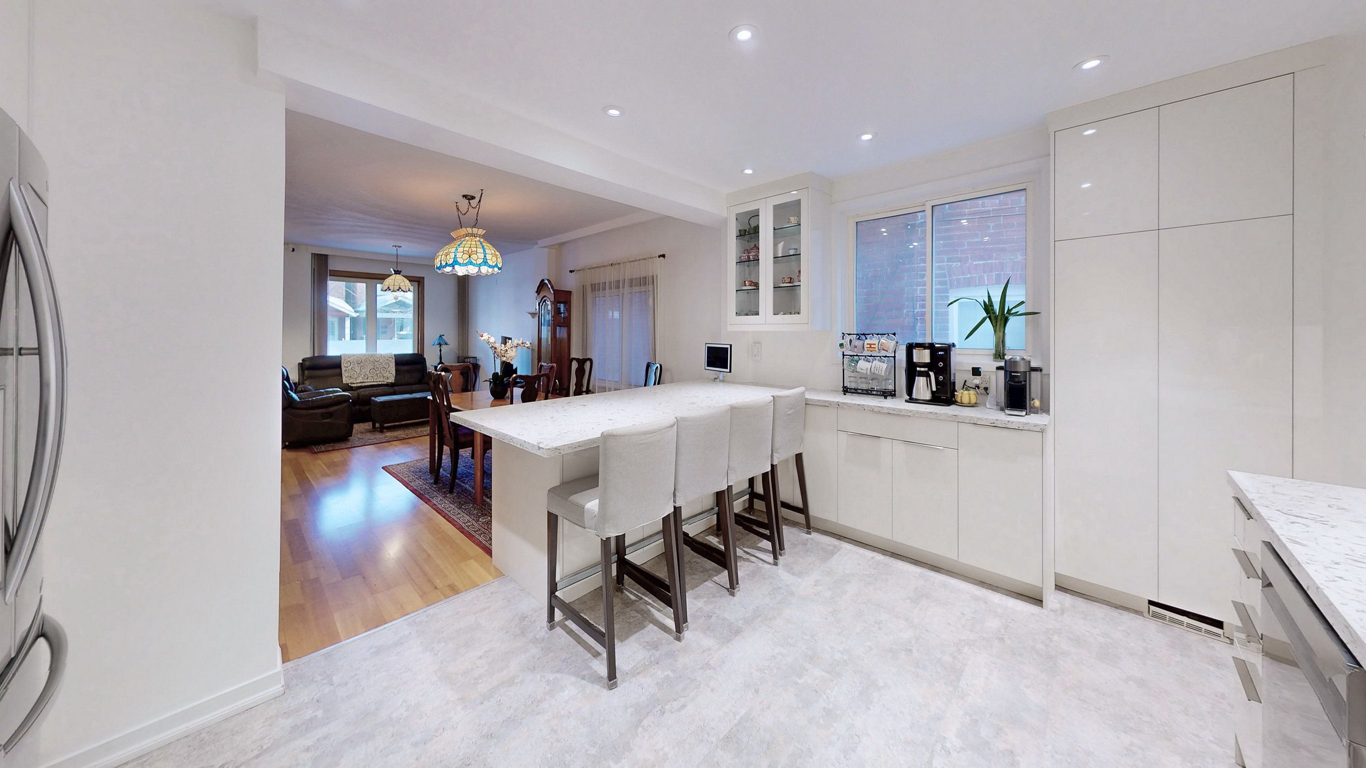 • Updated kitchen with quartz countertops and large island for casual meals.