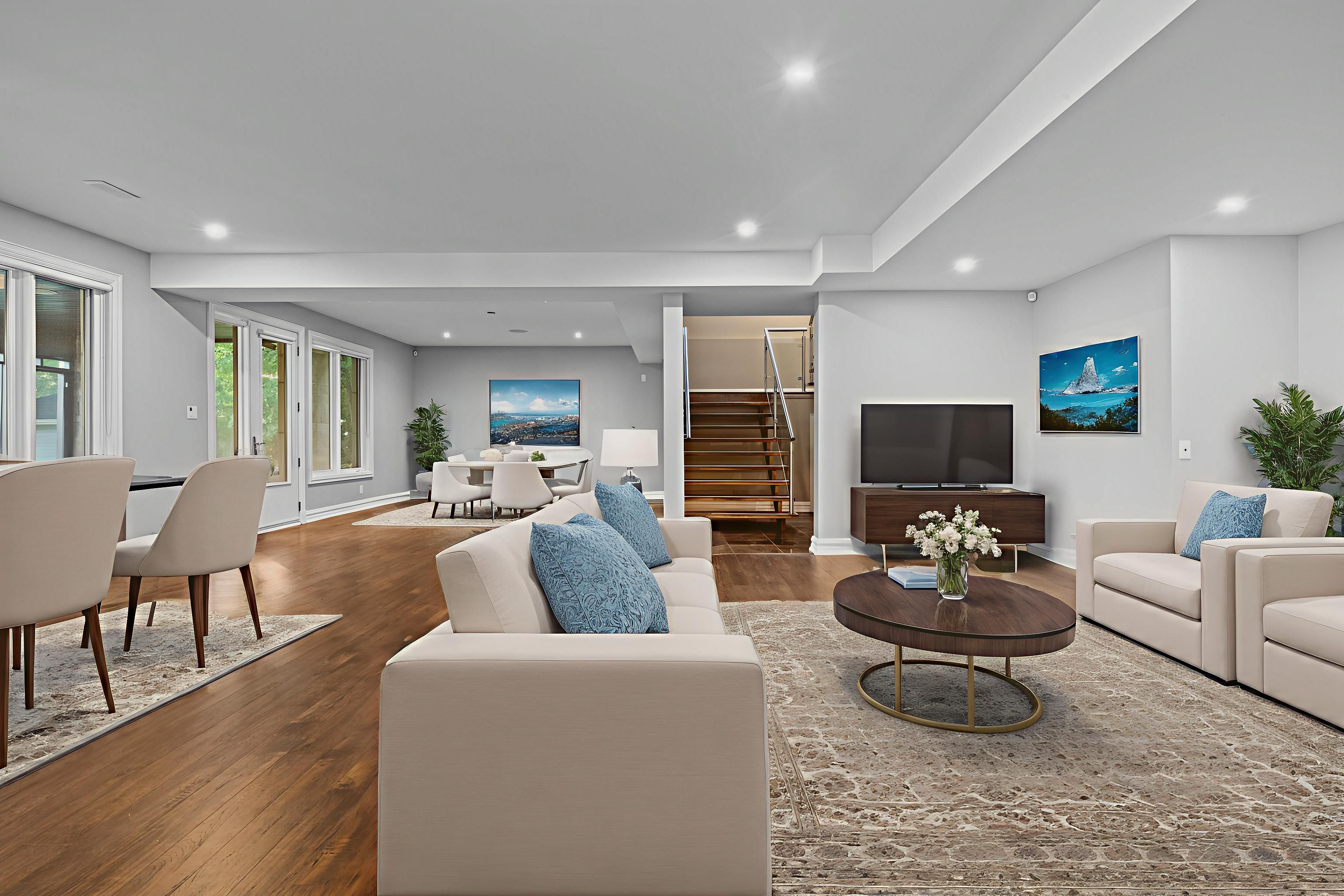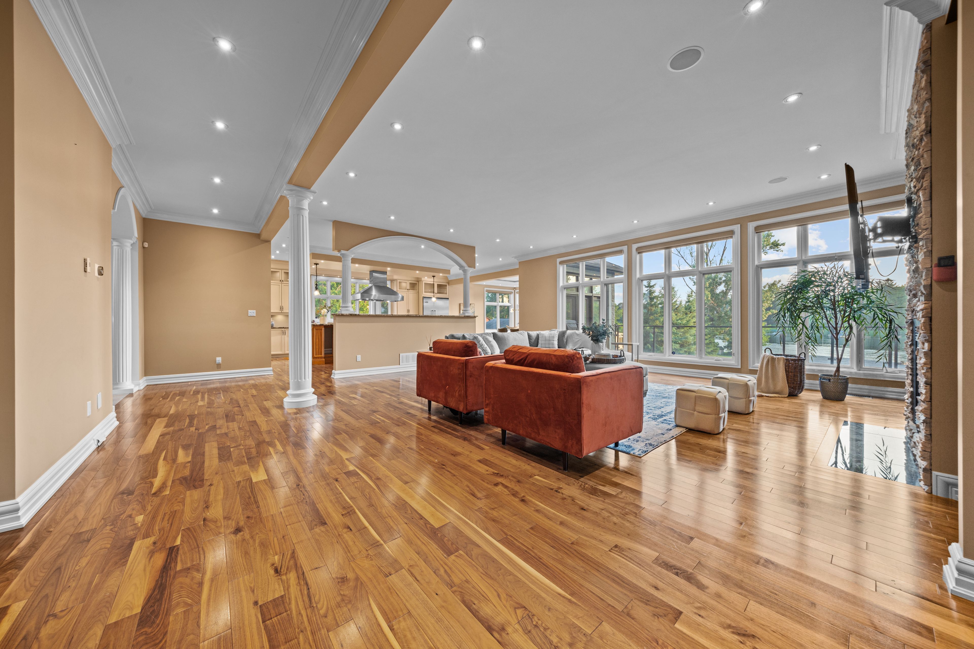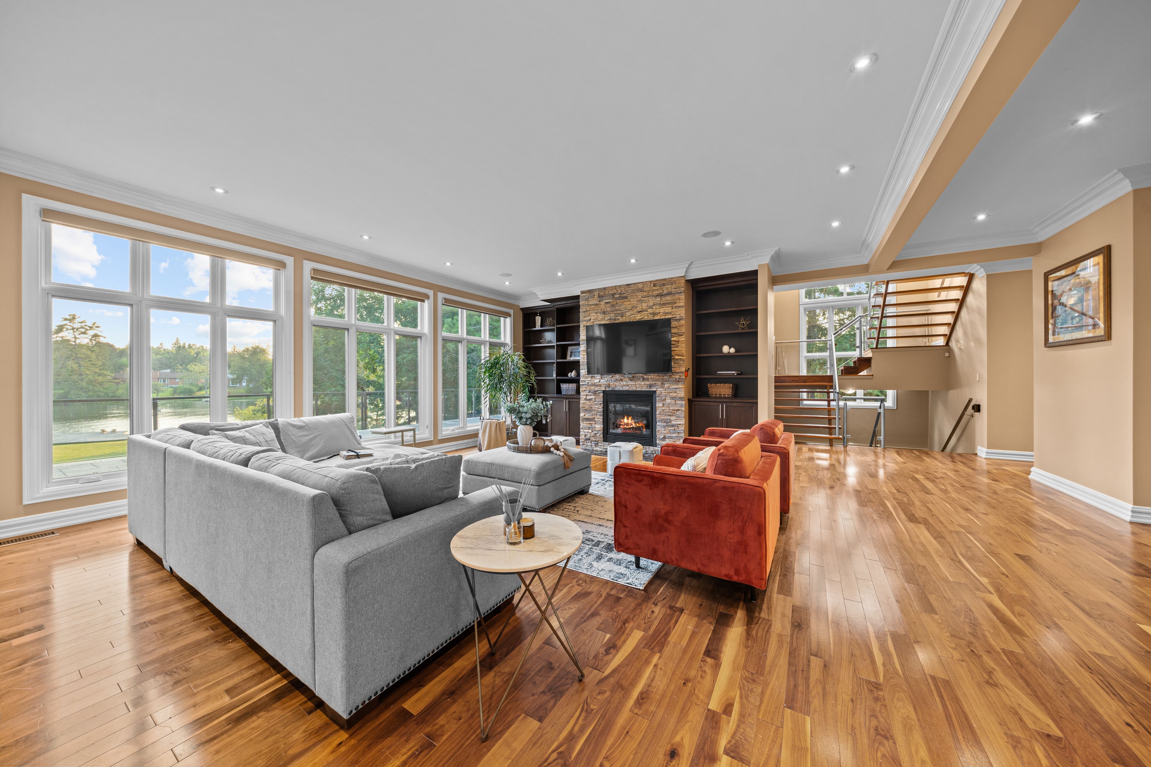 Perched along the serene rideau river, this magnificent italian-style villa seamlessly blends timeless elegance with modern luxury. Spanning over 7,400 sq. Ft. Of meticulously crafted living space, the residence delights at every turn with breathtaking river views, exquisite craftsmanship, and luxurious amenities. Beyond the dramatic 20-foot marble foyer that makes an unforgettable first impression, the home unfolds with graceful elegance. Soaring 10-foot ceilings and rich hardwood flooring flow throughout the main level, while multiple rooms showcase exquisite tray ceilings with recessed lighting, creating an ambiance of refined warmth. The formal dining room impresses with its 14-foot arched ceiling and stunning arched window that fills the space with natural light while framing picturesque outdoor views. The gourmet kitchen features a 13-foot granite island, top-tier viking appliances, and custom walnut and pashmina white cabinetry, complemented by a walk-in pantry for effortless entertaining. The adjoining breakfast area and family room bathe in natural light and offer panoramic water views, enhanced by a convenient wet bar and rough-in elevator. The main floor also includes a spacious executive office with private balcony access, along with a full bathroom that doubles as a guest suite. Upstairs, four bedroom suites each boast generous walk-in closets and spa-like ensuite offers a massage shower & granite counter tops. The walkout basement serves as a versatile retreat, featuring high ceilings, oversized windows, a fifth bedroom, and a full bath. Enjoy whole-home indoor & outdoor audio system. Outside, the home's full stone façade exudes sophistication, while the expansive 650 sq. Ft. Balcony and private dock invite you to enjoy the breathtaking riverfront setting. Every detail of this exceptional residence has been thoughtfully designed to deliver an extraordinary living experience.