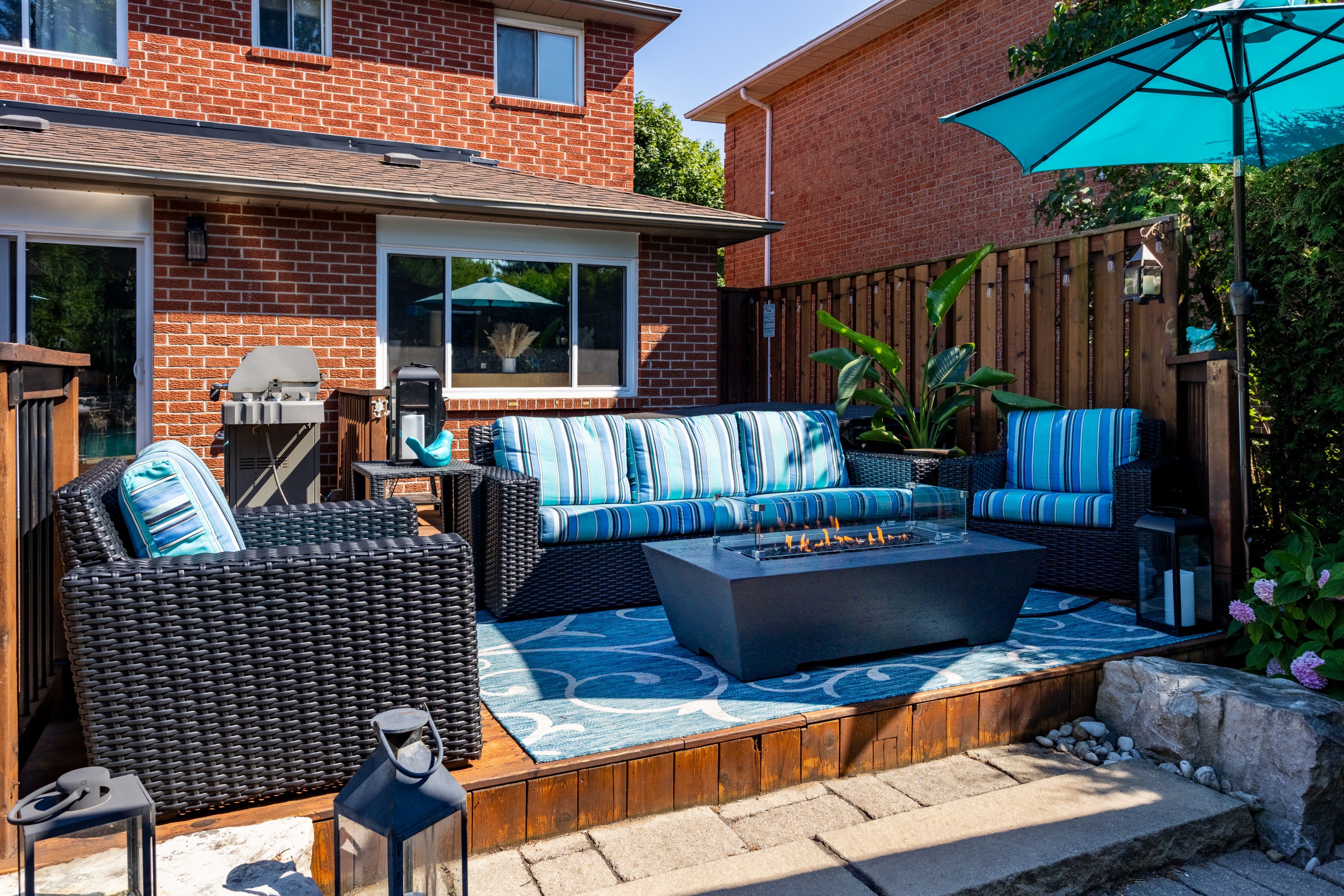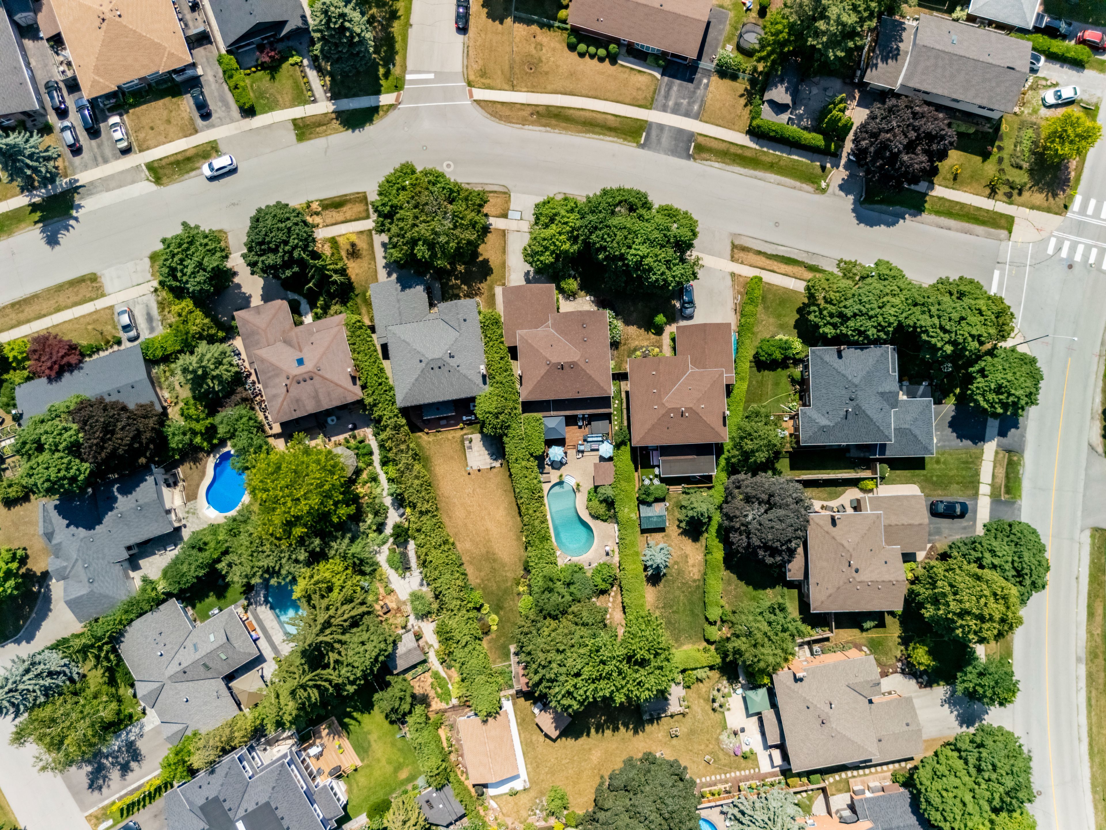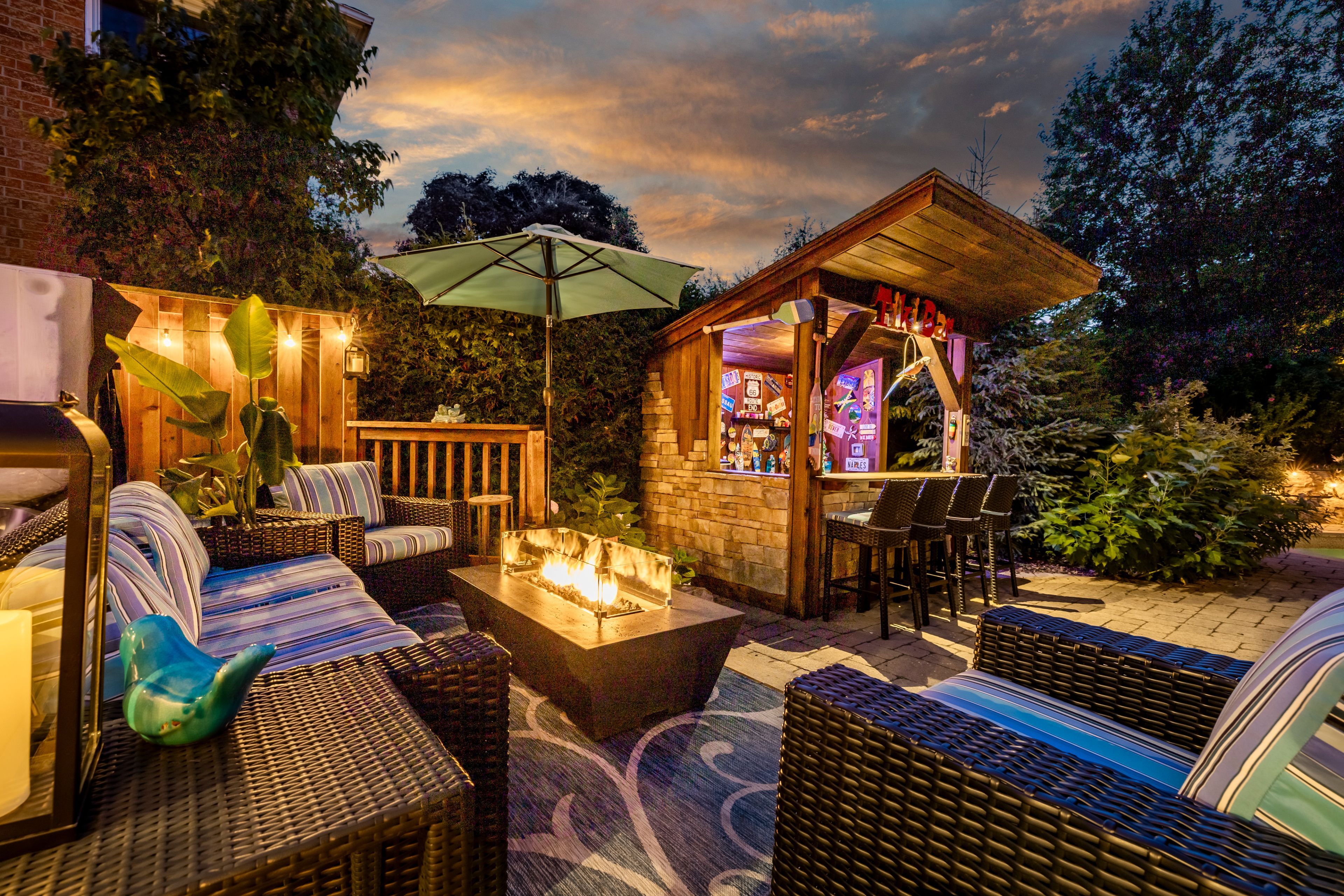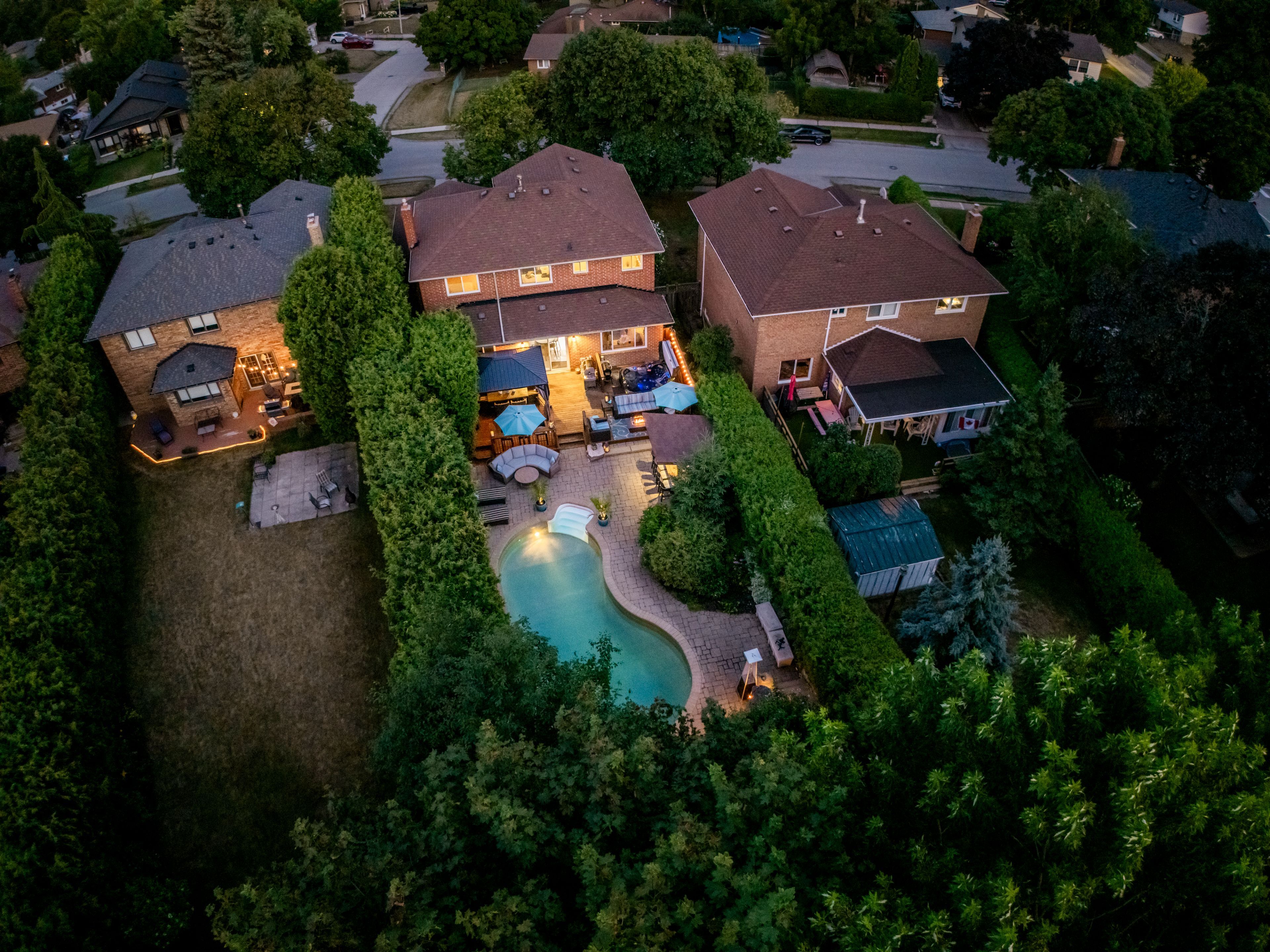 Welcome to an exceptionally rare find in falgarwood, featuring an approximately 200-foot-deep lot that creates a truly private sanctuary. This stunning 4-bedroom home perfectly blends luxury with unbeatable convenience, offering a spectacular, resort-style backyard oasis complete with a custom in-ground pool, a new 6-person hot tub (2022), ambient lighting, a fully equipped tiki lounge, and a fire-pit area-the ultimate setting for private relaxation or grand entertaining. Inside, enjoy freshly painted principal rooms, including a superb living/dining great room, alongside an oversized primary suite and three generous secondary bedrooms. Situated on a family-friendly street, you're just a short walk from iroquois ridge high school and all major amenities, with immediate access to every major highway, making this a unique and highly sought-after forever home. Follow your dream home as your backyard paradise awaits. Don't miss this one!