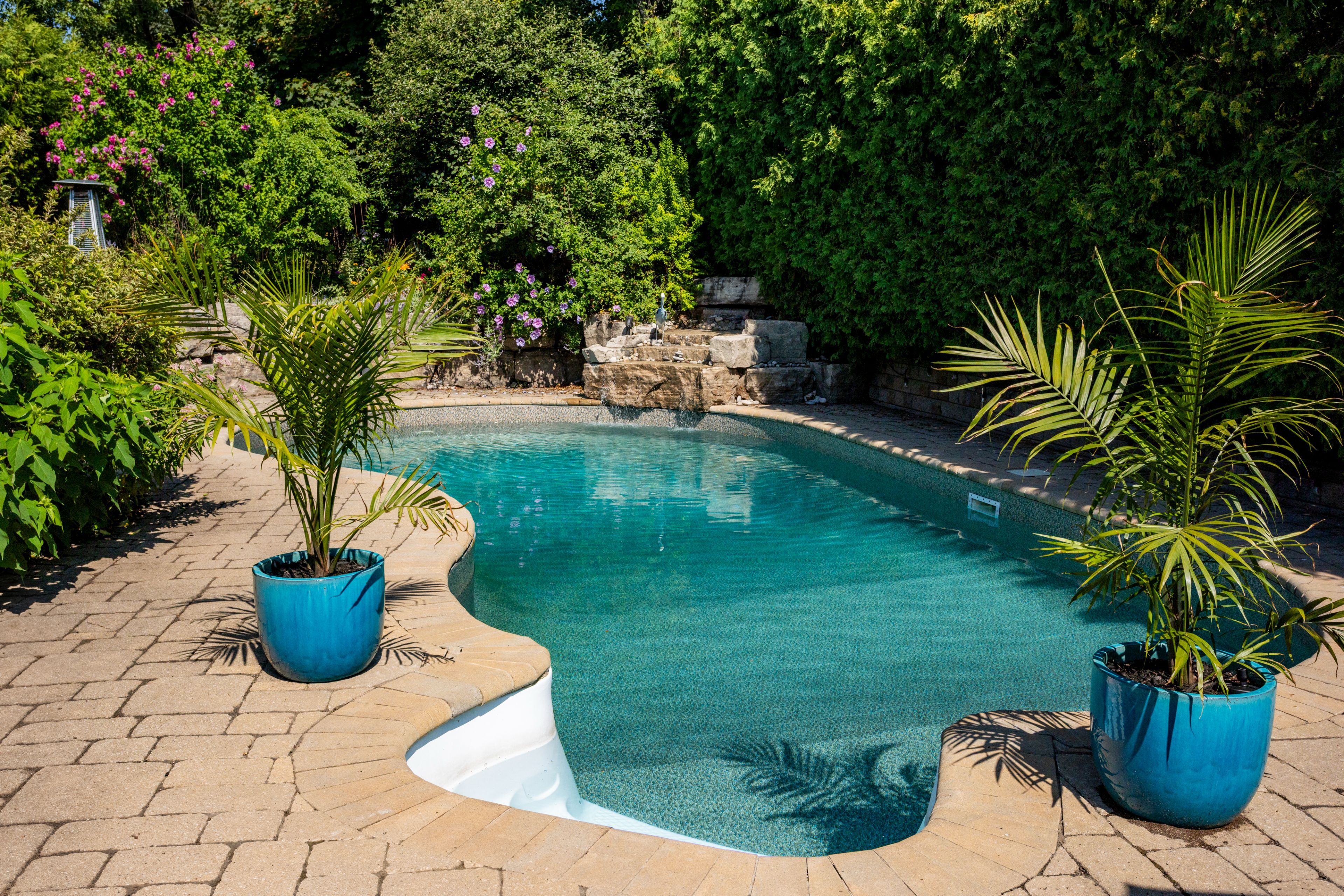 • Luxurious resort-style backyard with custom in-ground pool and hot tub.