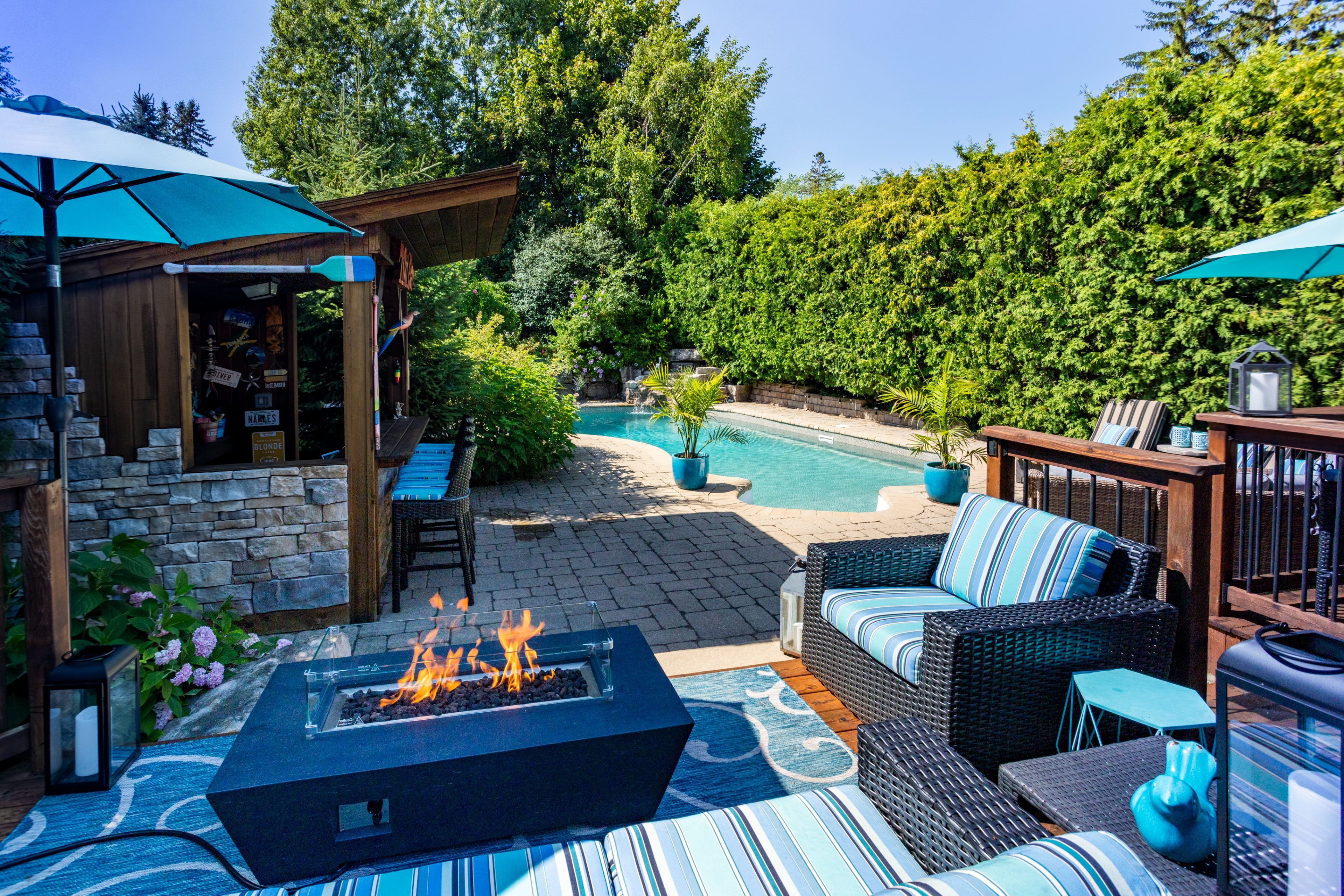 • Fully equipped Tiki lounge and fire-pit area for entertaining.