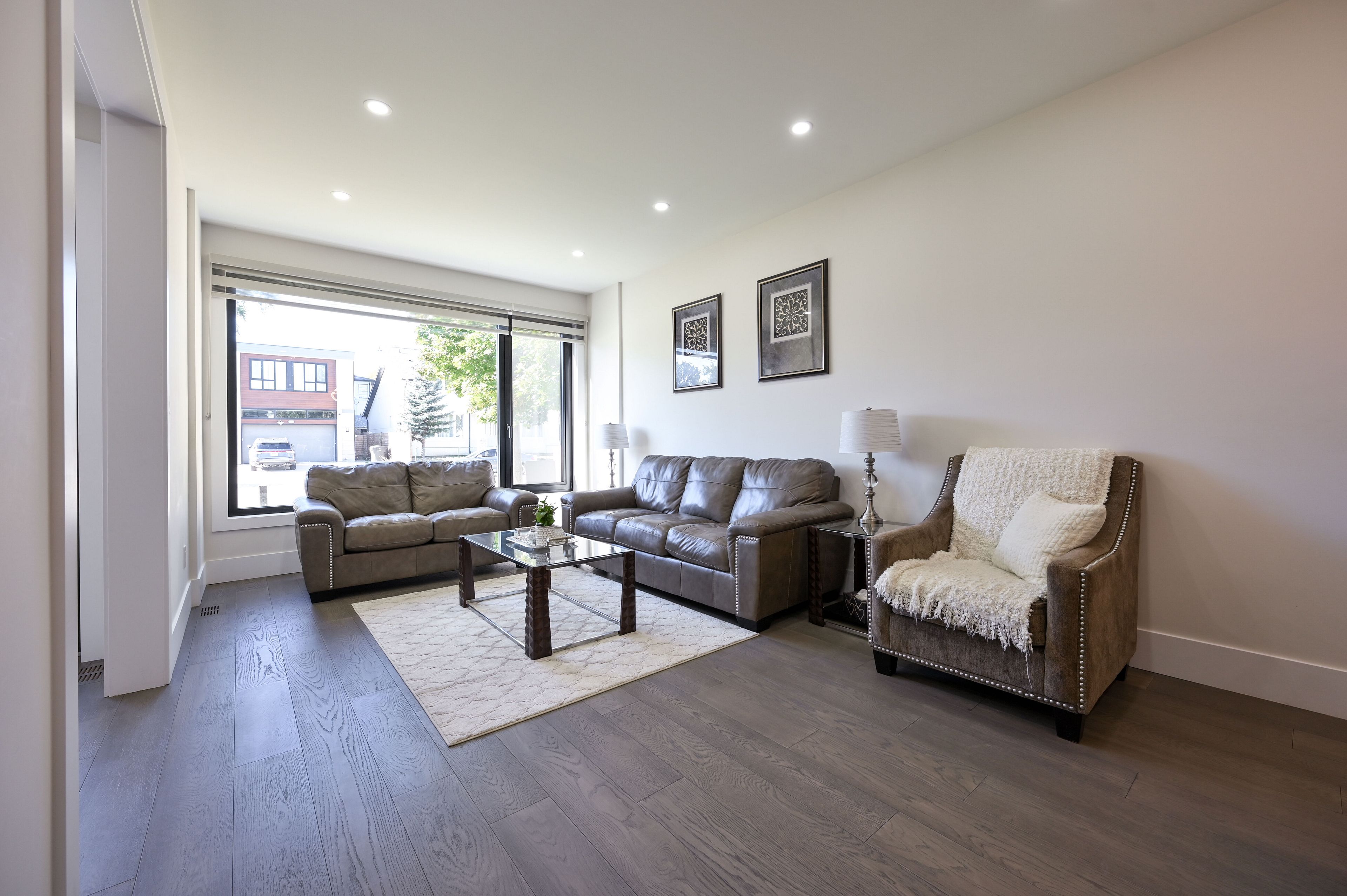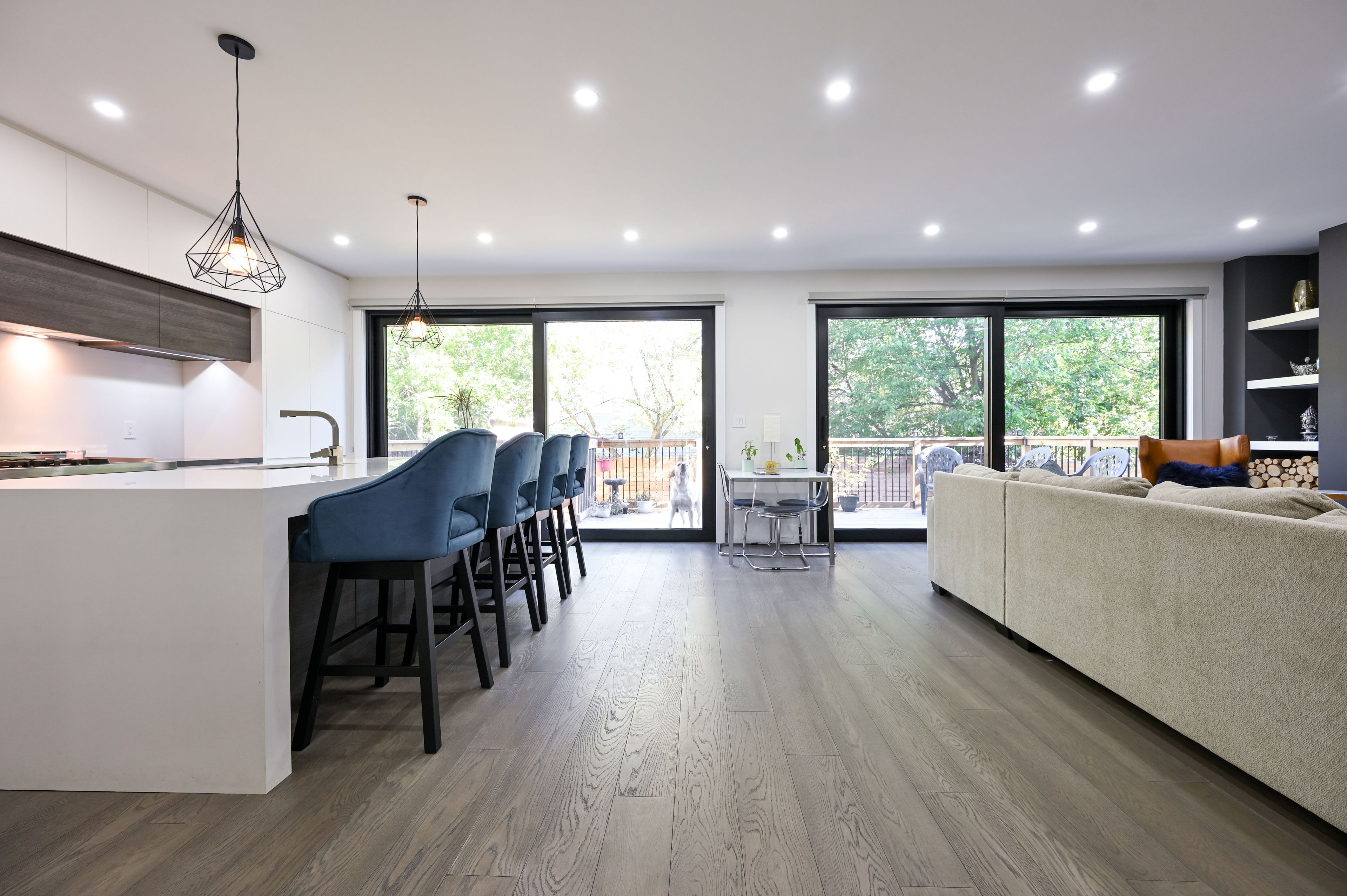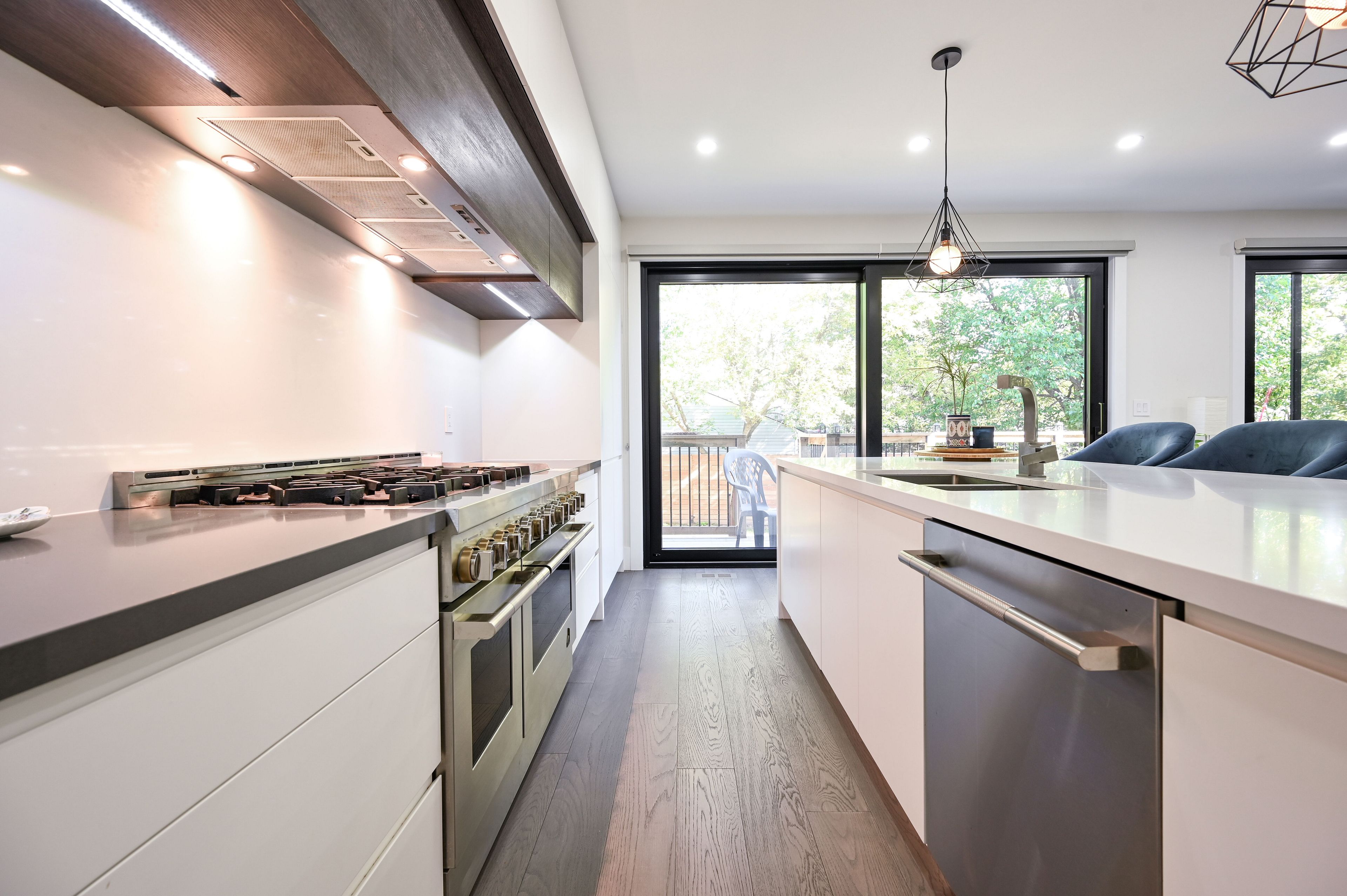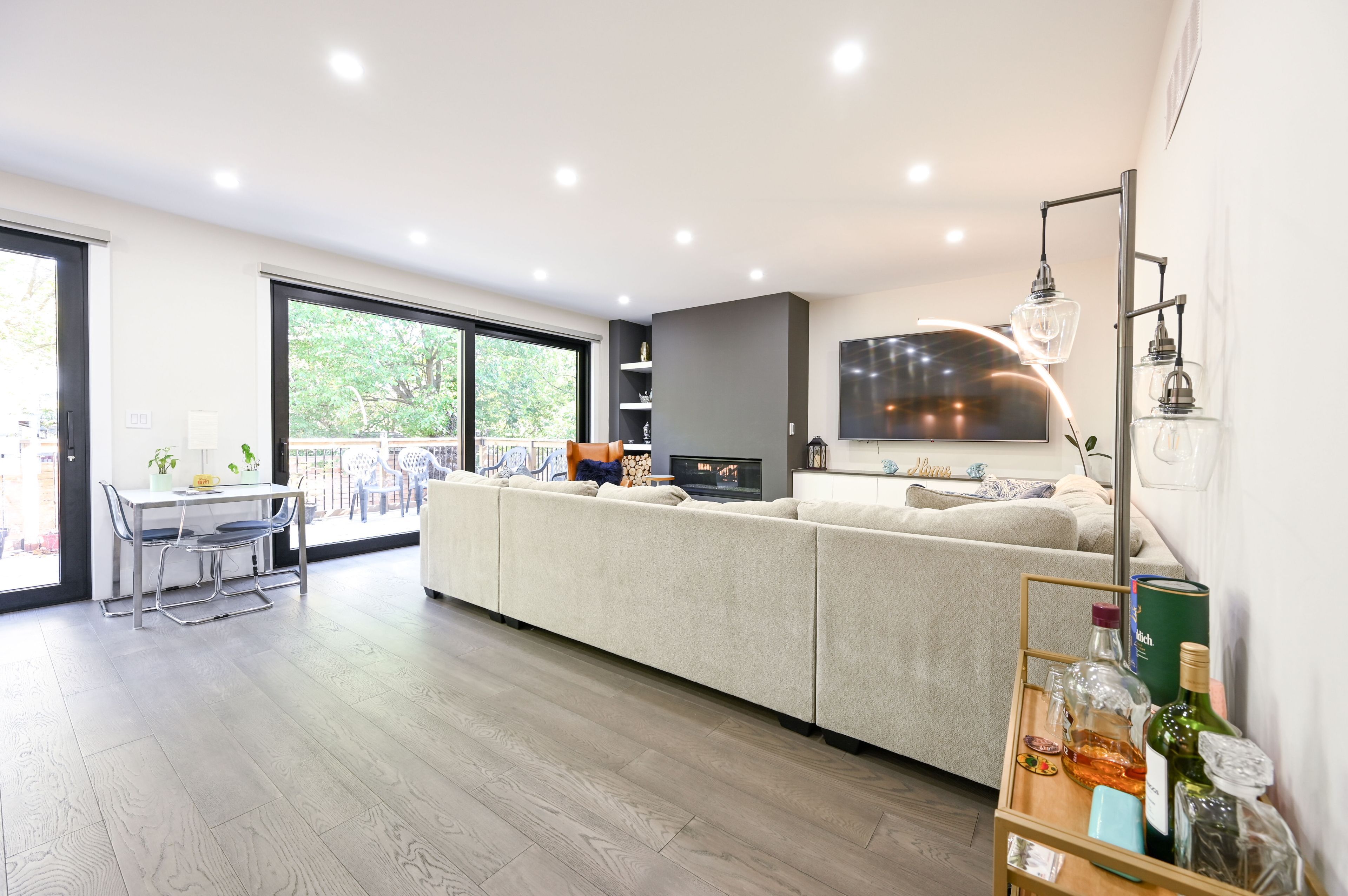 • Open concept main level with a chef-inspired kitchen and private backyard deck.