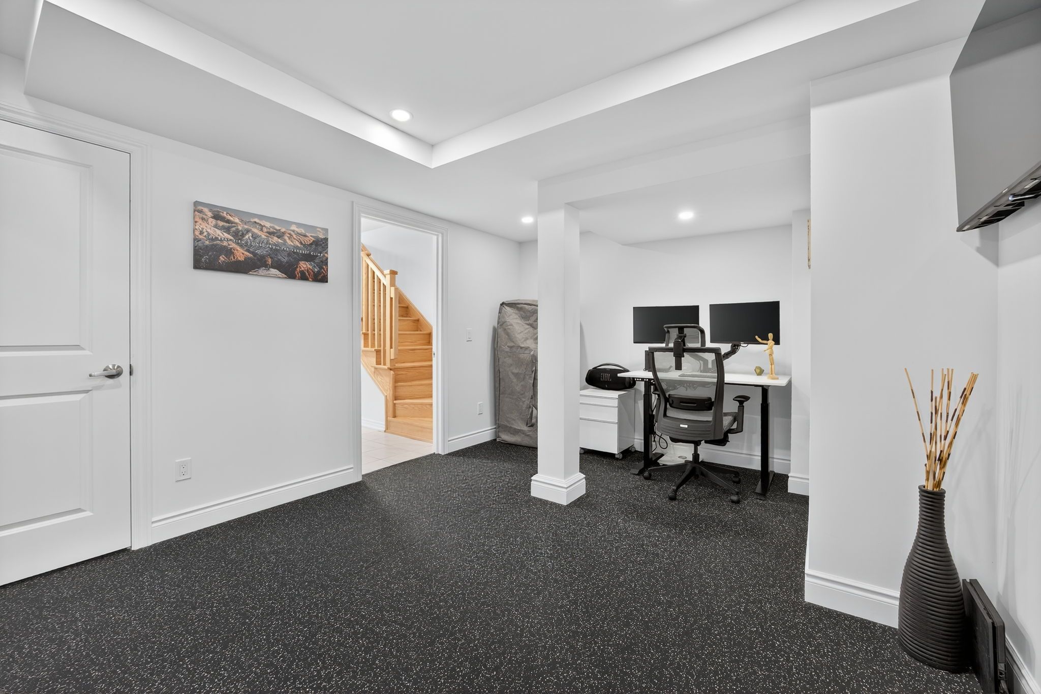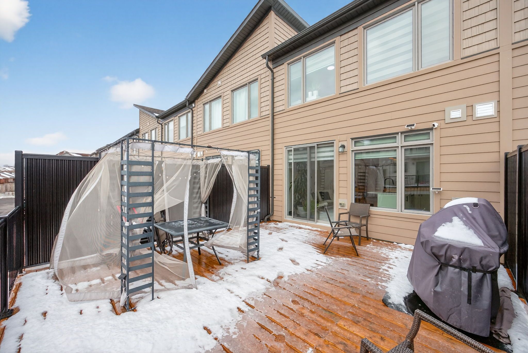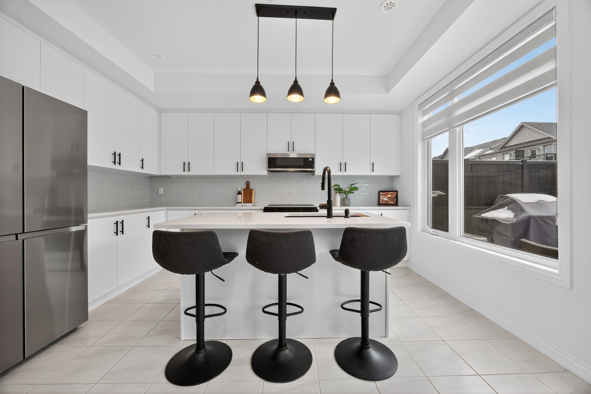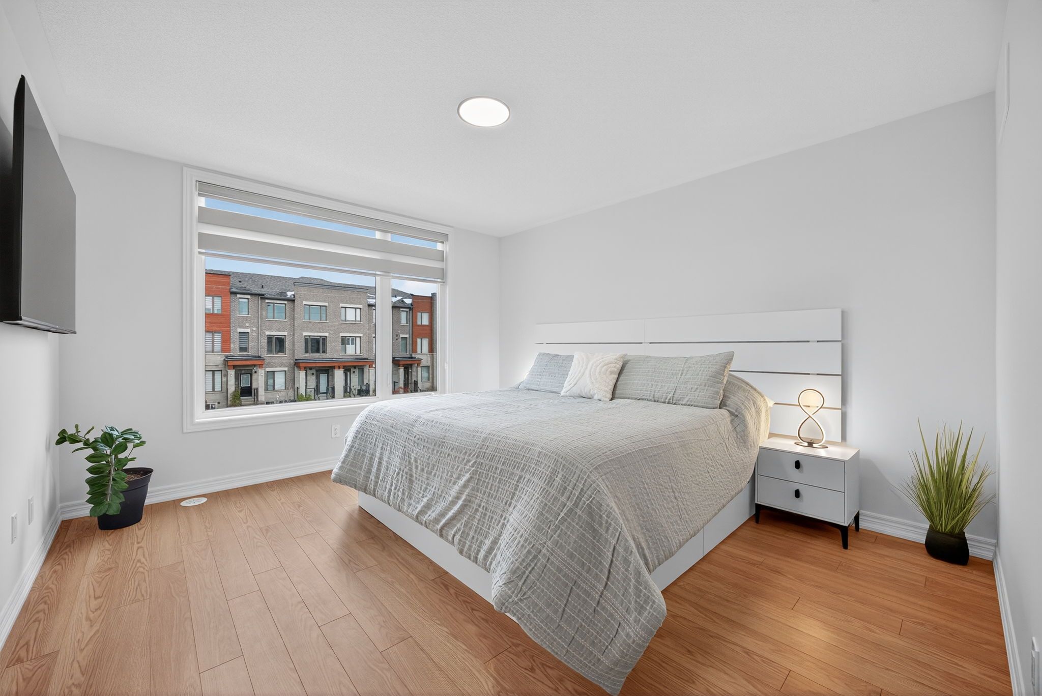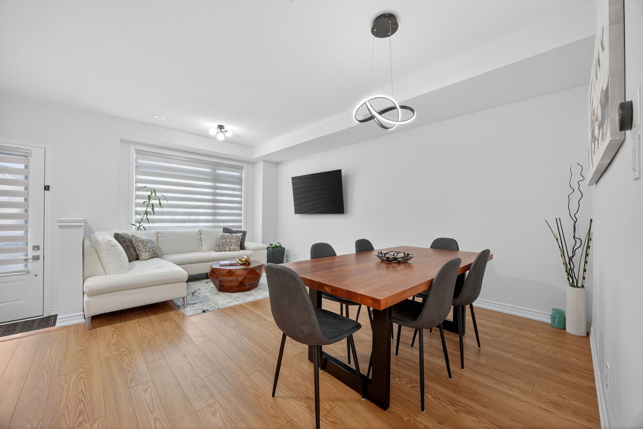 Welcome to this almost new, beautifully designed 3-bedroom, 3-bathroom townhome located in one of stouffville's newest communities! Offering a perfect blend of style, comfort, and convenience, this stunning home is ideal for families, professionals, or anyone looking to enjoy modern living in a charming small-town setting. Step inside to find a bright open-concept layout with high ceilings, large windows, and elegant finishes throughout. The spacious kitchen features sleek cabinetry, quartz countertops with center island featuring breakfast seating, and stainless steel appliances-perfect for everyday meals and opens to a private patio or balcony, creating a seamless indoor-outdoor flow. The living and dining area and a powder room rounds out this level - open and airy for entertaining guests or for family cozy movie nights. Upstairs, the primary bedroom retreat boasts a walk-in closet and a luxurious ensuite bath with glass shower. Two additional bedrooms offer plenty of space for family, guests, or a home office. A convenient upper-level laundry and ample storage add to the home's functionality. The finished lower level flex space can be set up as a gym/ office or additional bedroom as needed. With a two car garage and additional 2 outdoor spaces -- this home has all the perks with none of the outdoor maintenance stresses. Located just minutes from go transit, top-rated schools, parks, shopping, and dining, this home provides easy access to both urban amenities and the peaceful charm of stouffville.