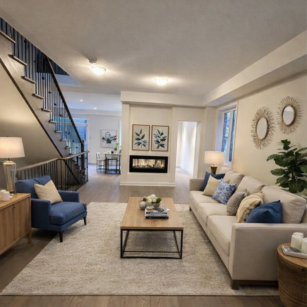 • Open-concept main floor with modern finishes and a central island kitchen.