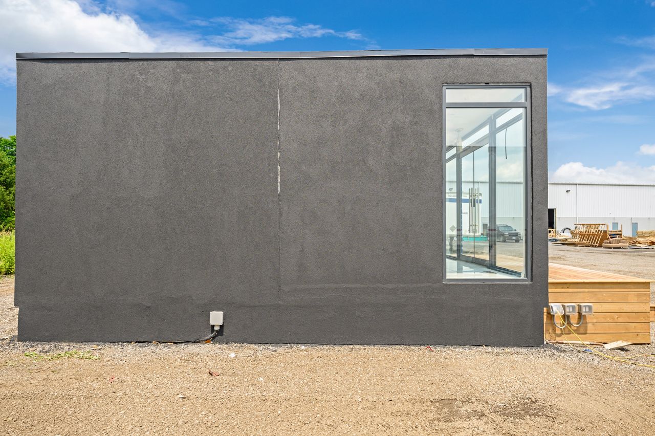 Modern freestanding modular unit offering approximately 1,400 square feet of finished, versatile space. Currently configured as a professional office, this structure presents an excellent opportunity for conversion to a modular home or alternative residential use. The layout features multiple rooms with an open-concept flow, allowing for flexible reconfiguration to suit a variety of needs. The interior includes tile and hardwood flooring, fresh paint, and floor-to-ceiling windows that provide abundant natural light and a bright, welcoming atmosphere. A full kitchen is already installed. Plumbing is not currently connected but can be readily installed to service the kitchen. A portable 3-piece washroom is available for purchase at an additional cost, with the unit but is not currently connected. The exterior is finished in modern stucco, offering a clean and contemporary appearance. The unit is ideal for buyers seeking a modular structure with potential for residential use, guest accommodation, or secondary dwelling. A unique opportunity to acquire a well-finished modular unit with strong adaptability and future potential.