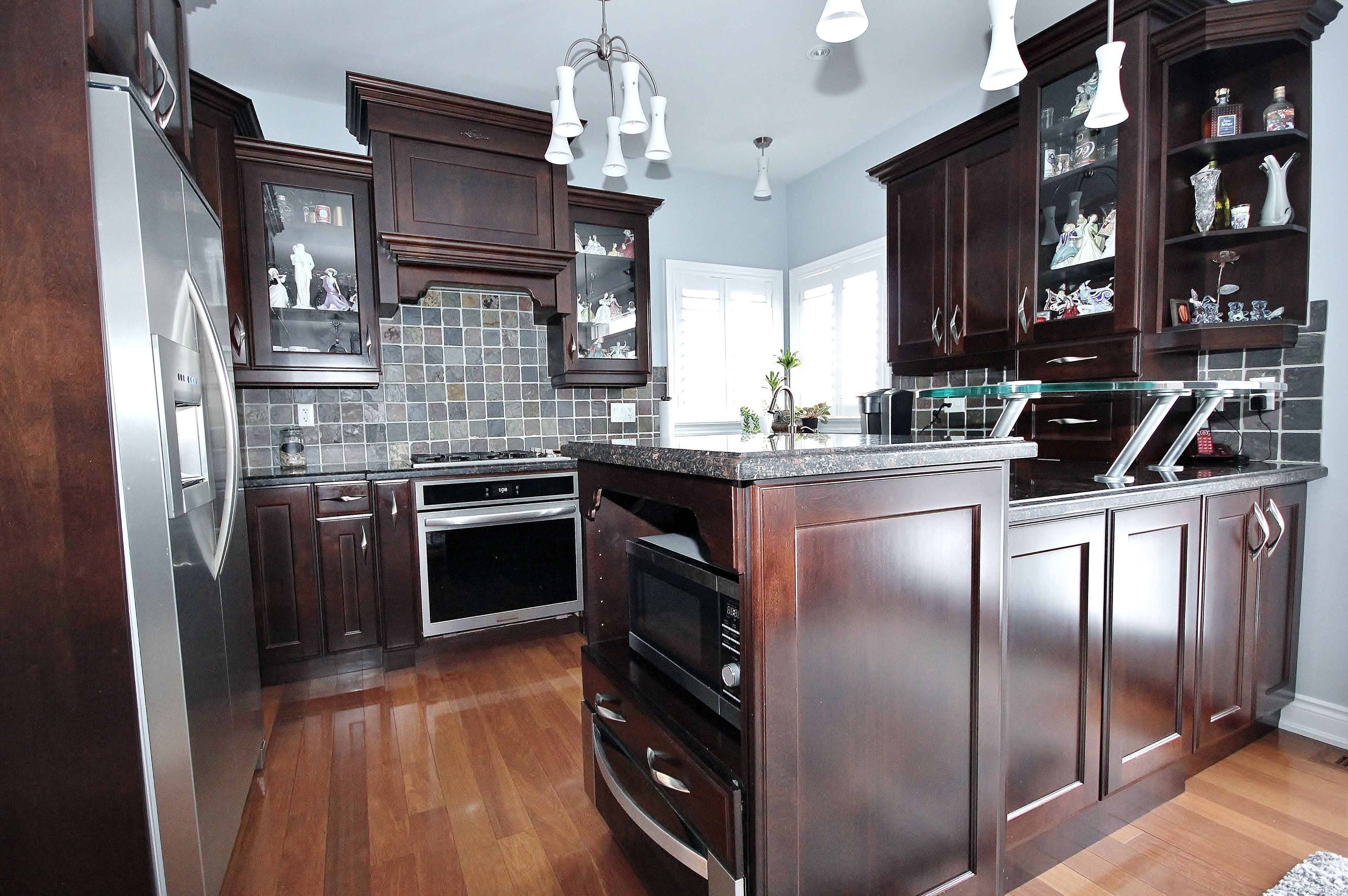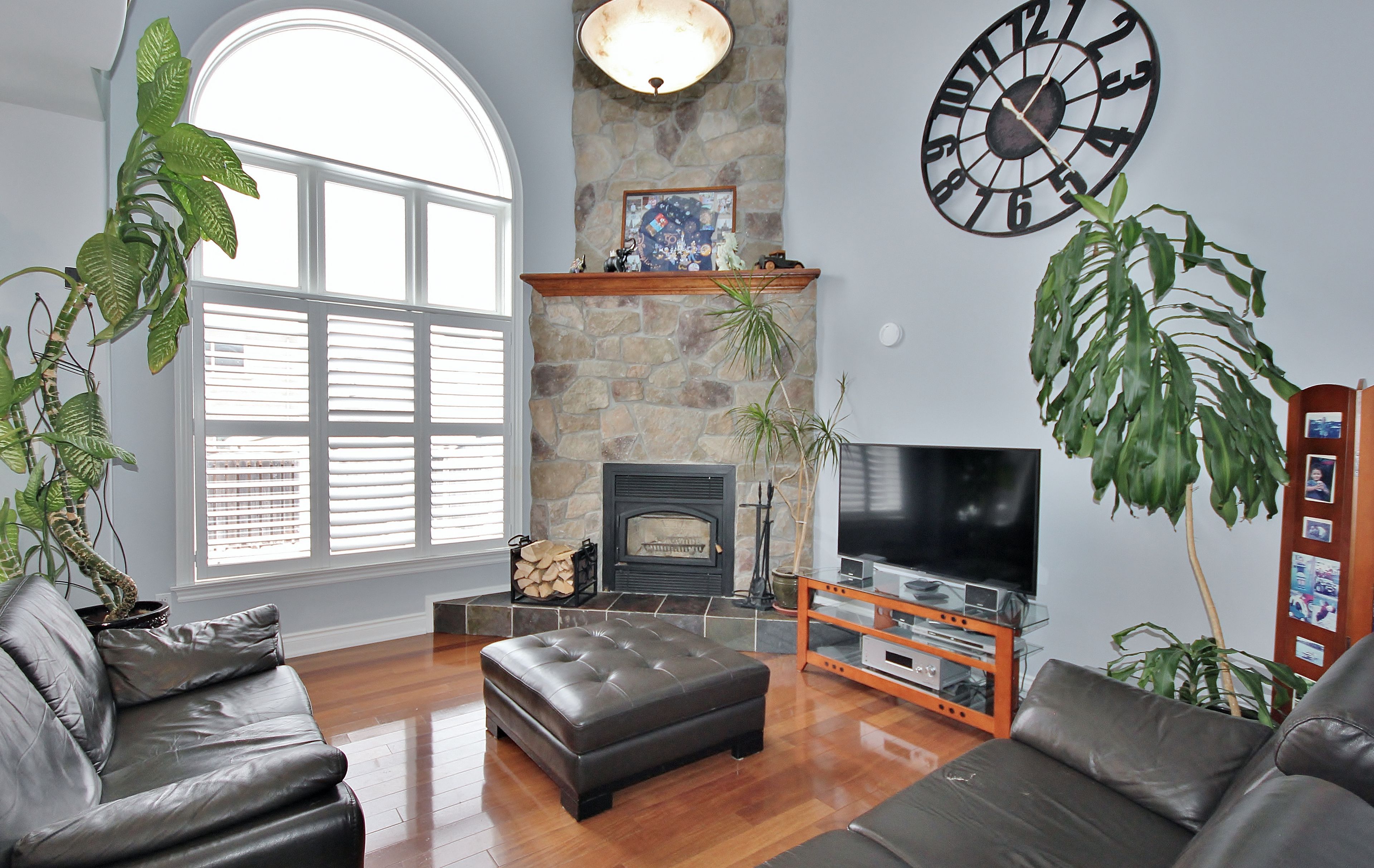 Stunning custom 2-storey home on a quiet court welcome to this beautifully crafted 4+ bedroom, 4-bathroom residence offering approximately 3400 sq ft of elegant living space. Nestled on a serene court, this home boasts exceptional curb appeal with an interlock driveway, walkways, and a spacious backyard patio perfect for entertaining. Step inside to discover a grand oak staircase with wrought iron railings, open to below, leading to a soaring family room open to above. A striking wood-burning fireplace with a full-height stone façade anchors the space, creating a warm and inviting atmosphere. The main floor features a dedicated office, convenient laundry room, and a chef-inspired kitchen that flows seamlessly into the living and dining areas. Upstairs, generously sized bedrooms provide comfort and privacy, while the finished basement offers a completed 4-piece bathroom and a rough-in for a future bar-ideal for hosting guests or creating your dream rec room. Outside, enjoy a charming brick and stone shed for added storage and functionality. The double car garage adds convenience, and the quiet court location ensures peace and privacy. This home is a rare blend of luxury, character, and thoughtful design-perfect for families seeking space, style, and sophistication