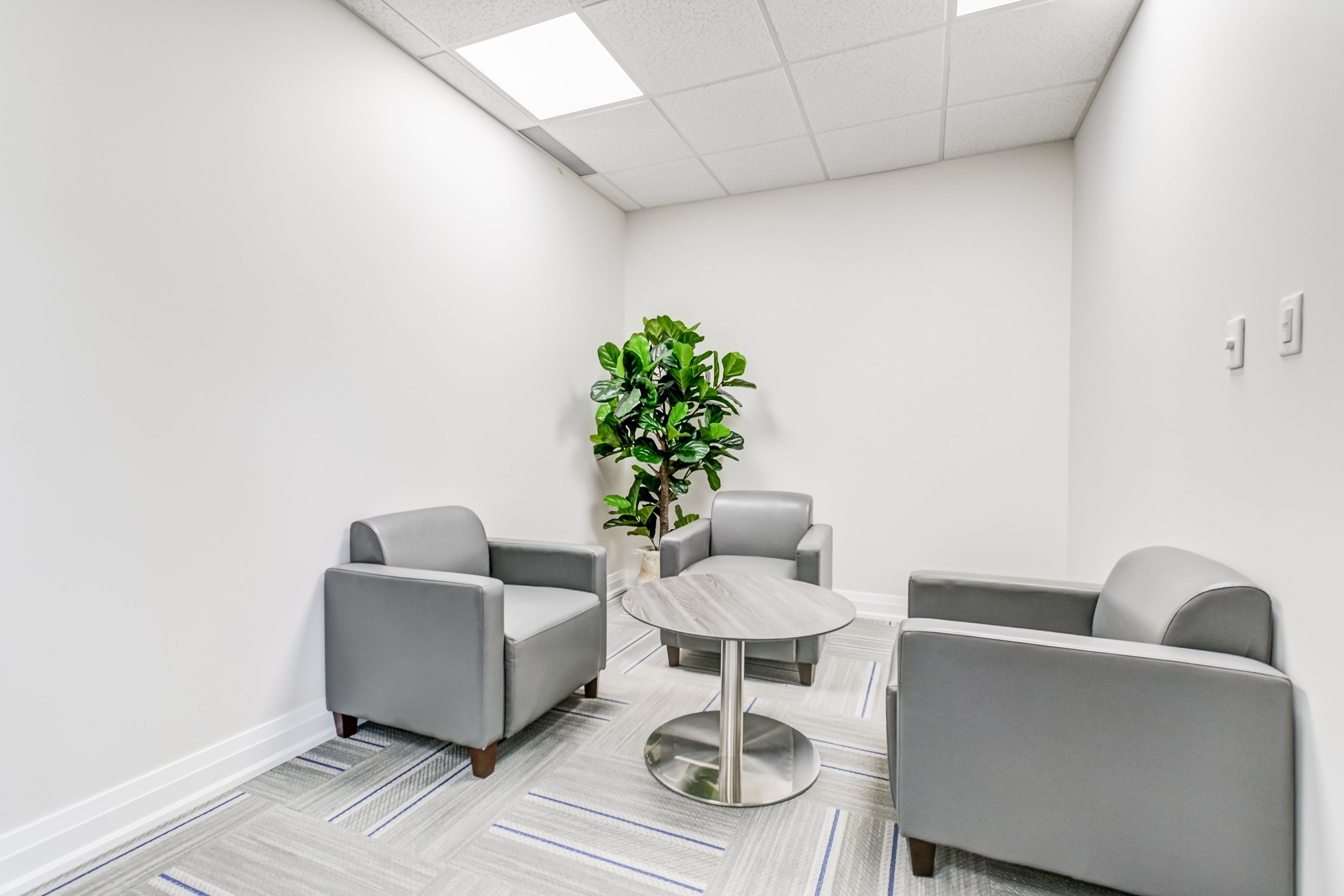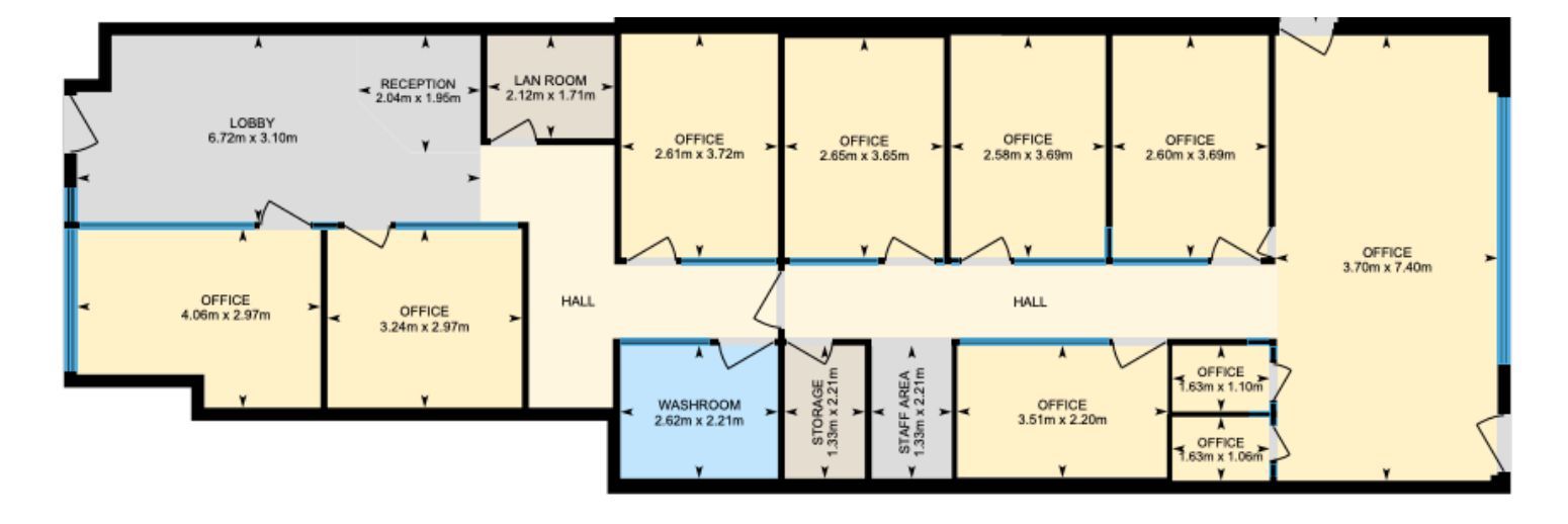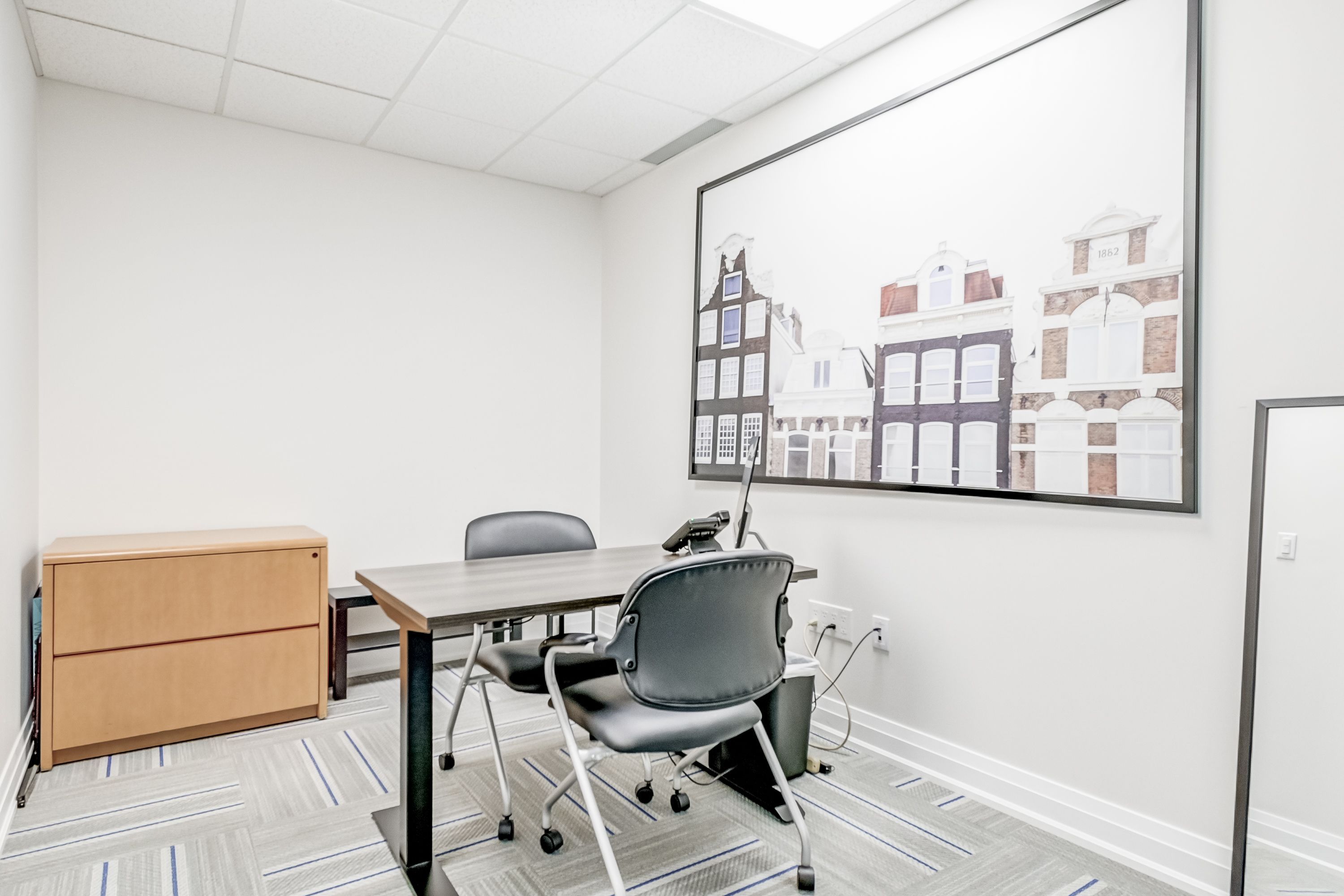 • Includes 1 front desk, 7 private offices, and multiple cubicles for flexibility.