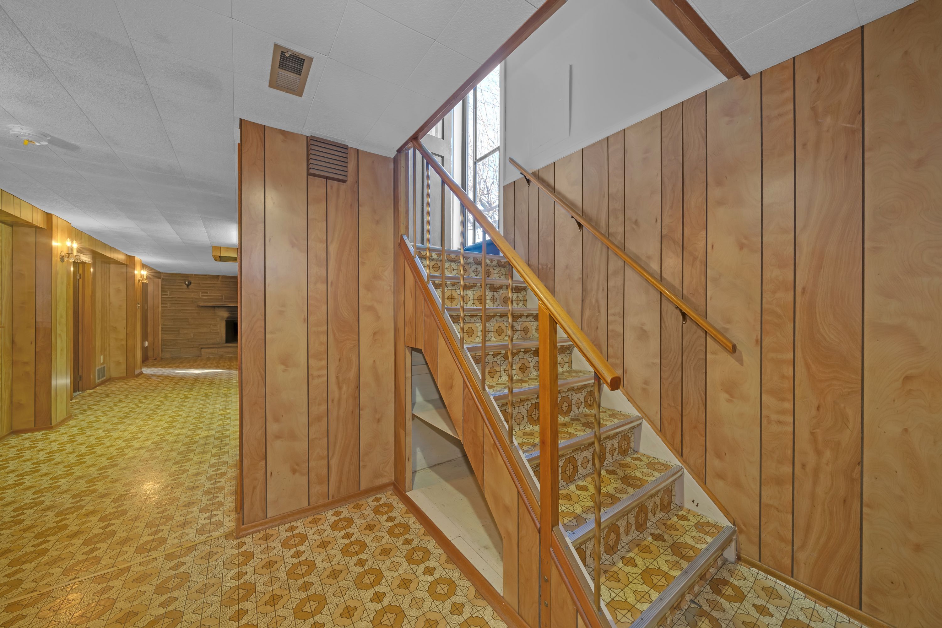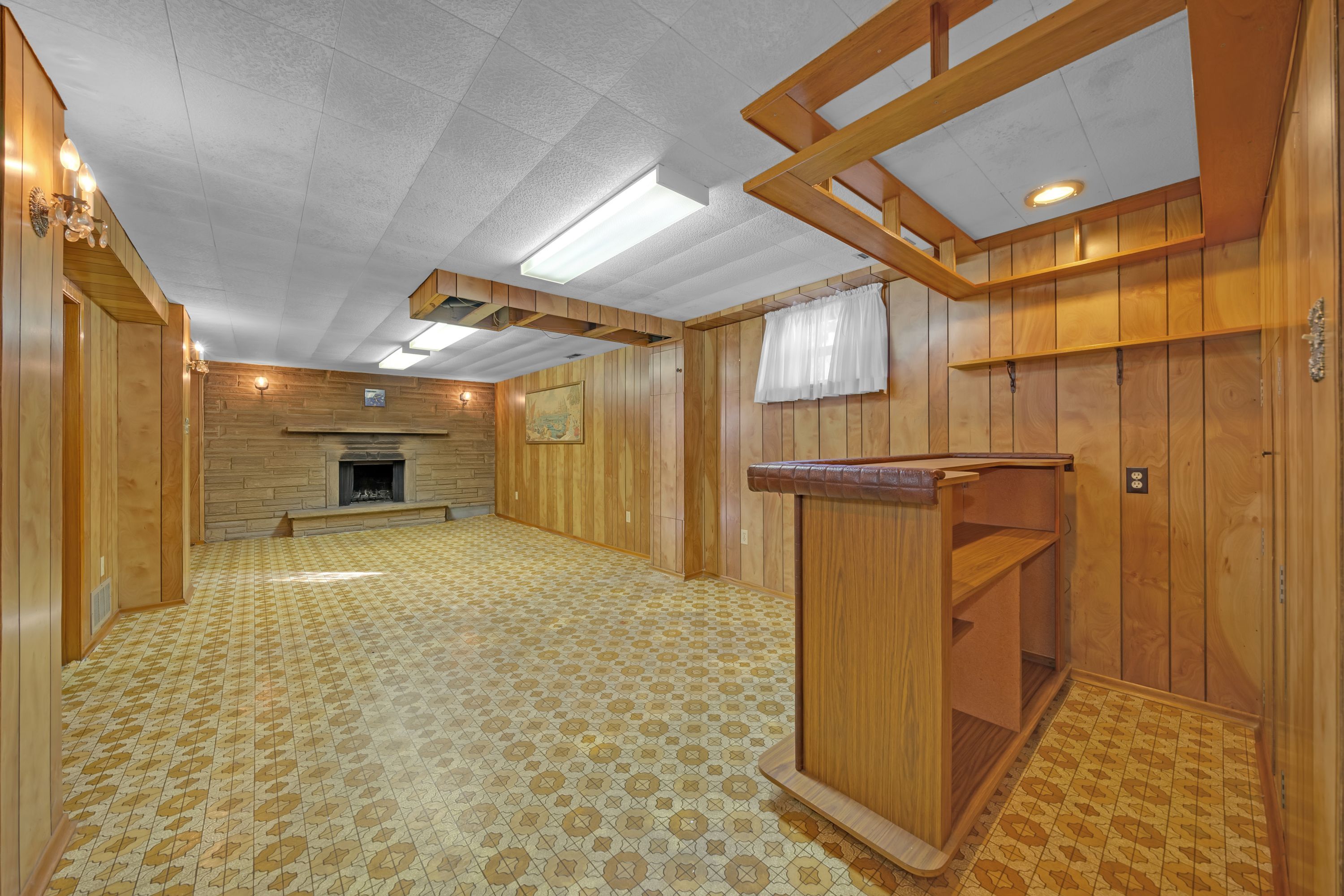 • Basement features large rec room with built-in bar for entertaining.