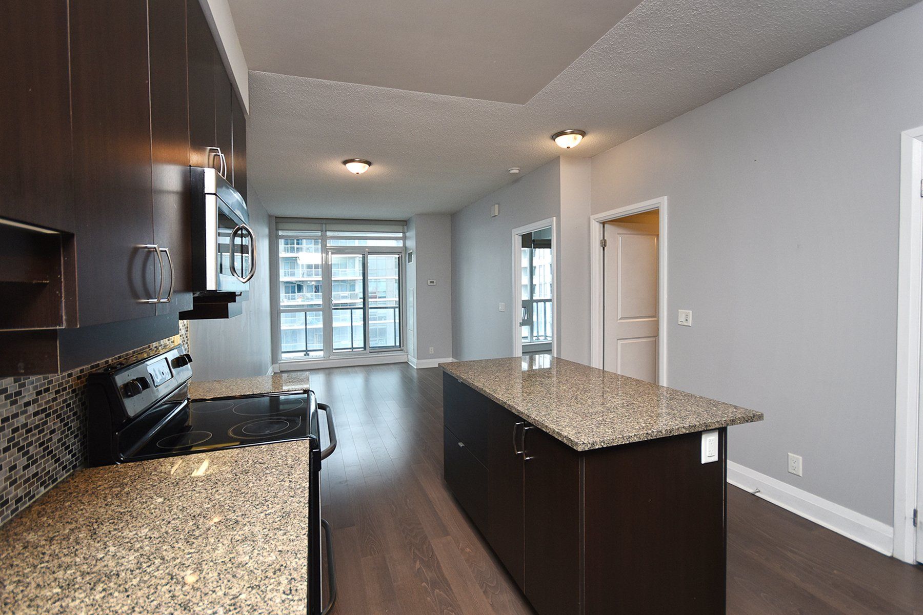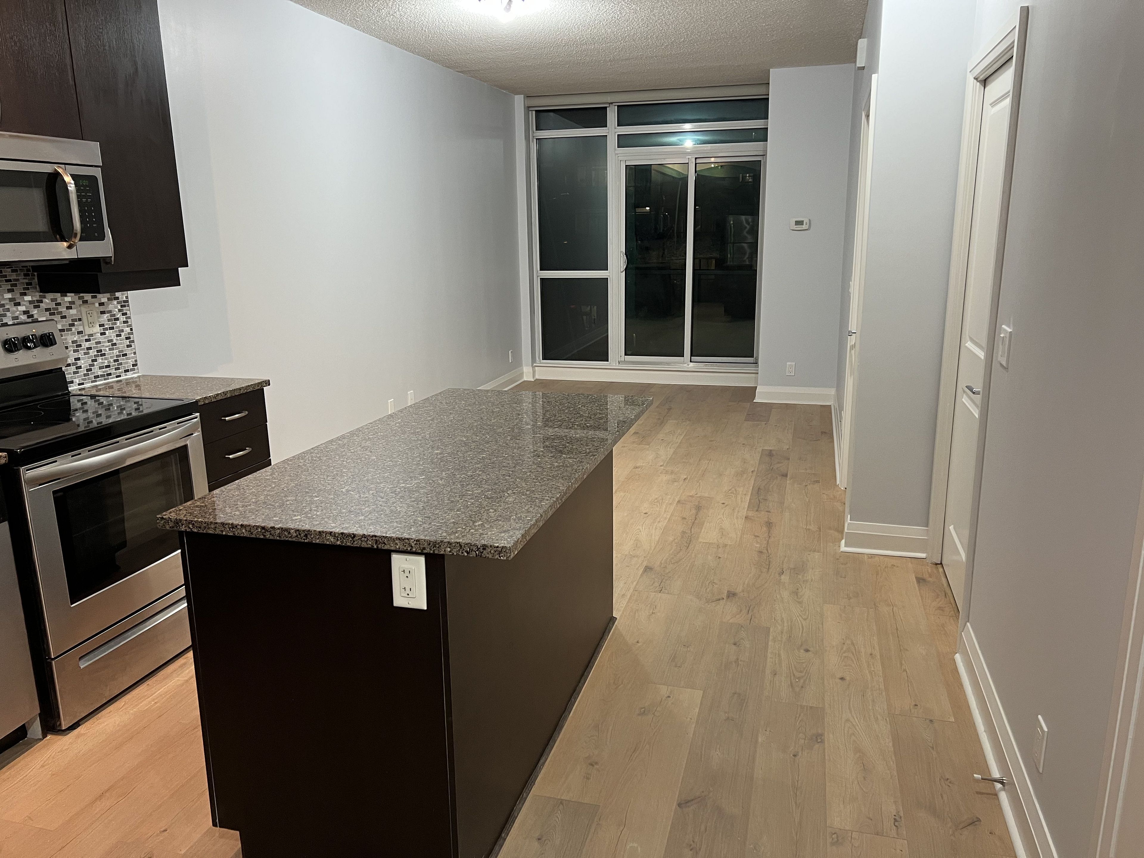 Welcome to unit 802 at 1185 the queens way-a stylish and beautifully fully renovated (new floor, fresh new paint) designed 1-bedroom, 1-bathroom condo offering comfort, convenience, and contemporary living in one of etobicoke's most connected locations. This sun-filled suite features an open-concept layout with floor-to-ceiling windows that bring in abundant natural light. The modern kitchen is equipped with stainless steel appliances, quartz countertops, sleek cabinetry, and a convenient breakfast bar. The living area opens to a private balcony with open views-perfect for relaxing or entertaining. The spacious bedroom includes a large window and ample closet space, while the well-appointed 4-piece bathroom offers clean, modern finishes. Enjoy the convenience of in-suite laundry and a thoughtfully designed floor plan that maximizes every square foot. Situated steps from cineplex movies, d spot desserts, mandarin restaurant, transit, shopping, parks, and quick access to major highways, this unit offers an unbeatable blend of style and convenience.