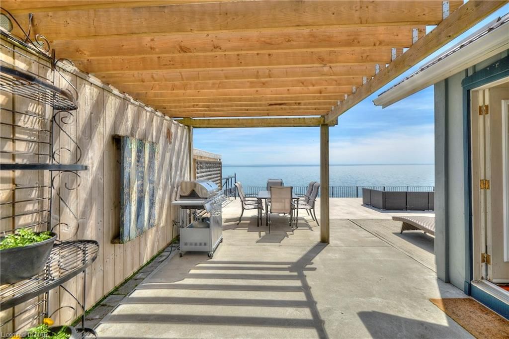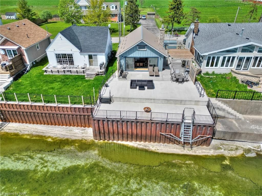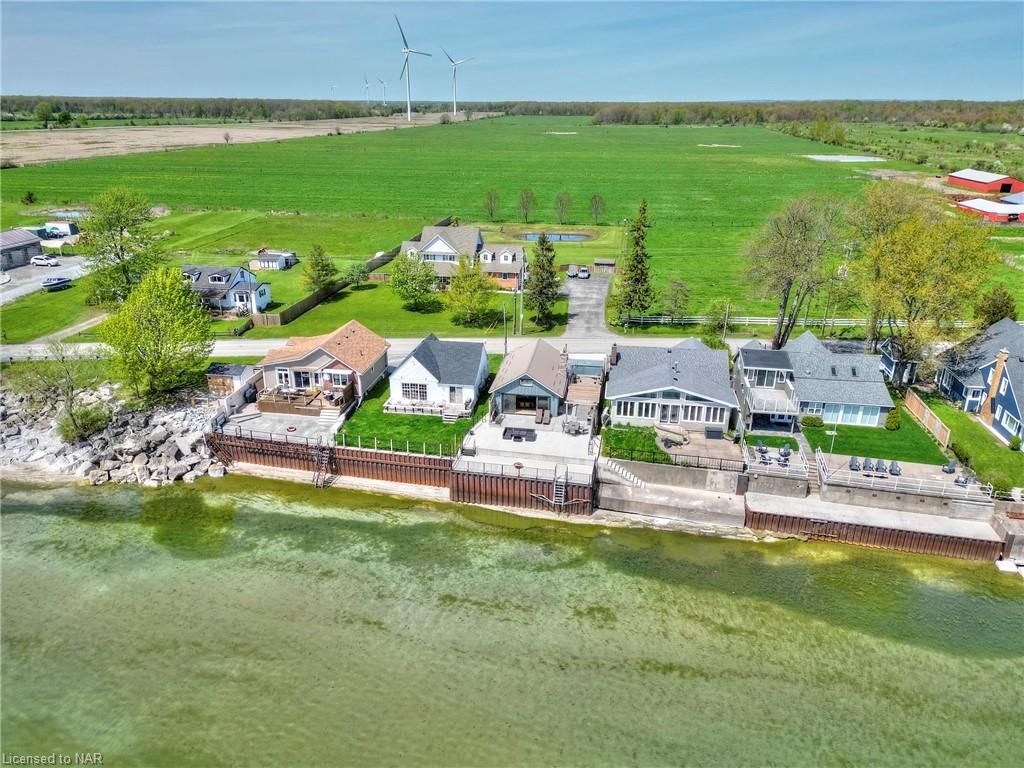Location location location. Centre of bay, elevated 15 feet off of a cliff, overlooking the shallowest and warmest of the great lakes, lake erie, this cottage cannot be compared to. Solid concrete back and front patio means no maintenance required and giant recreation area for guests, the outdoor living is so unique it can only be experienced. Whether you want to feel the cool breeze off the lake in the hot summer or enjoy a night under stars with a bon fire, anything is possible in this fully winterized cottage. Swim in the lake and experience the true cottage life with direct water access. Invite family and friends over for barbecues, beach days, get a tan near the beautiful pergola, or float on water tubes, the possibilities are endless! Large break wall prevents erosion to the property and there are two levels of concrete with a metal railing and stairs for safety. Natural gas fireplace and heat pump provides low-cost heat and natural well water means no water and sewer charges. The interior of the cottage is the perfect size with giant sliding doors for those lazy summer days, bathroom with a glass shower, large dining area, 2 bedrooms, and a beautiful kitchen. Located 2 minutes from long beach, and 10 minutes from grocery stores, gas stations, fast food restaurants, convenience stores, golf, sky diving, schools, and churches. The cottage is move-in ready with all appliances included, new metal roof (2021), new paved driveway (2022) and 240v amp-plug for ev-charging in the garage this picture-perfect view is remarkable, don't miss your chance to see it!